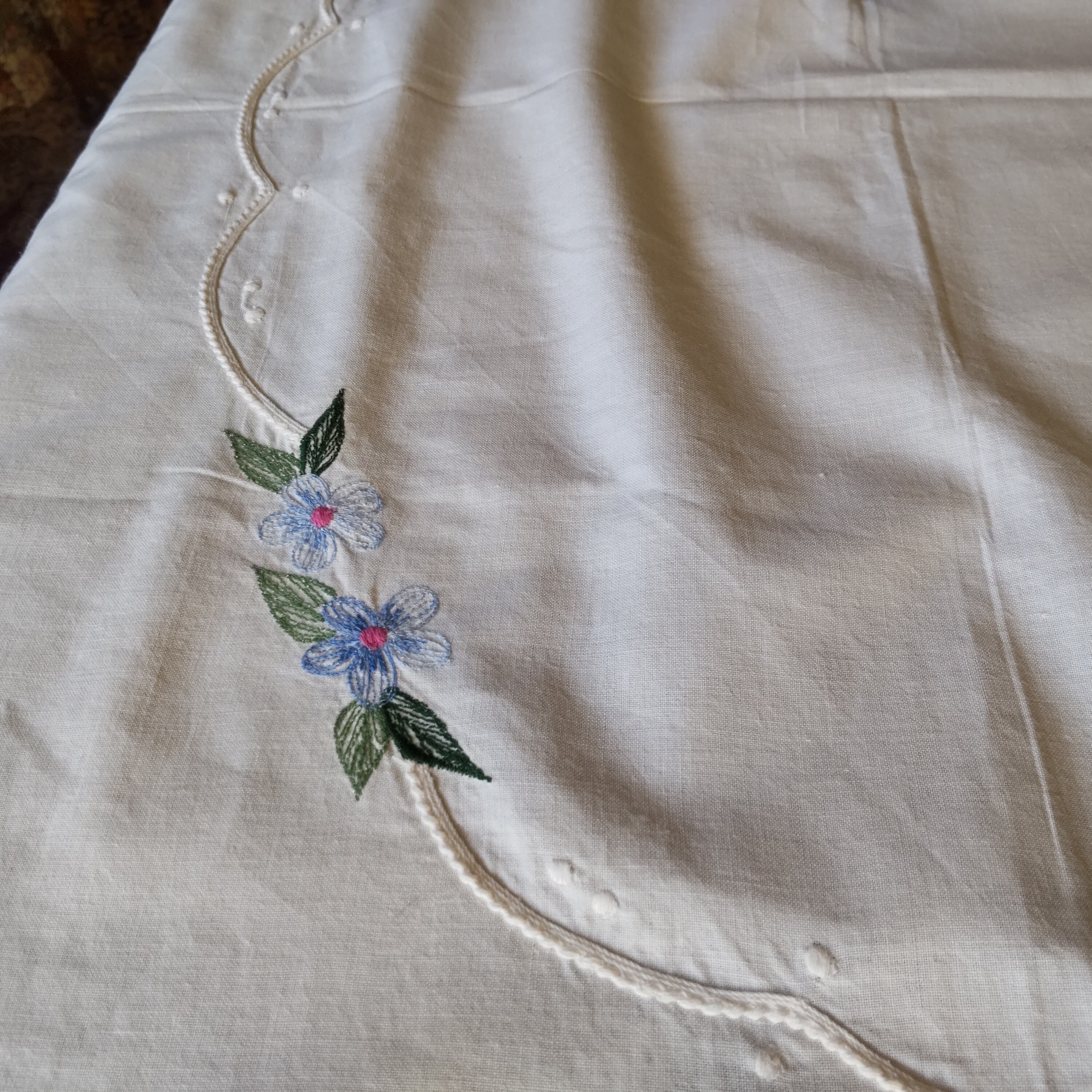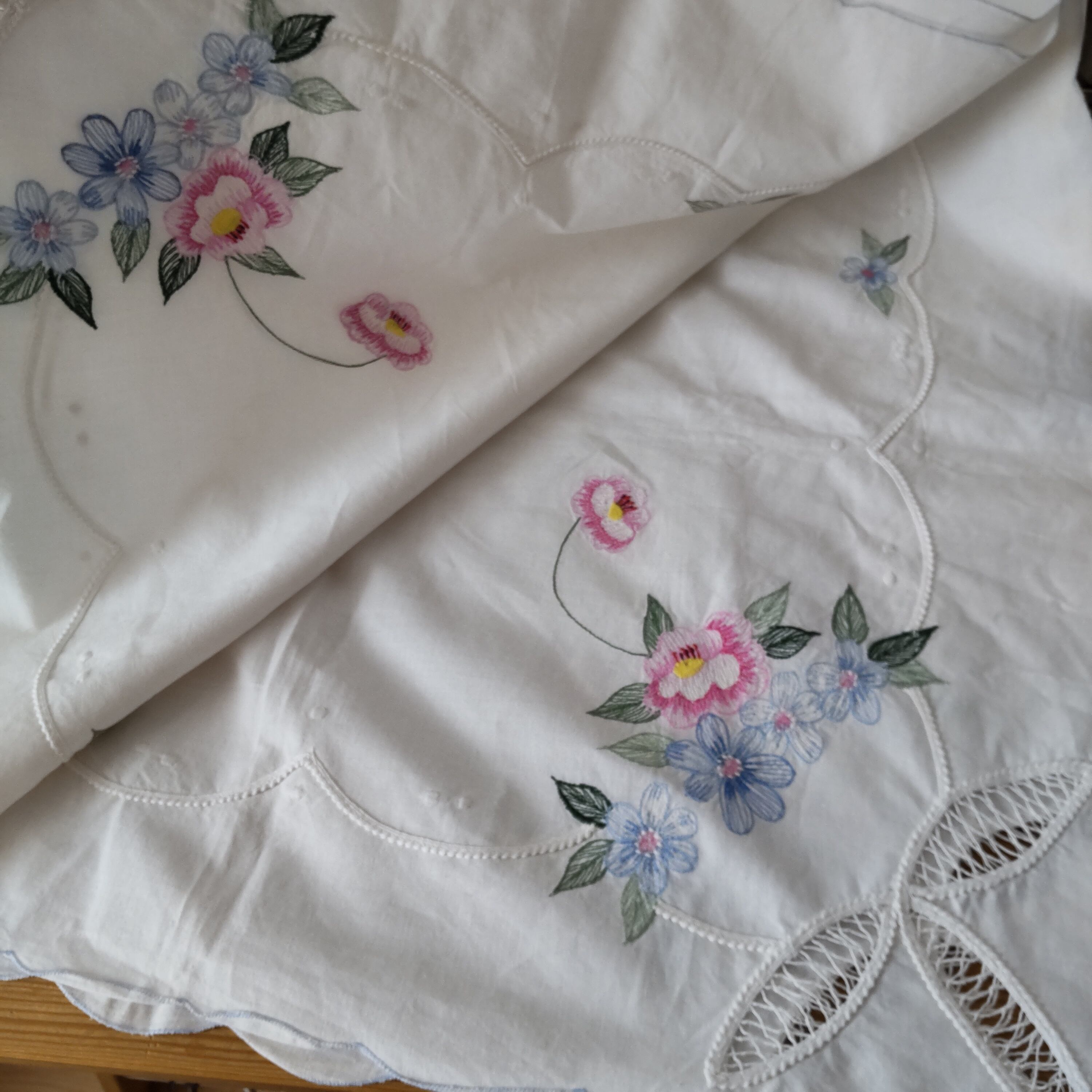 水色、ピンク、黄色、緑のどれも落ち着いた感じの色合いのヴィンテージクロスになります
