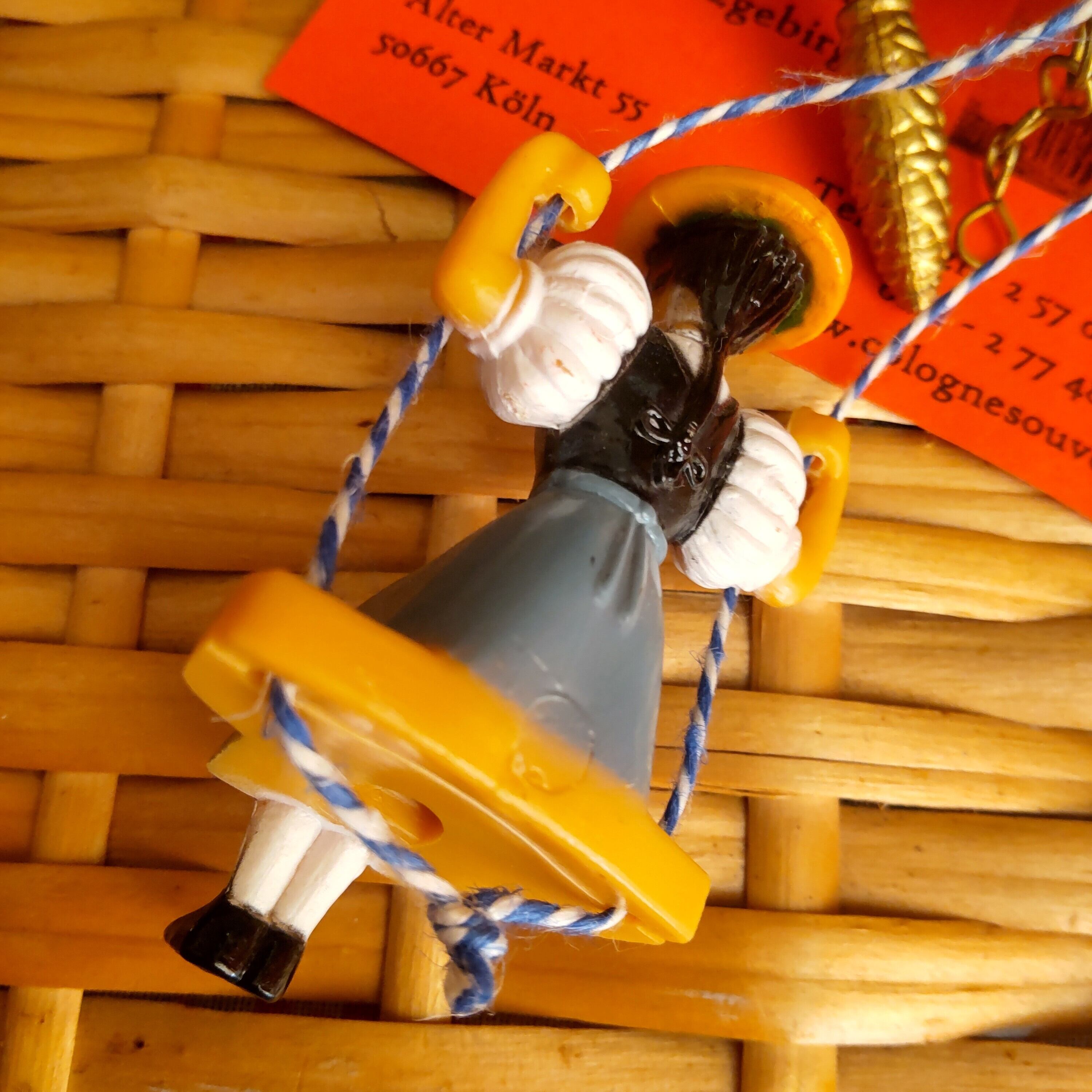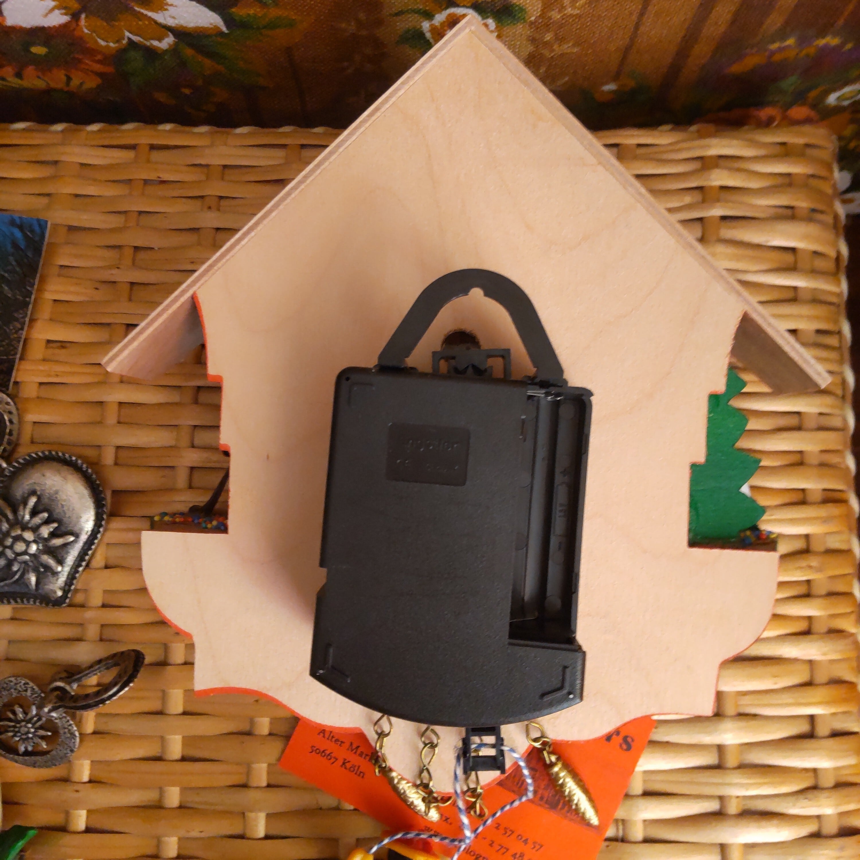 ドイツ製のミニ壁掛け時計で、ブランコに乗ったお人形がからくり時計風にスィングして時を刻みます