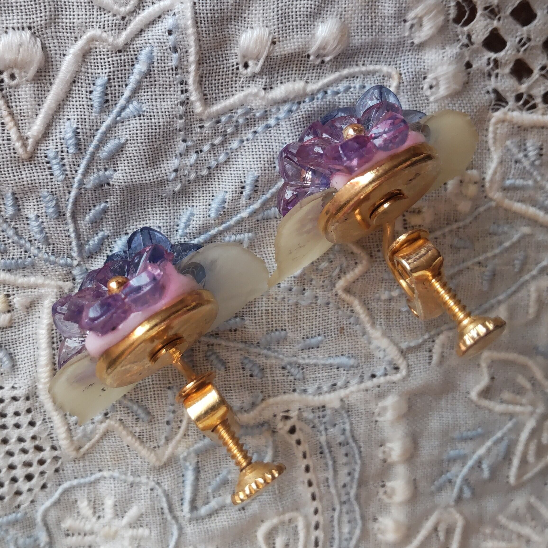 紫陽花みたいなとてもかわいいドイツ製のヴィンテージイヤリングです