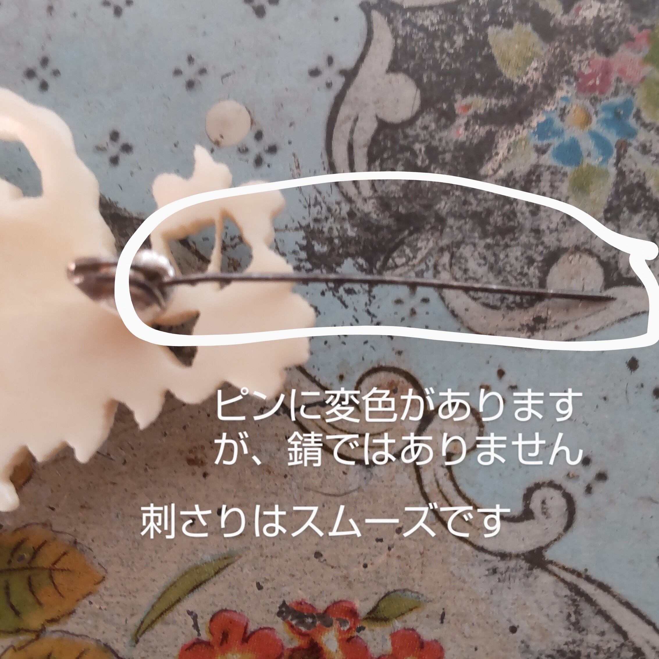 ・ピンや留め金の一部に若干の変色はありますが、動作や刺さりはスムーズです(最後の画像2枚をご覧ください)