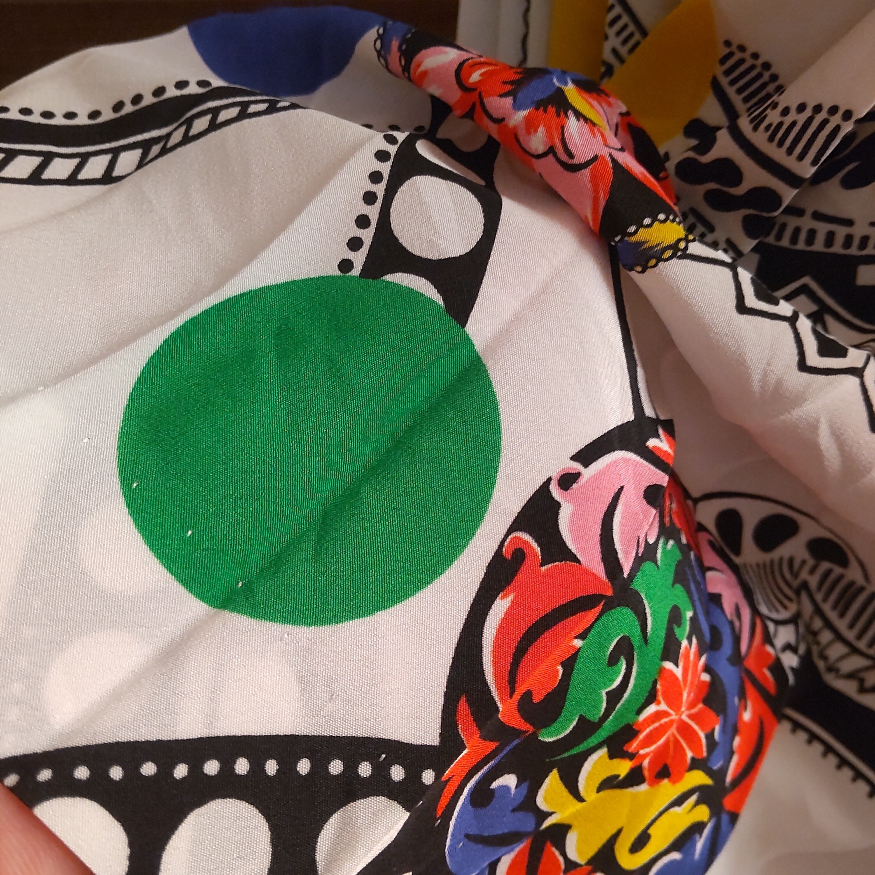 ・鮮やかな色合いです 白地にビビッドな青、緑、黄、黒、ピンク、赤