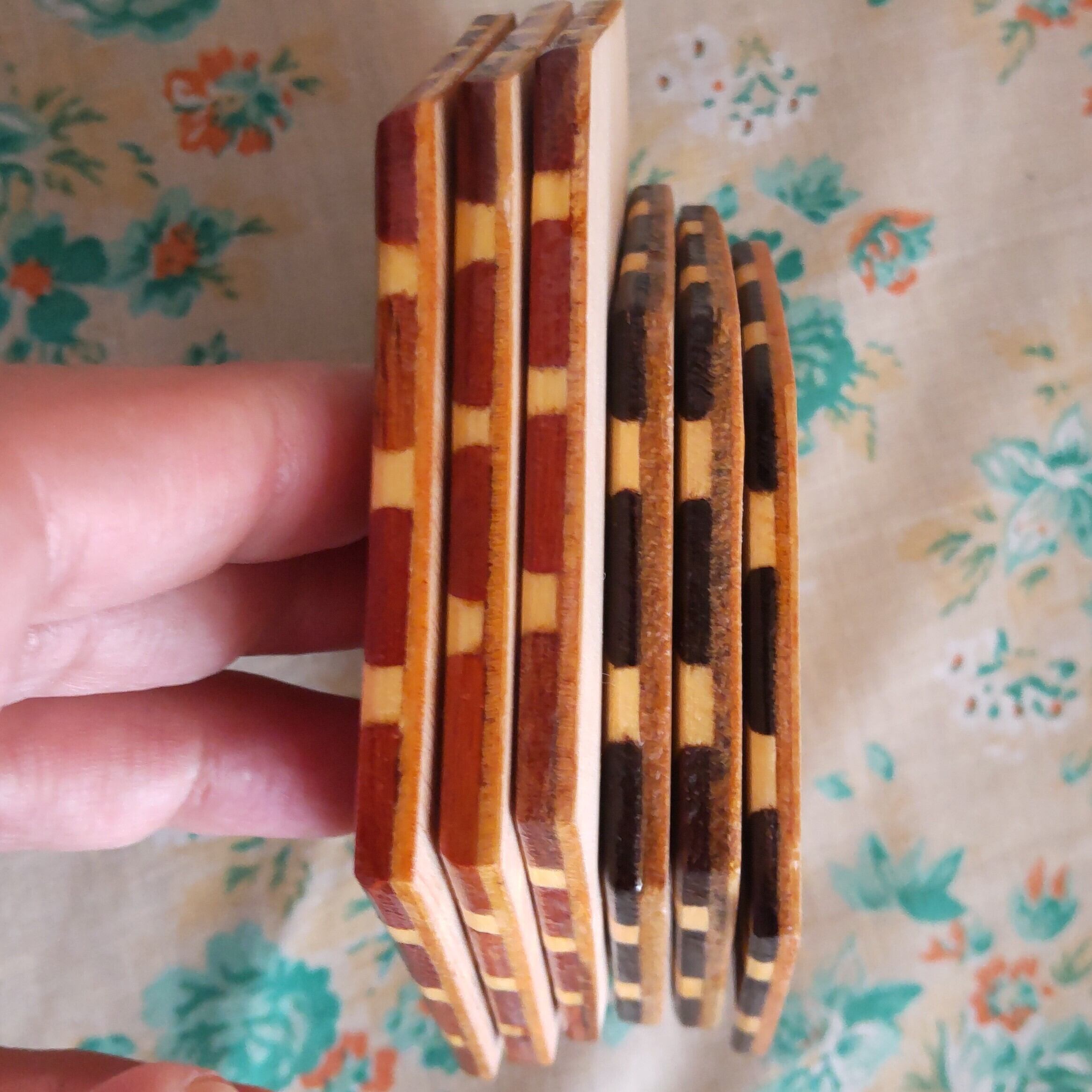 それぞれ特徴の違う木材や動物の角・骨、鉱石などを組み合わせて薄くスライスすることで繊細な模様が出来上がります