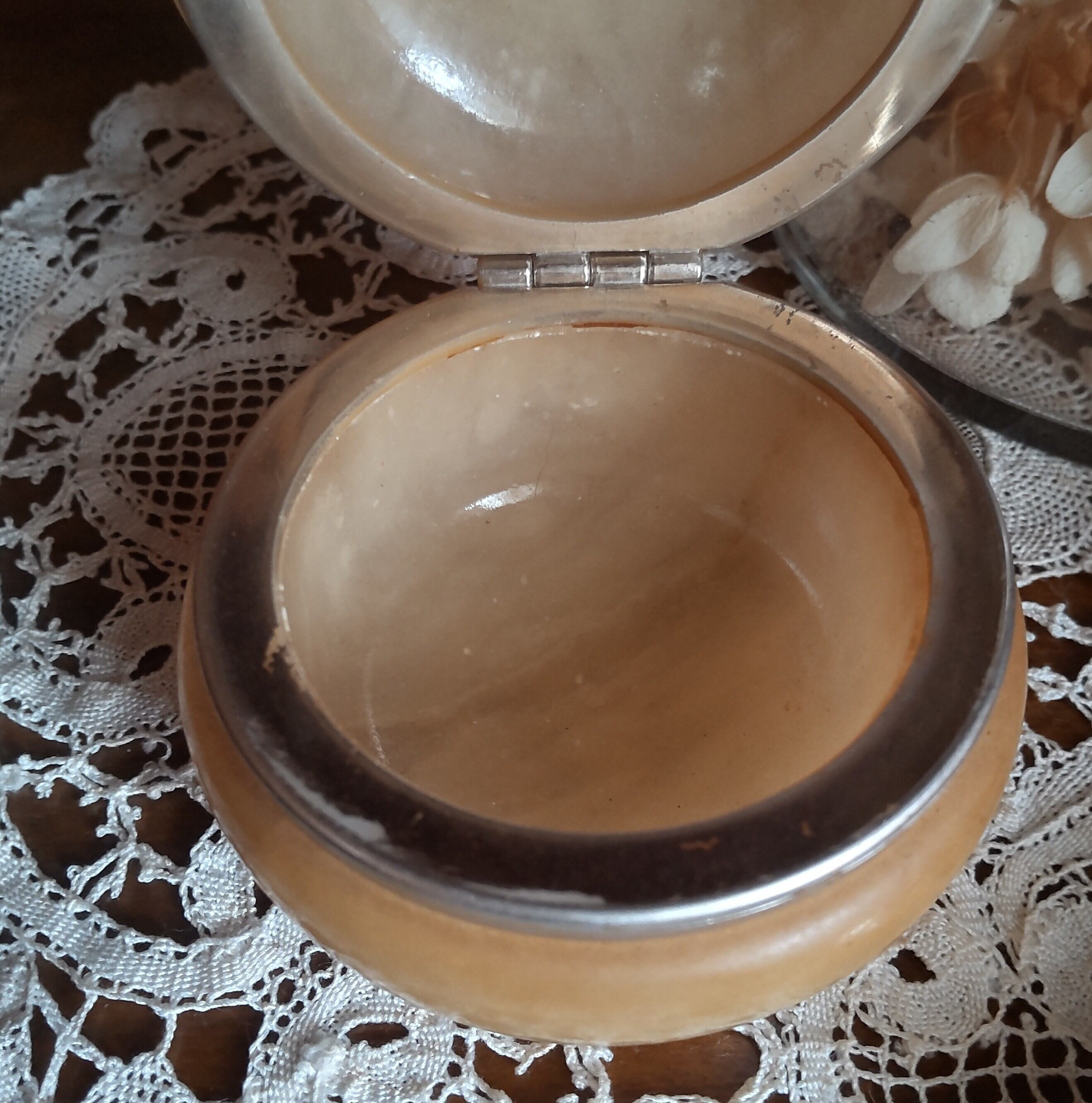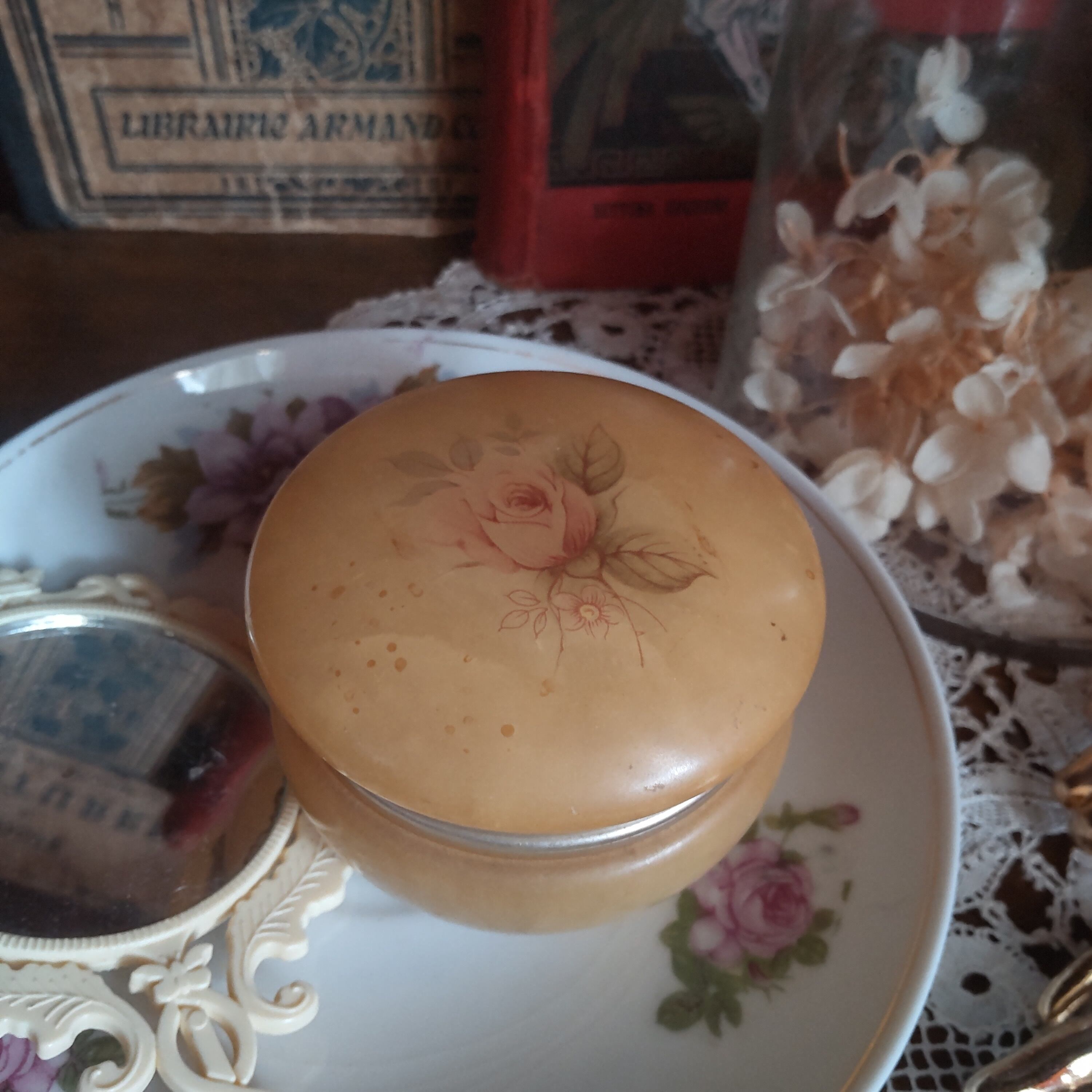 小薔薇のデザインがとても可愛らしいノスタルジックな雰囲気の天然石のヴィンテージケースです