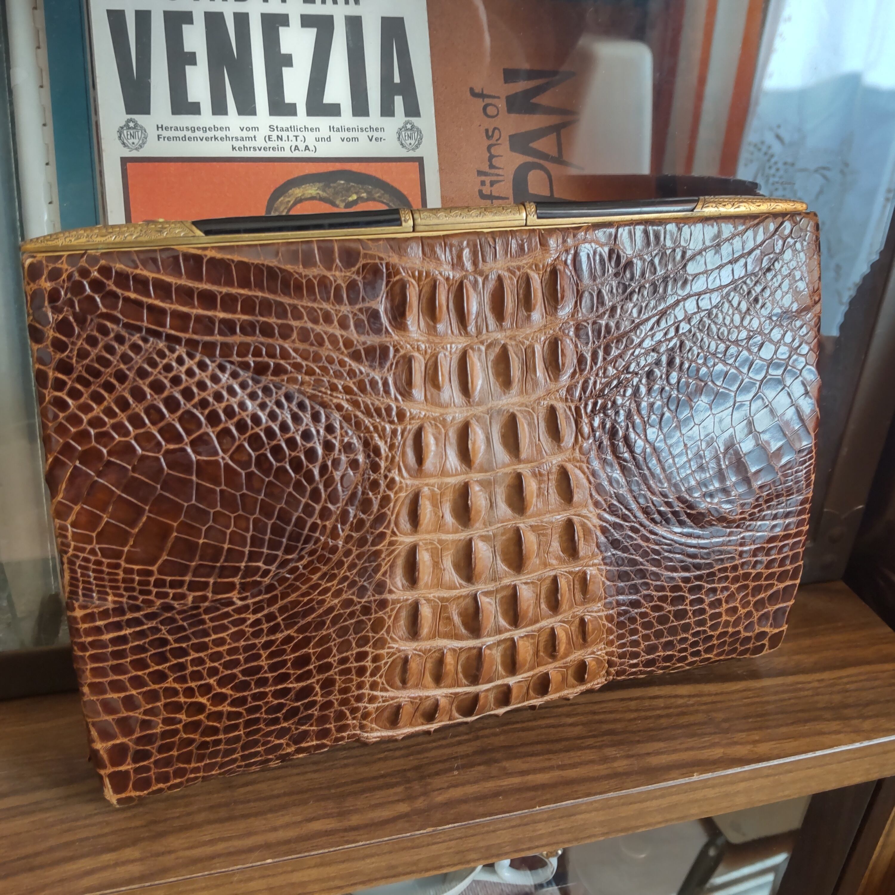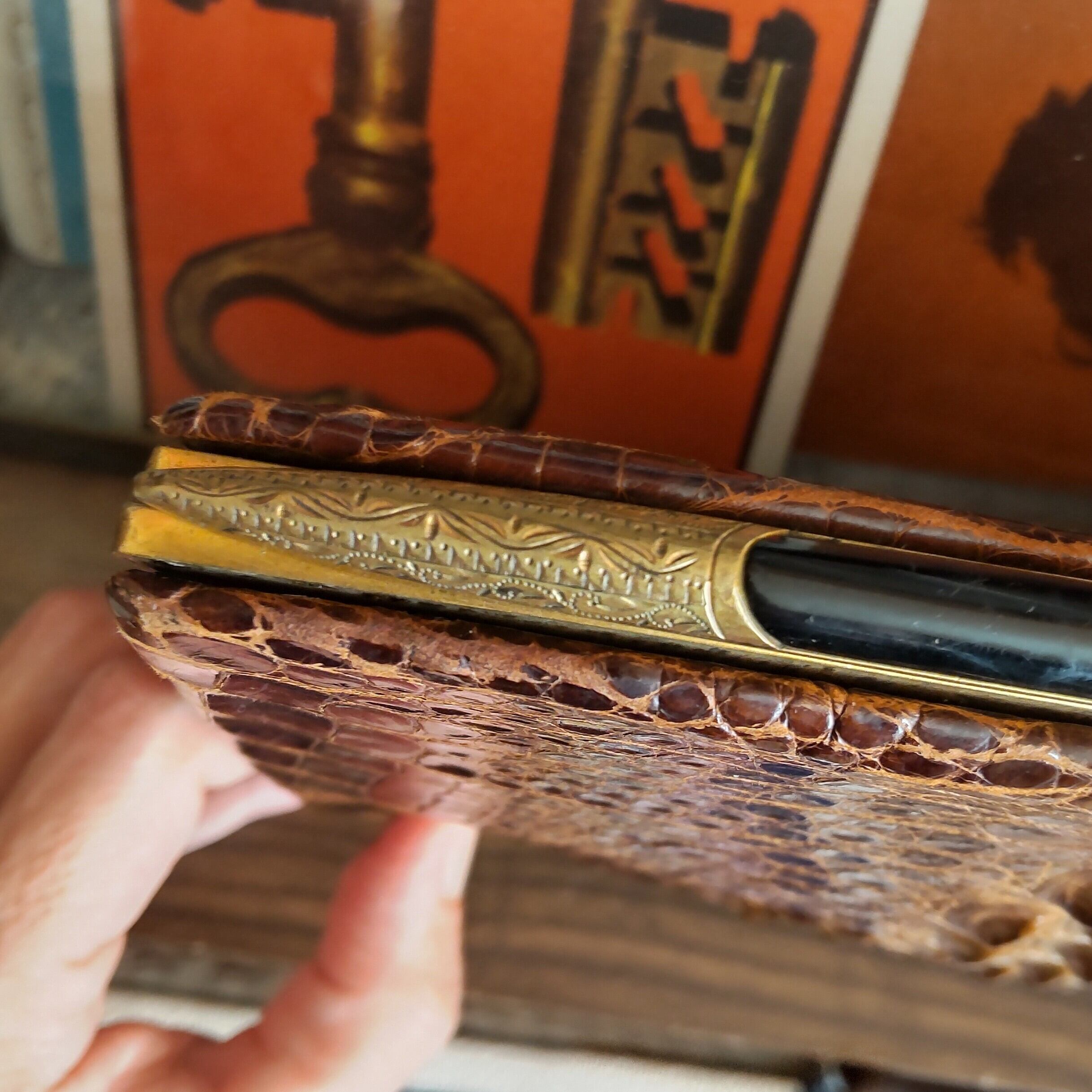 金具のデザインがとても素敵なワニ革のクラッチバッグです