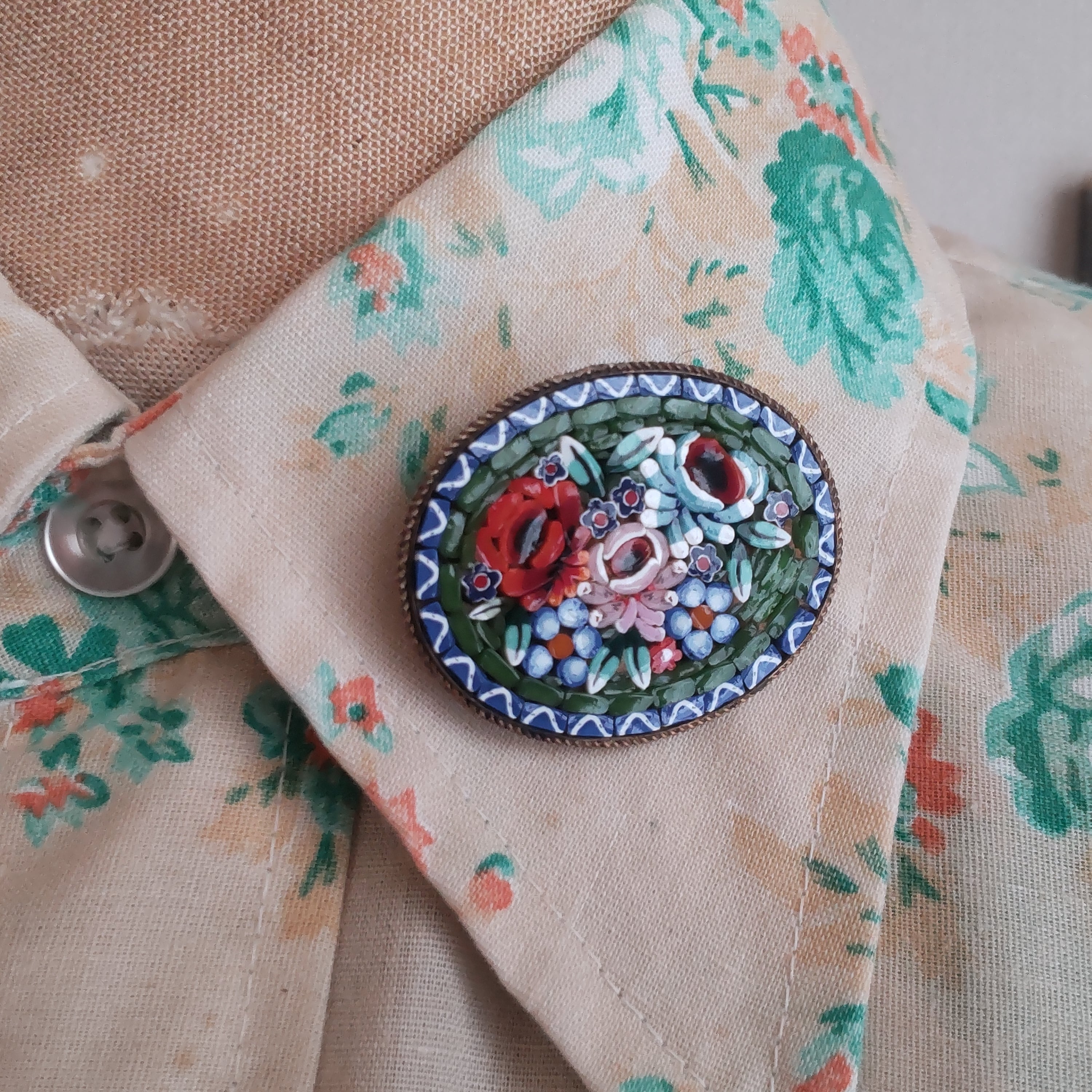 ベネチア硝子モザイクの繊細で美しくかわいいブローチです