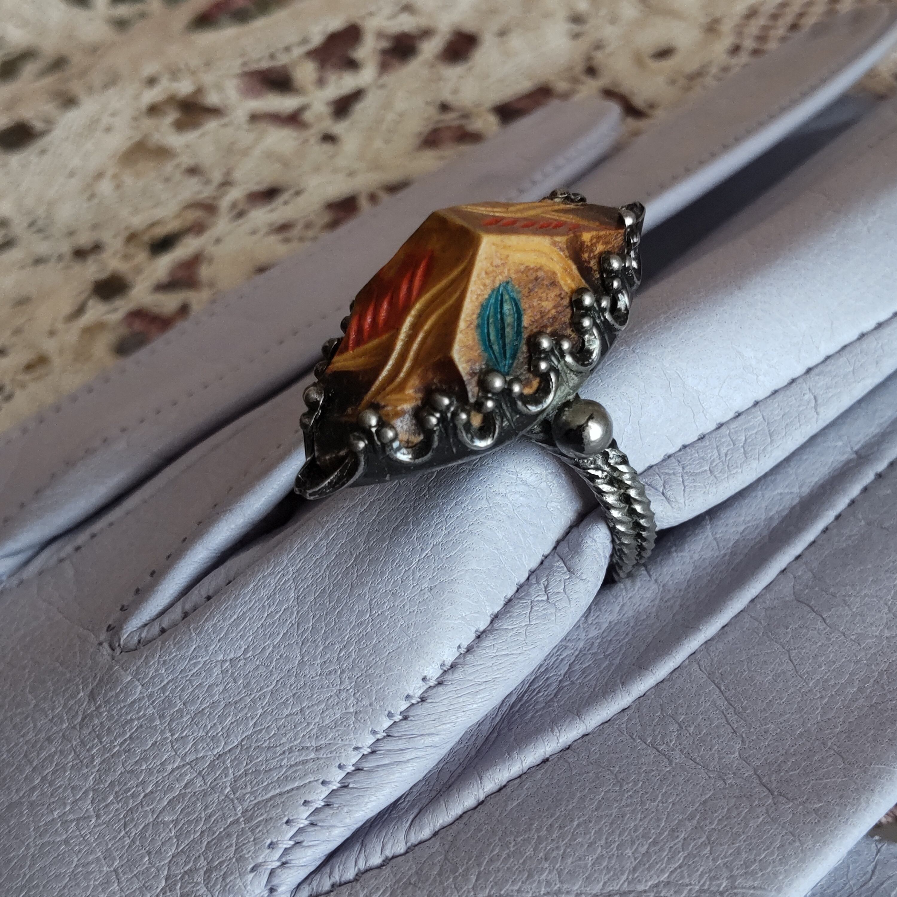 木彫りのユニークでとても可愛らしいヴィンテージリングです