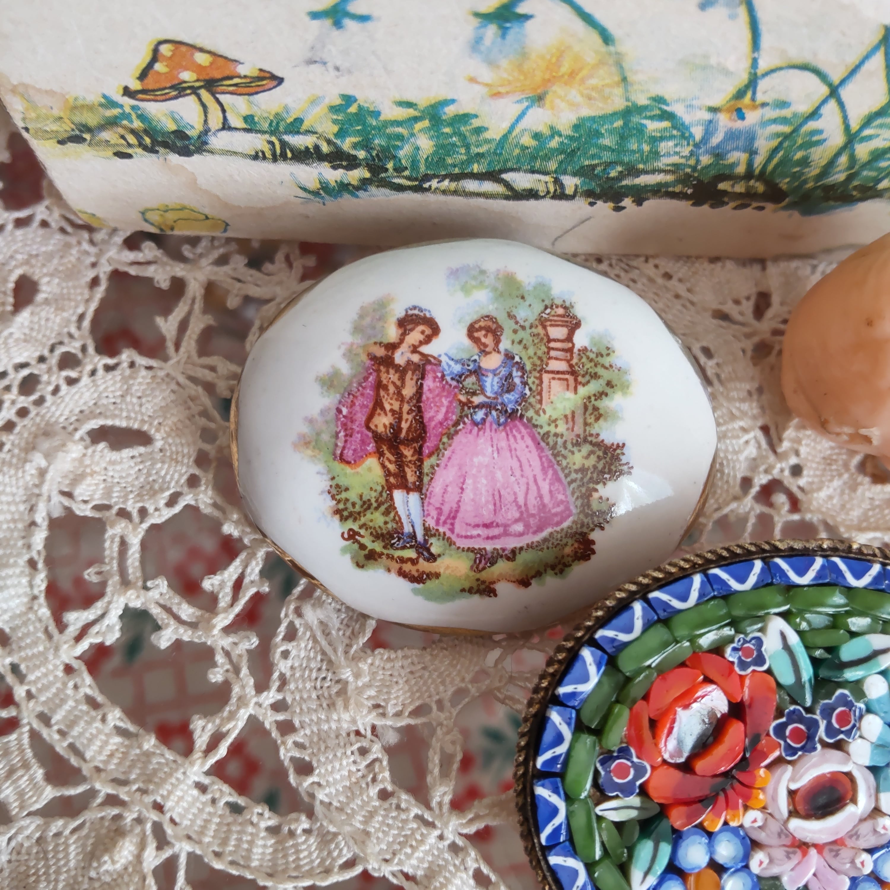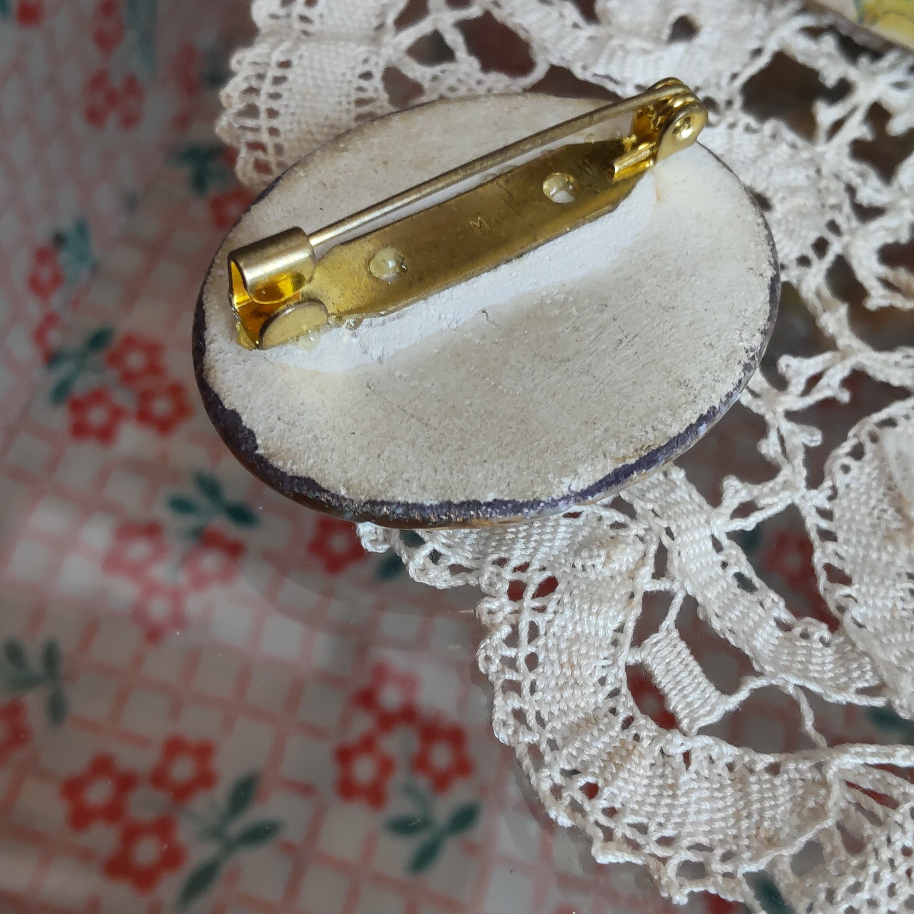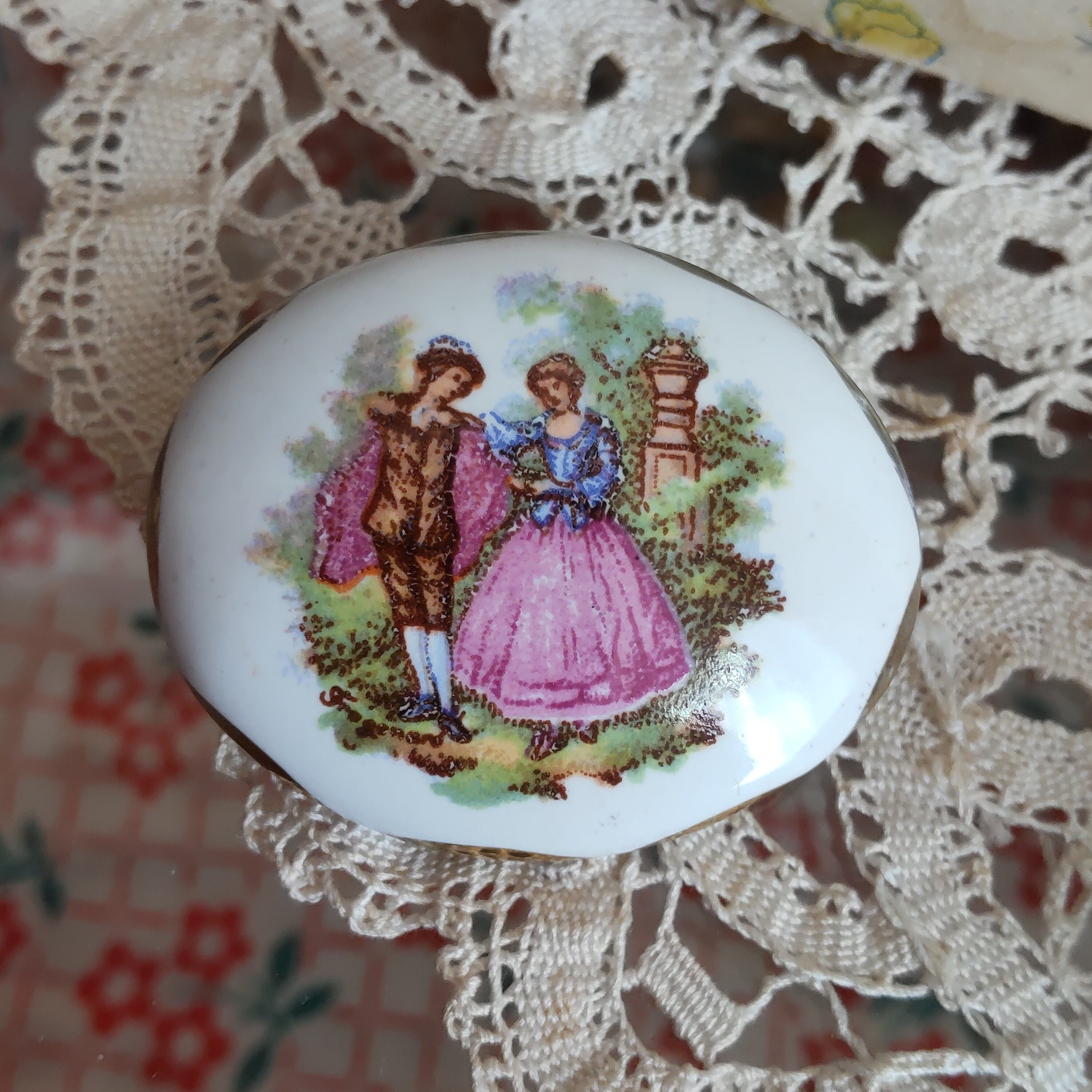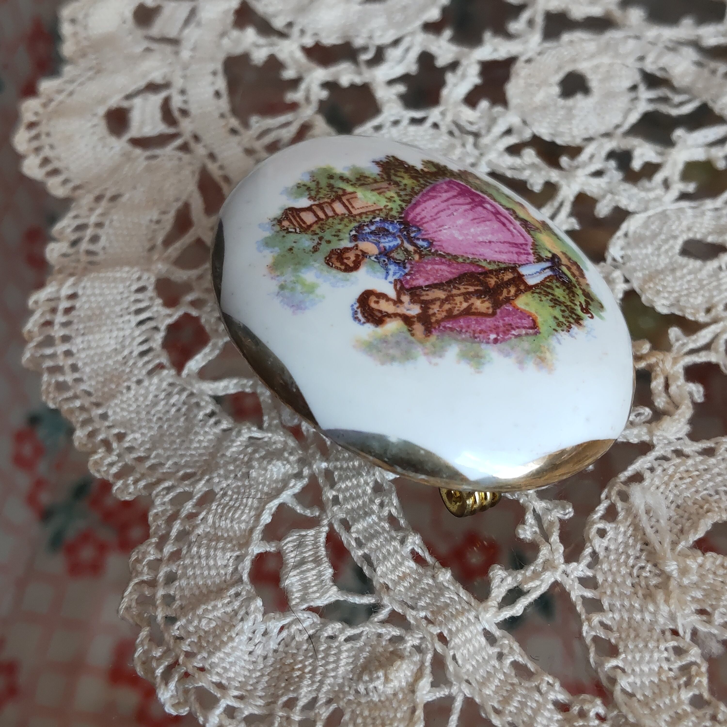 フランスの磁器製と思われる男女のヴィンテージブローチです