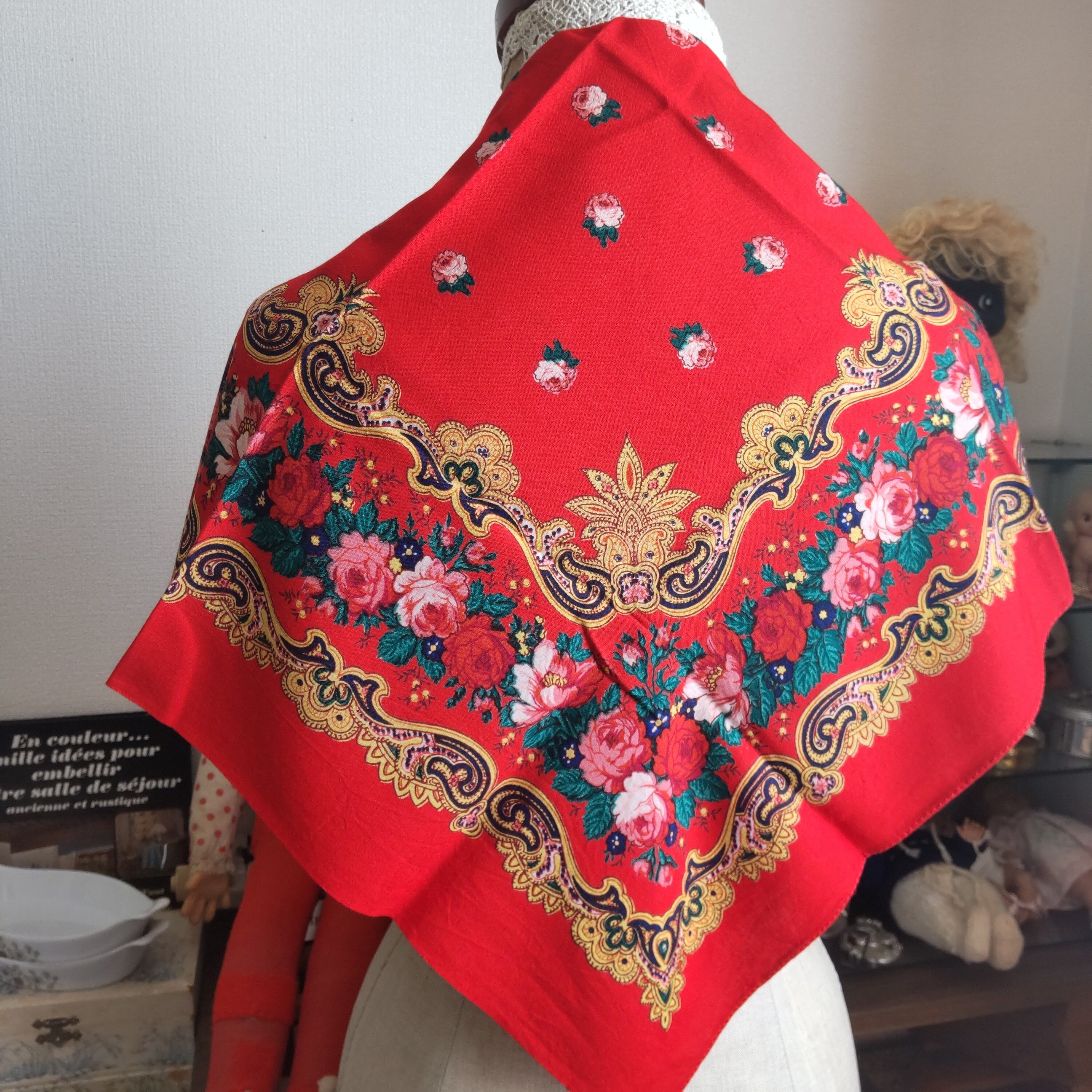 ポルトガル製の民族衣装の薔薇柄ヴィンテージスカーフです