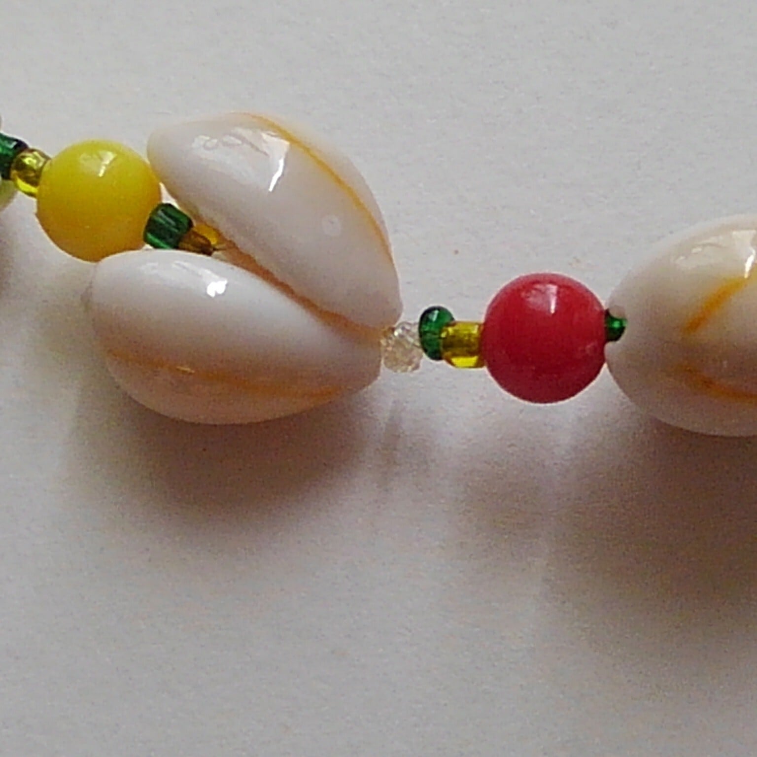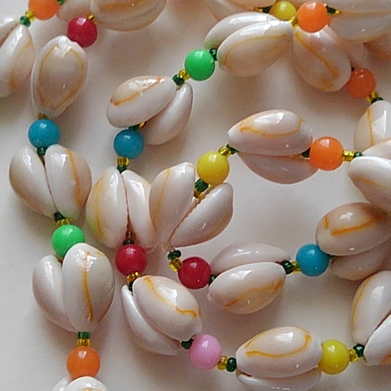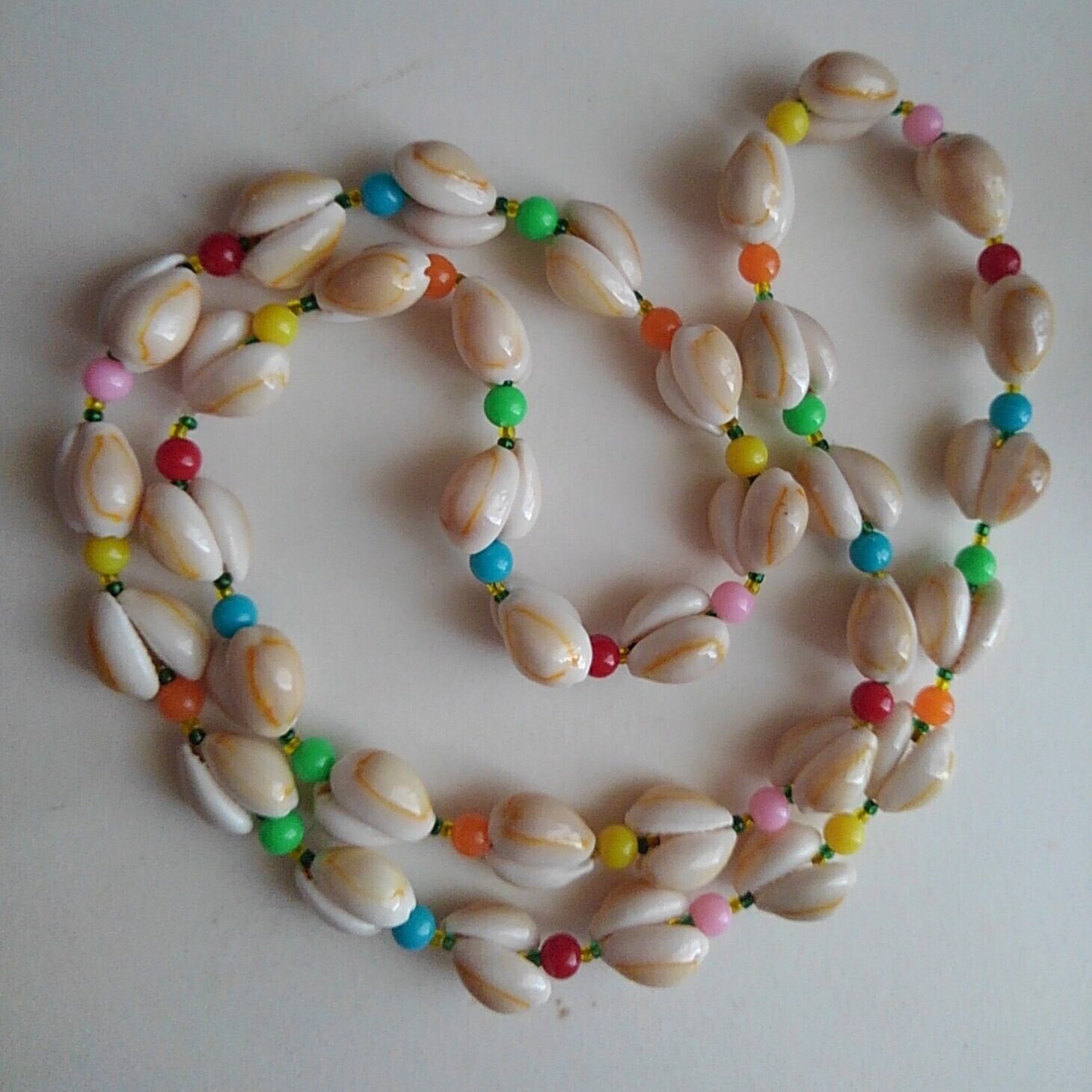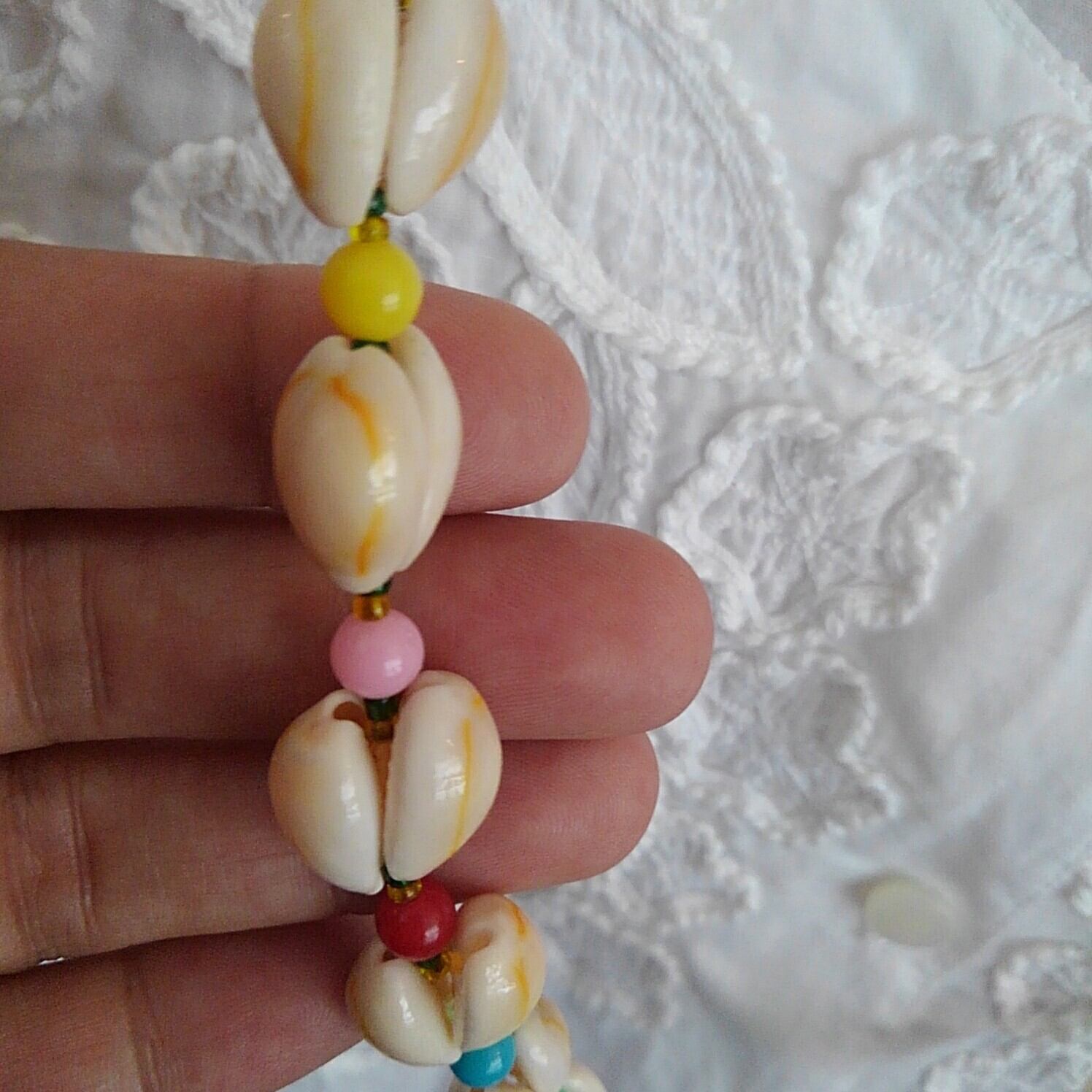 子供の頃からの大切な宝物のようなかわいいネックレスで、カラフルでお菓子のようなかわいいビーズと貝殻を上手に組み合わせています