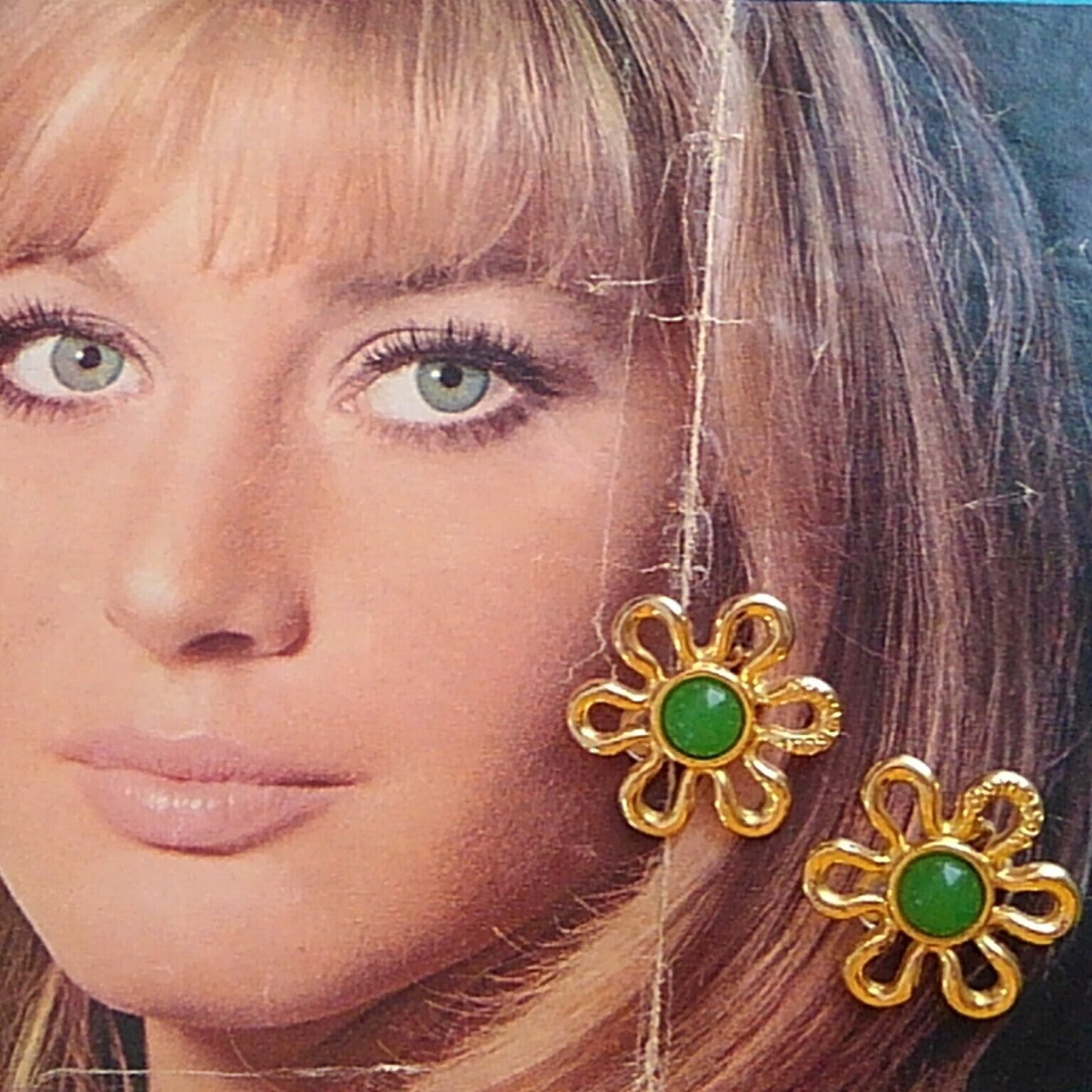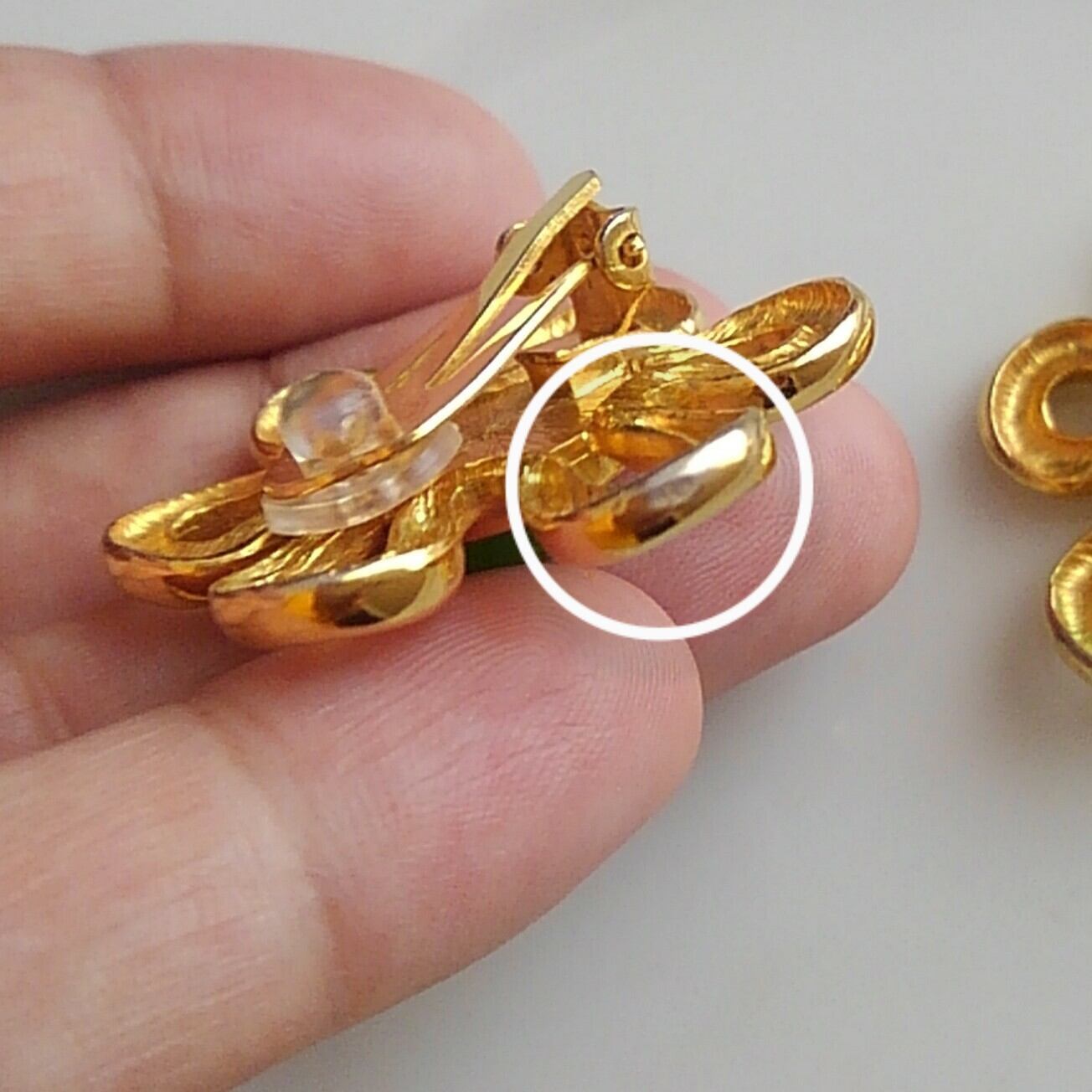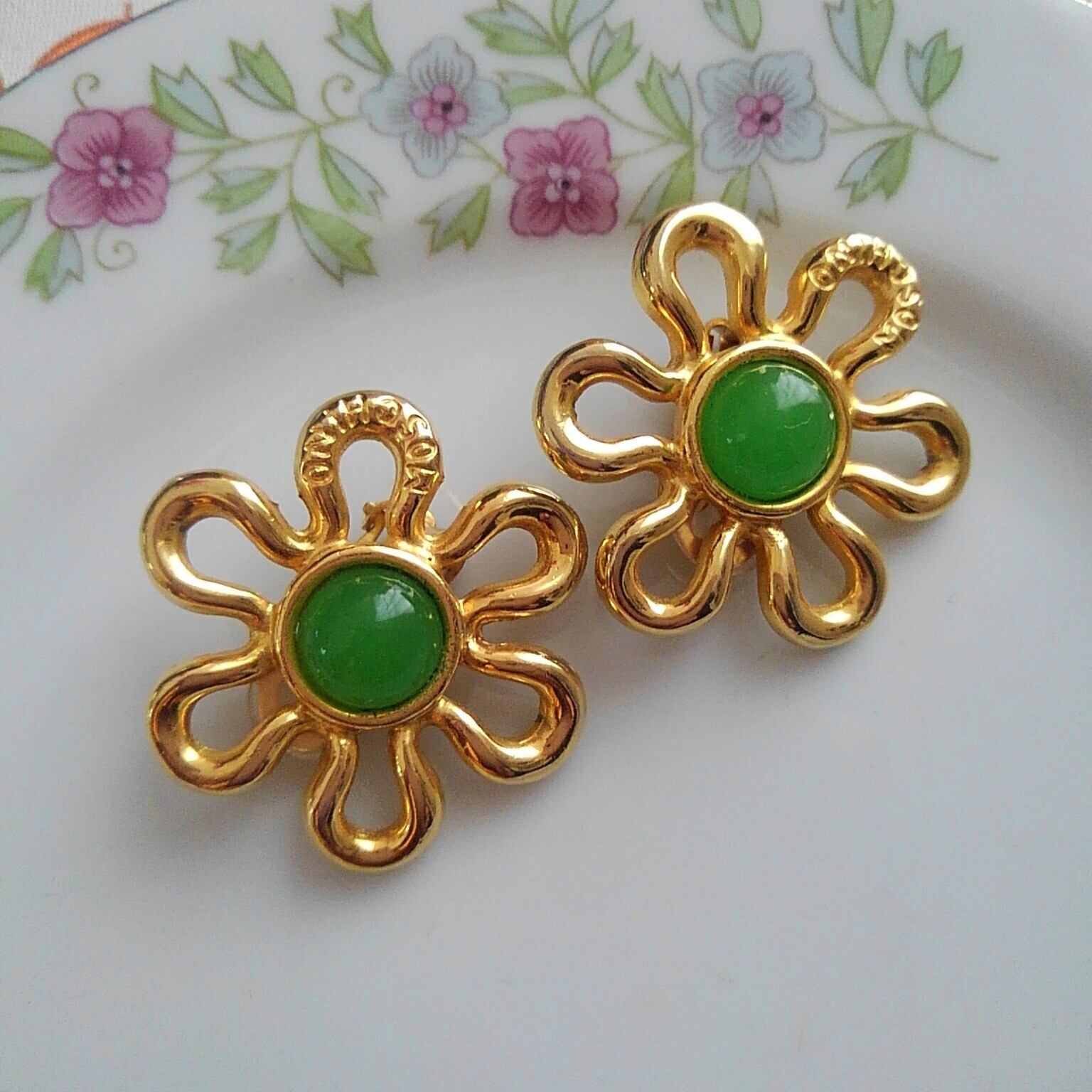 ゴールドカラーのお花にとてもかわいいグリーンの硝子がついています