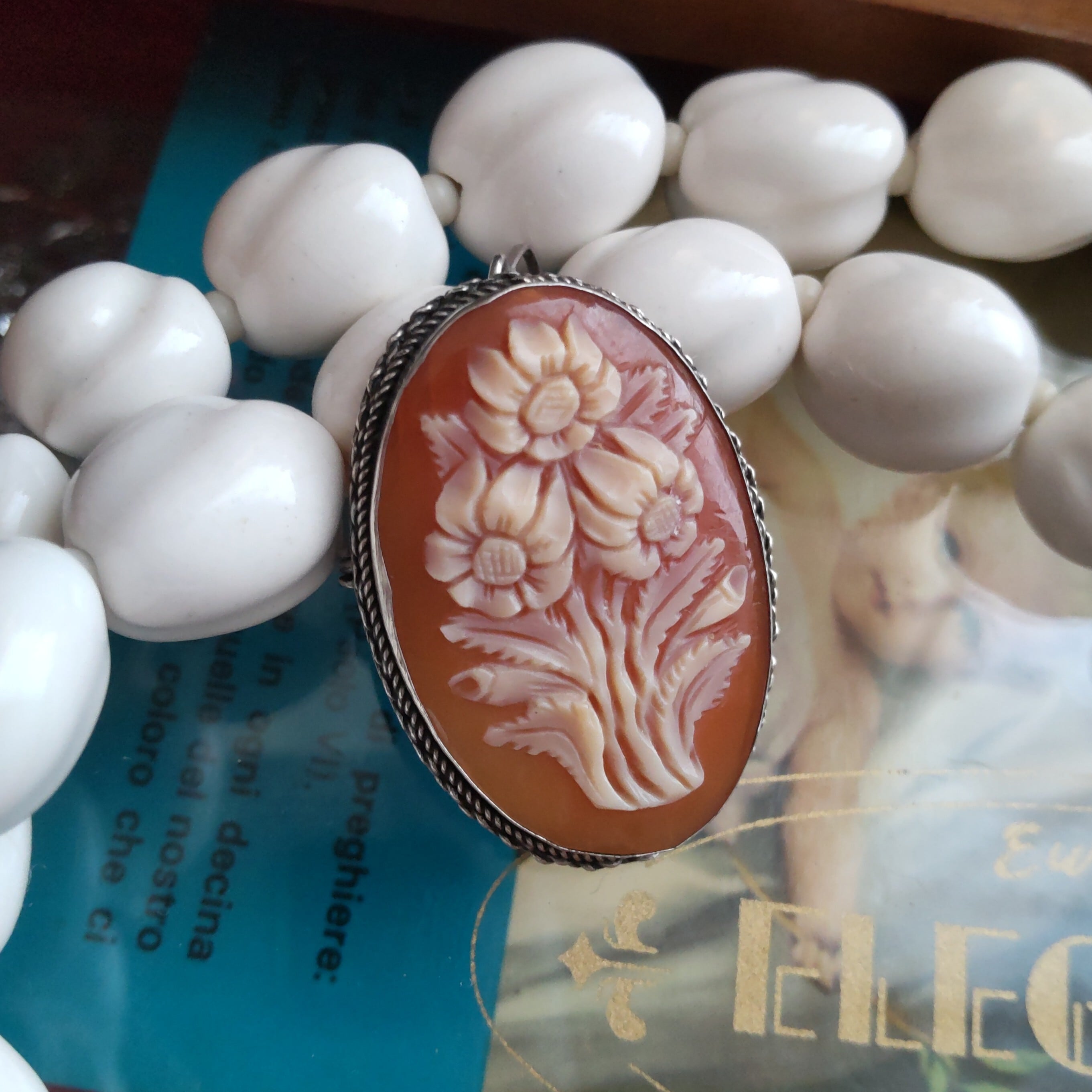 イタリア製 お花のシェルカメオブローチ