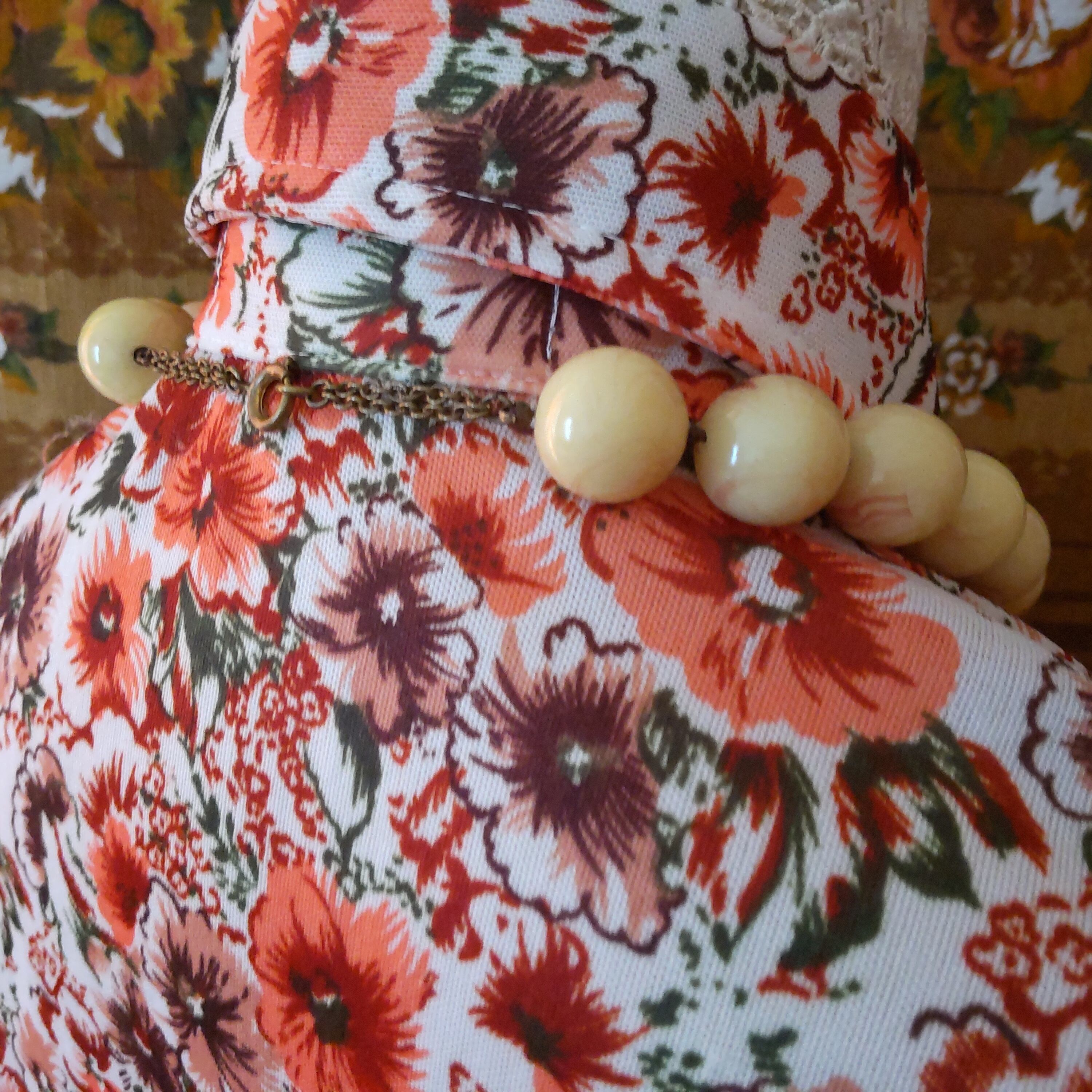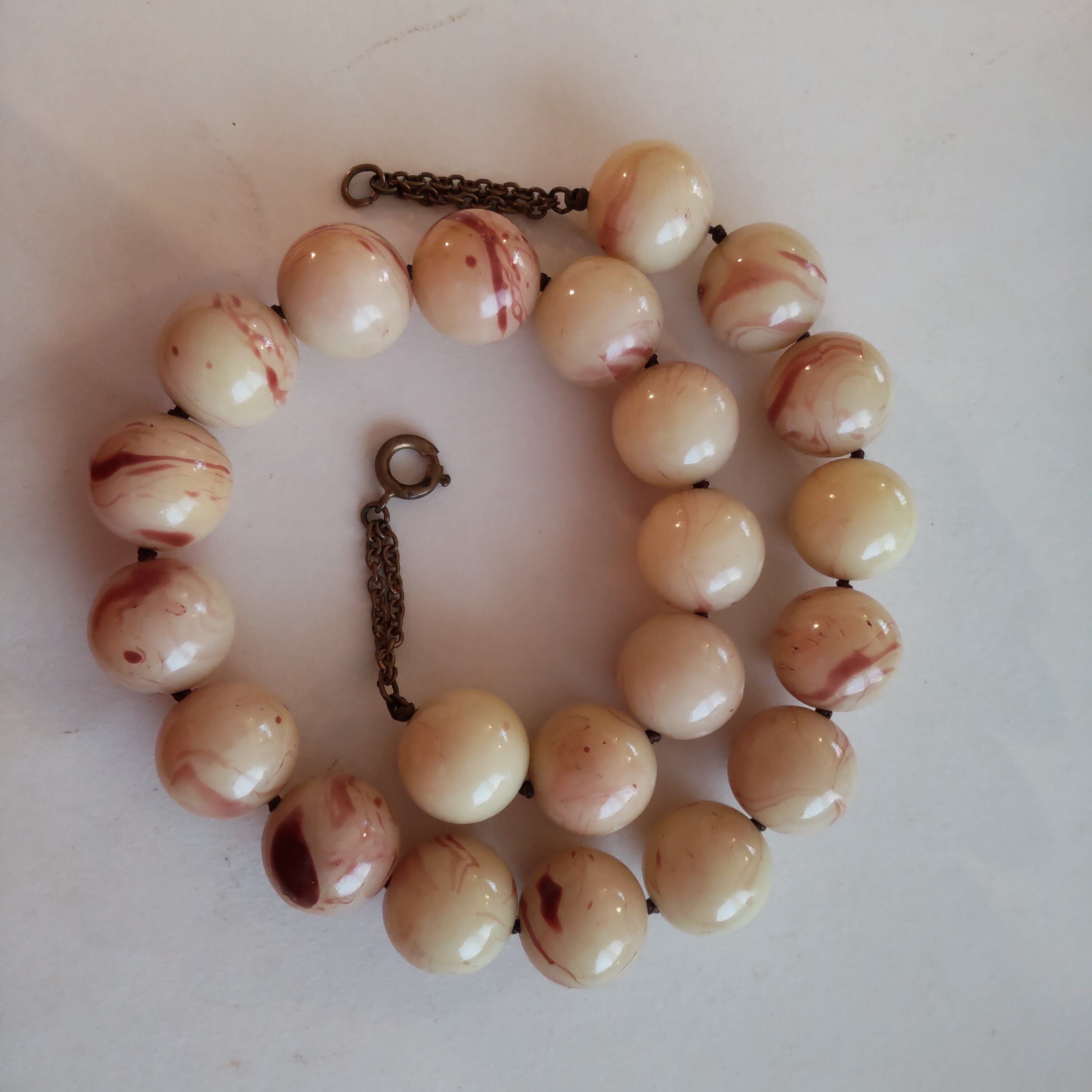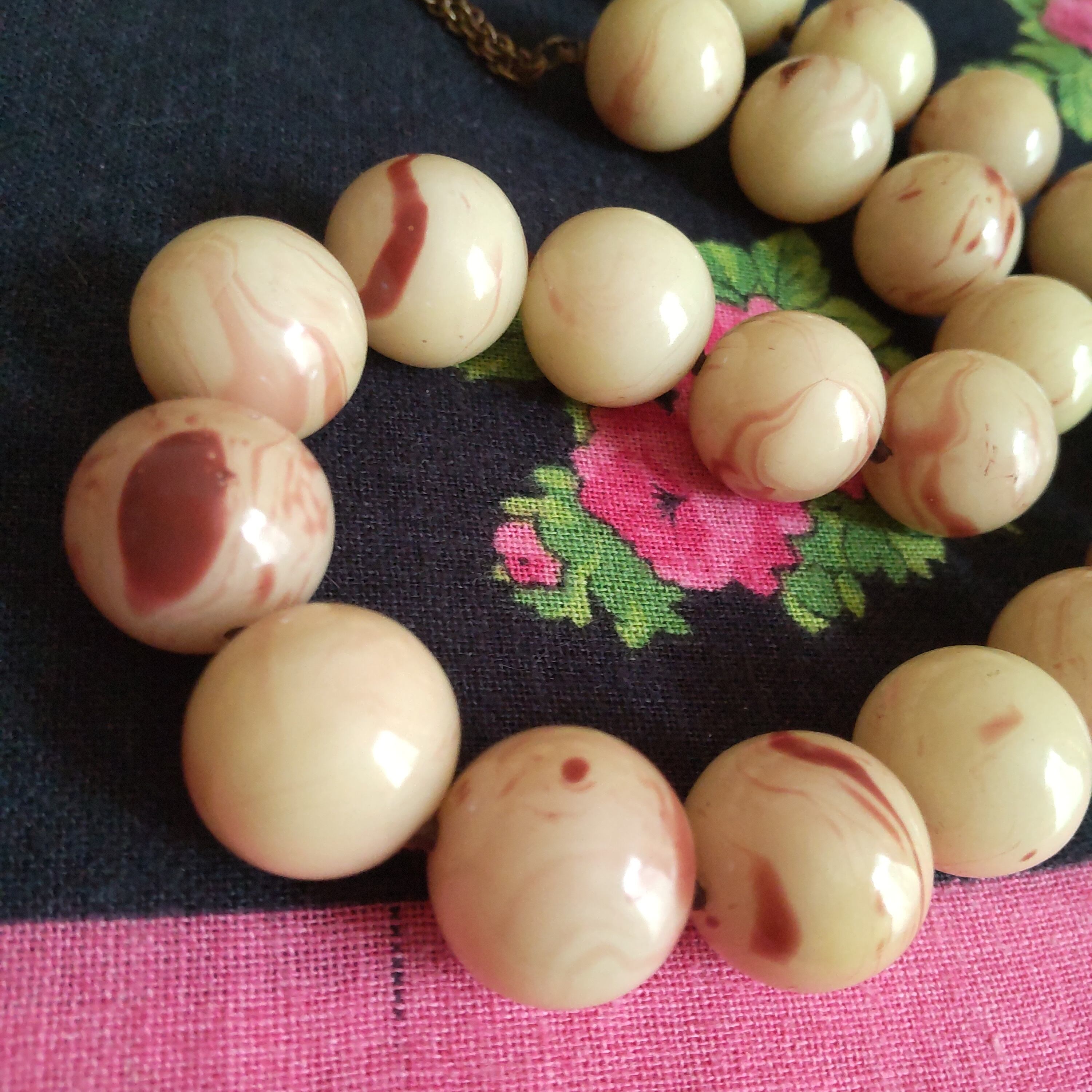マーブル模様の樹脂ビーズがかわいいヴィンテージネックレスです