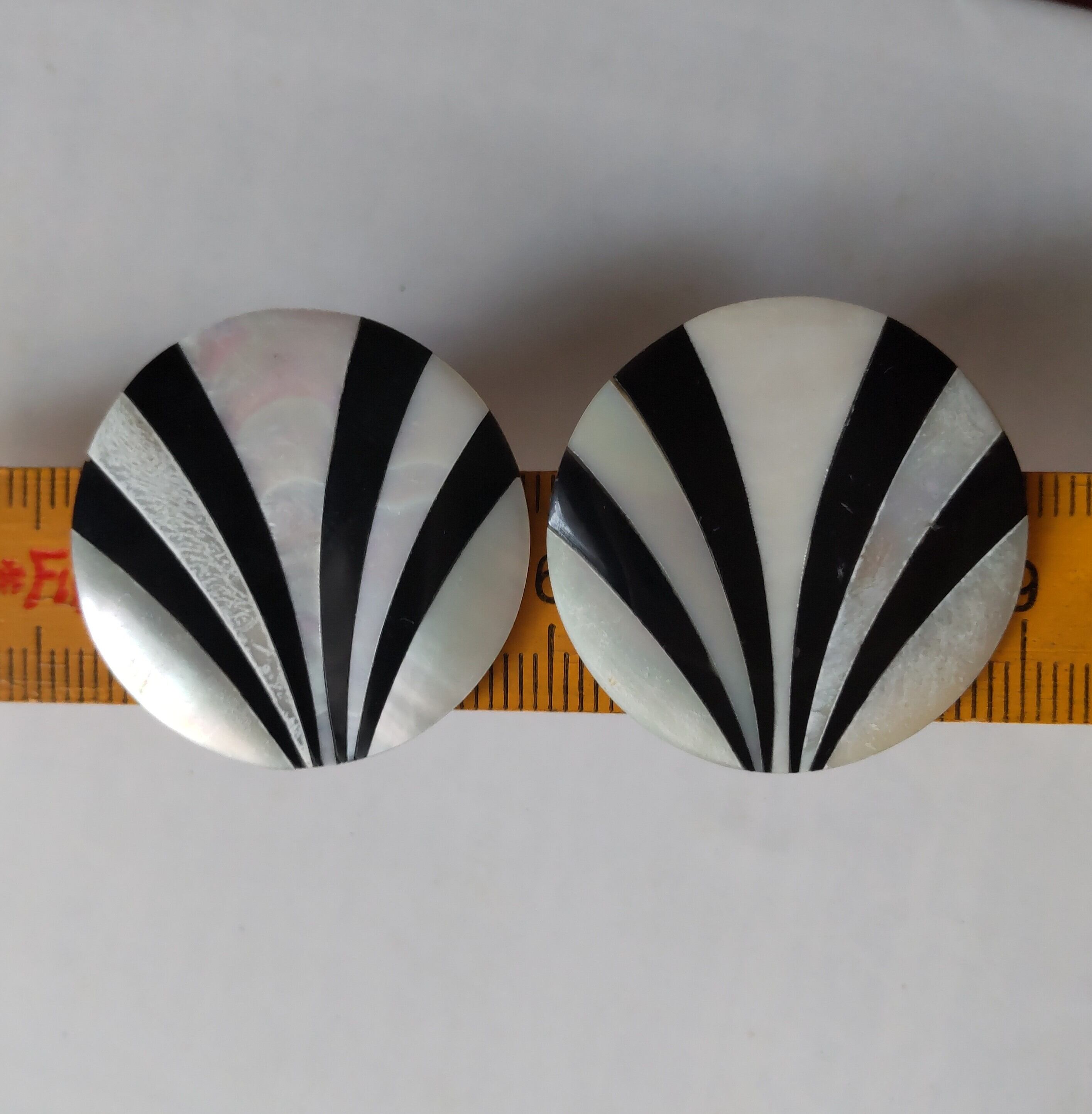 モダンで美しいデザインの貝細工のヴィンテージイヤリングです