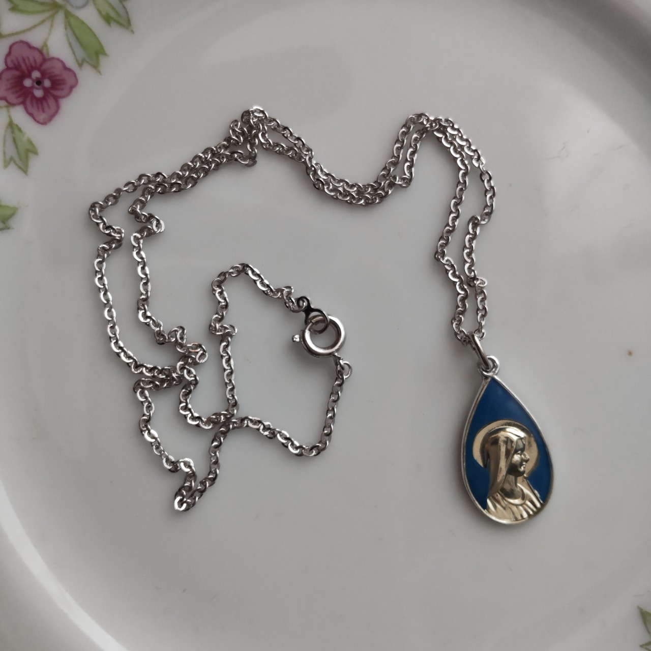 ルルドのマリア様モチーフのヴィンテージメダイネックレスです