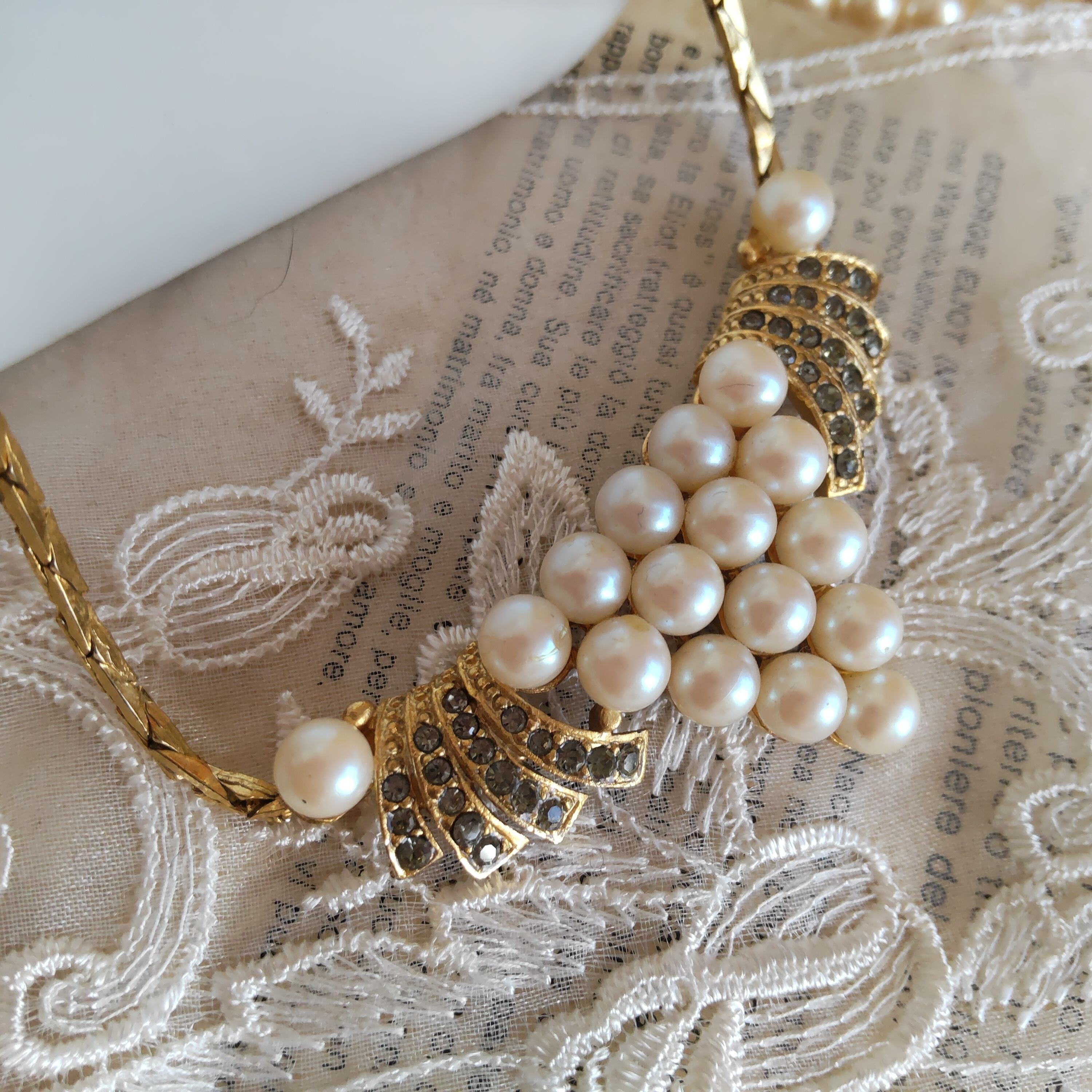 フェイクパールとキラキラの可愛くて素敵なヴィンテージネックレスです