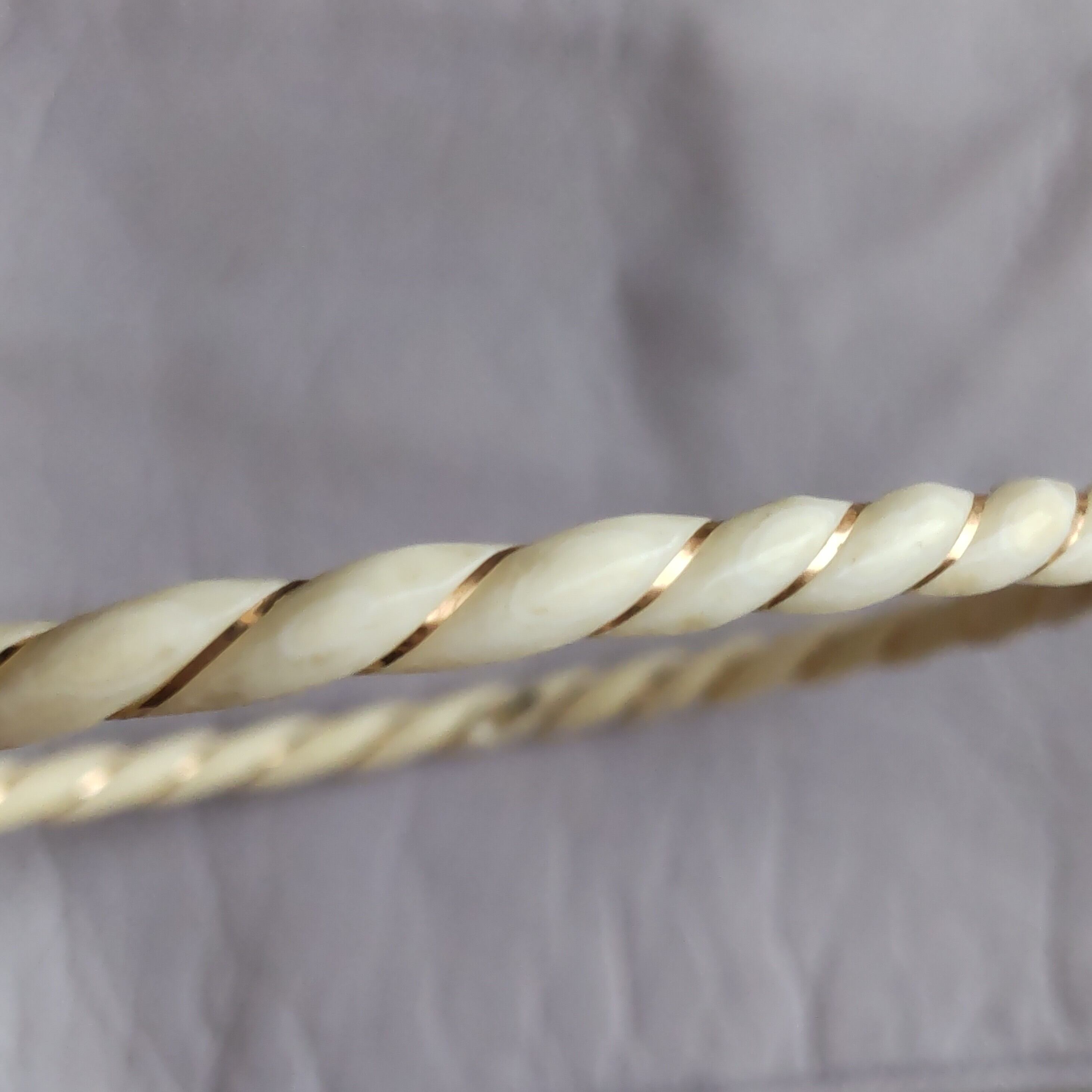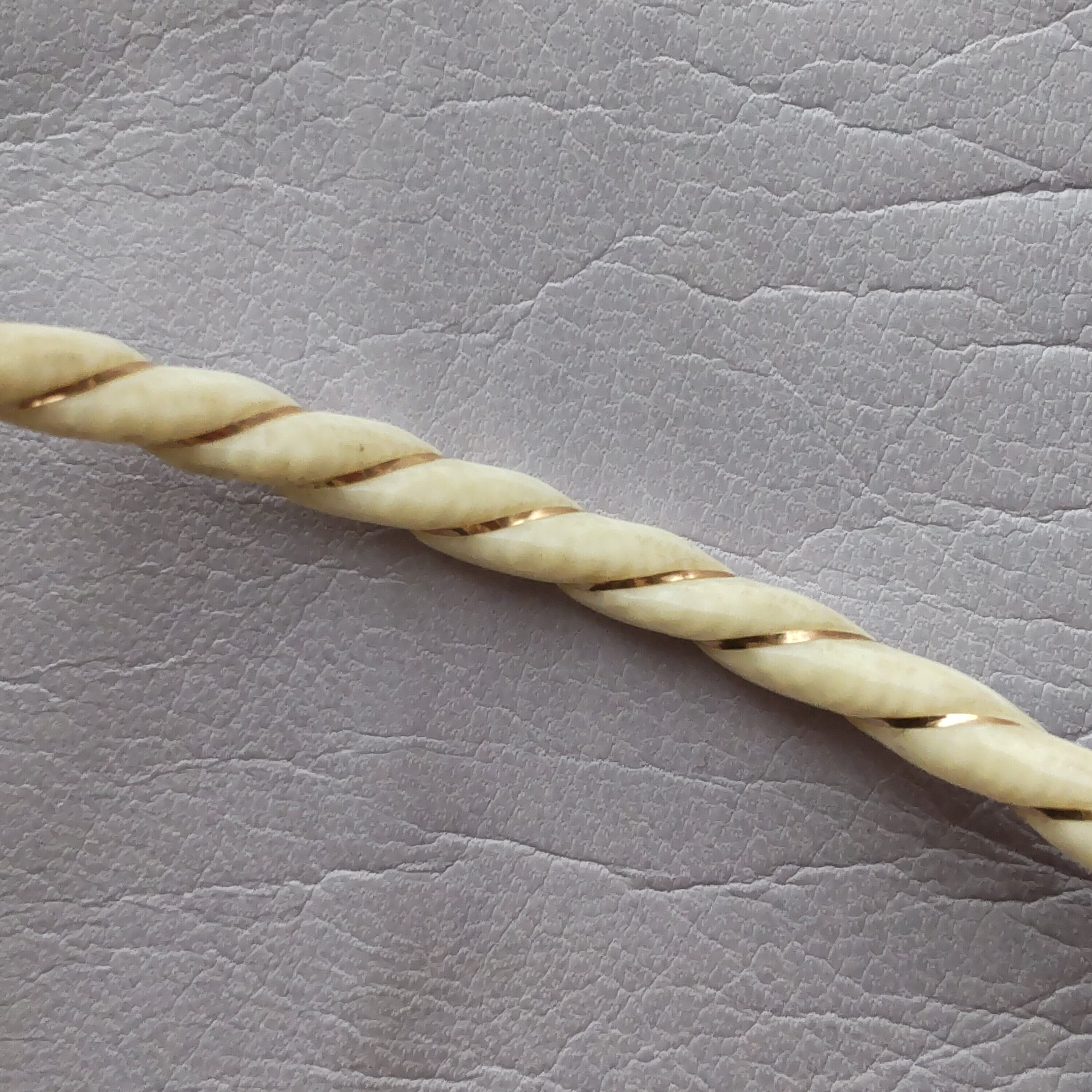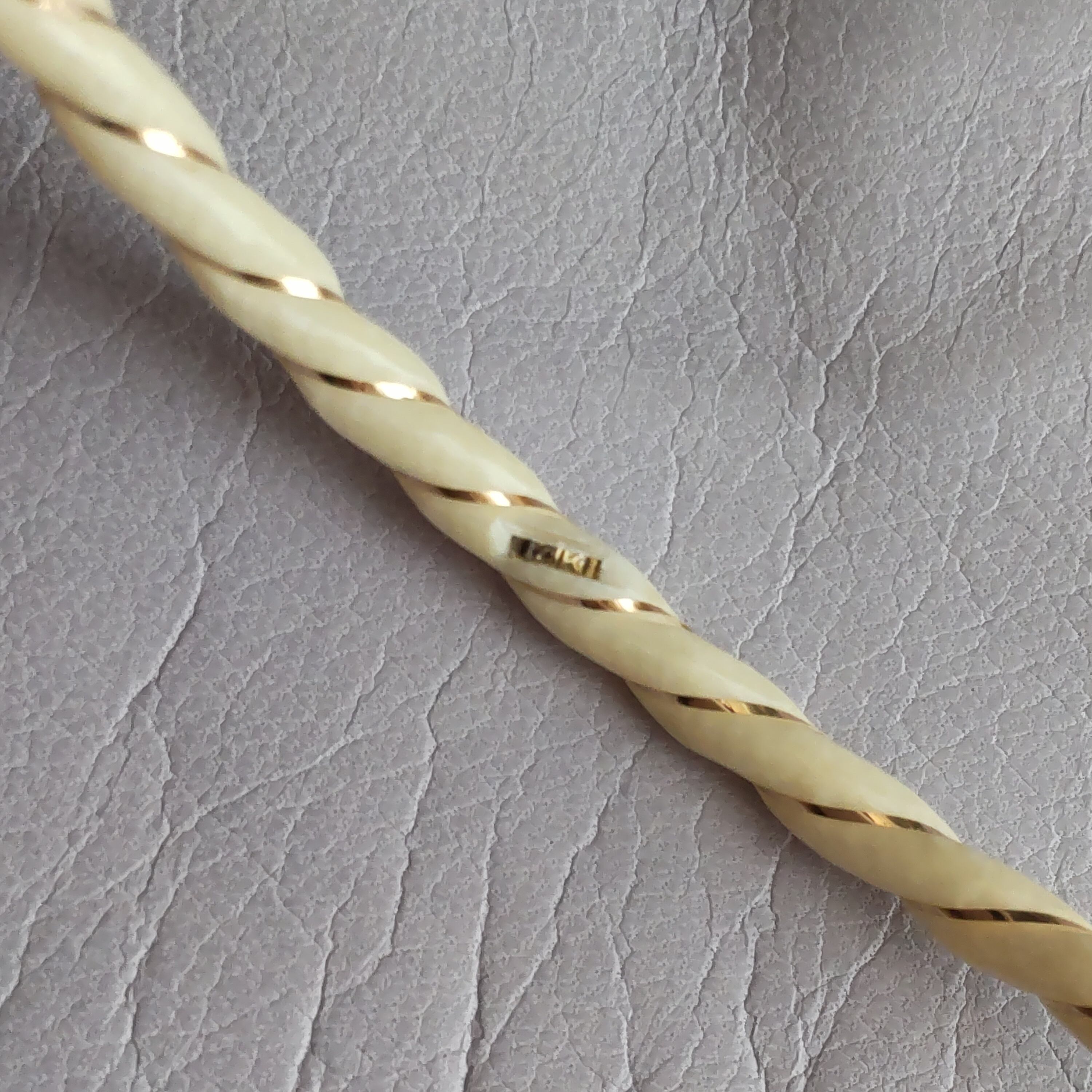 スパイラル状の彫りに14金の金糸が巻かれた天然素材のヴィンテージバングルです