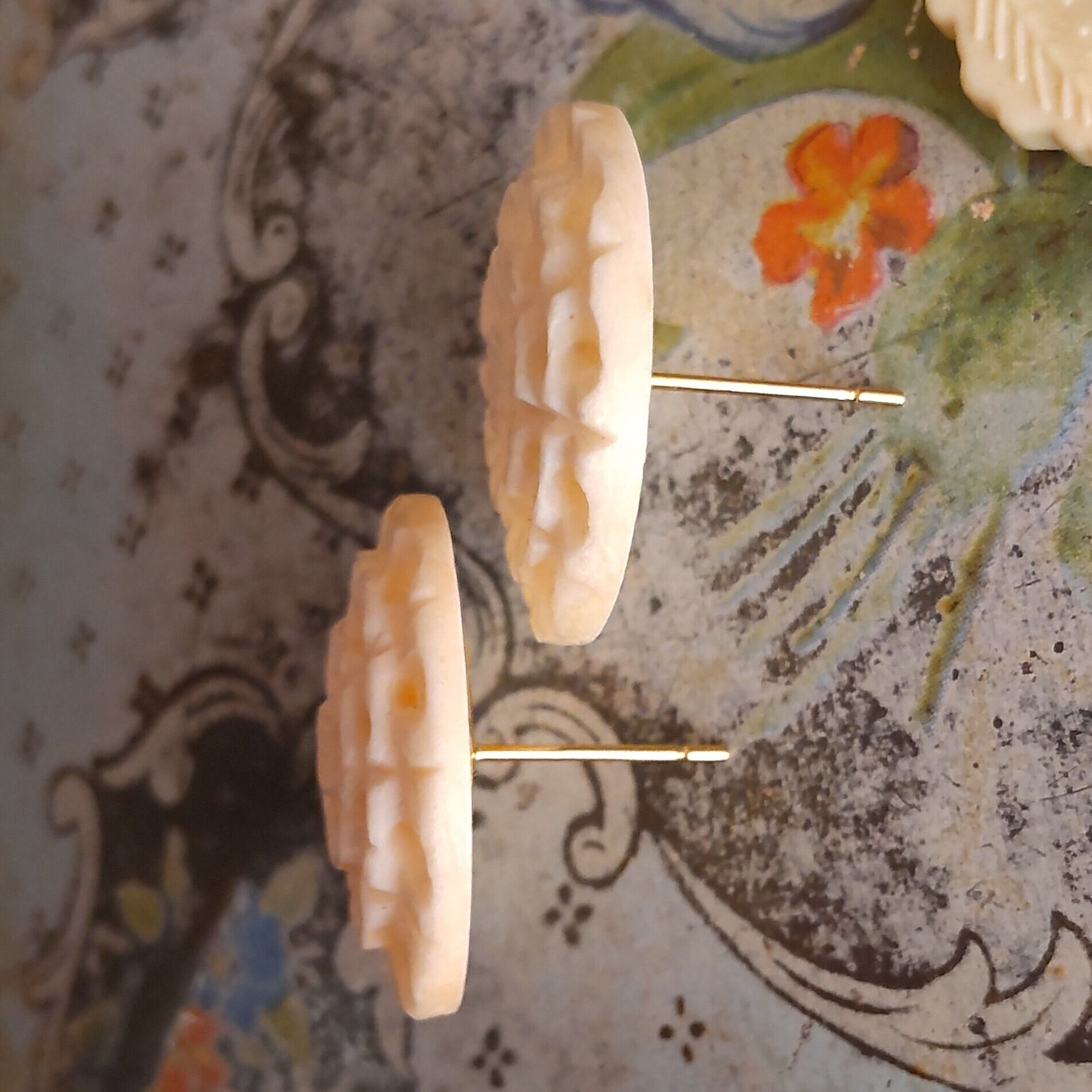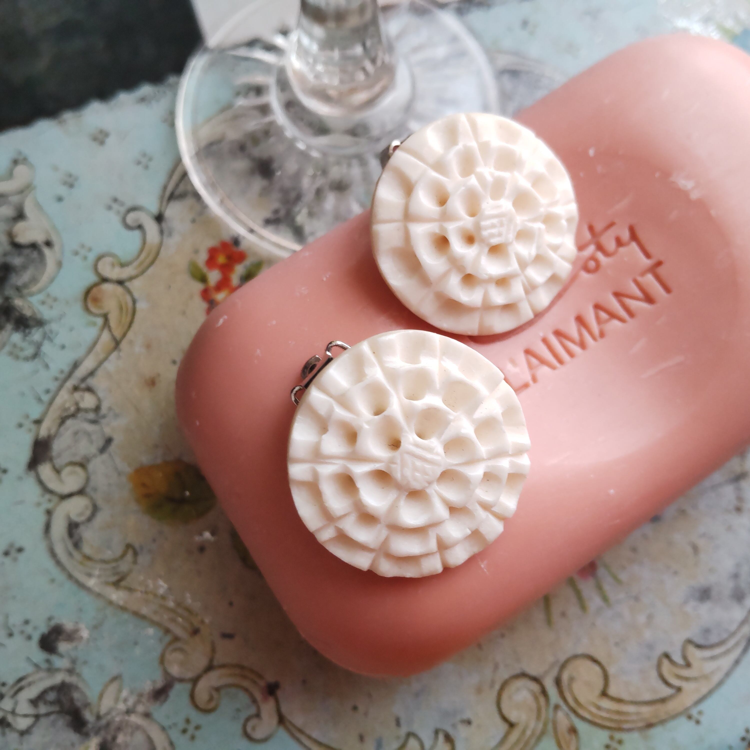 タンポポのようなまあるいお花のとても可愛らしい彫りのピアスです