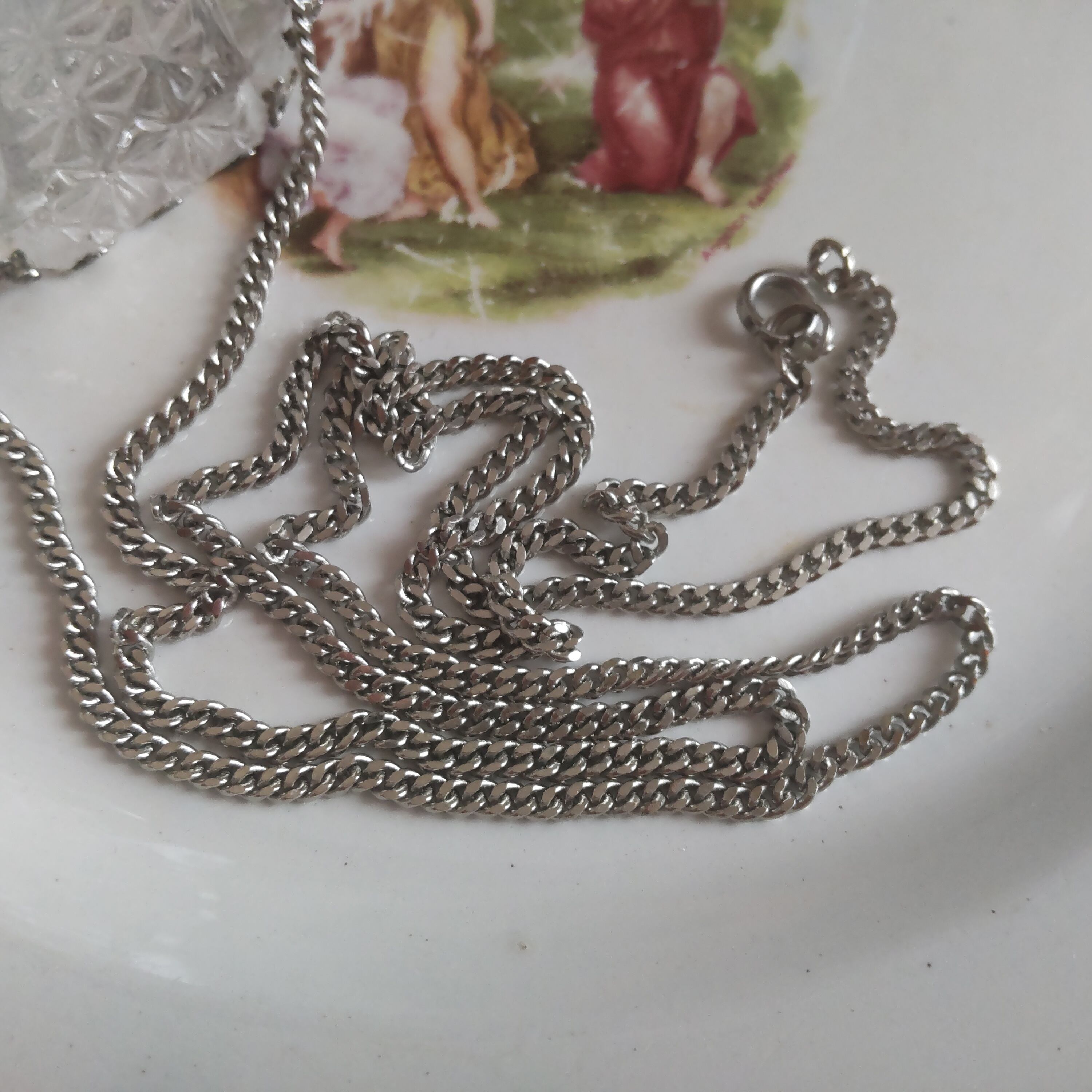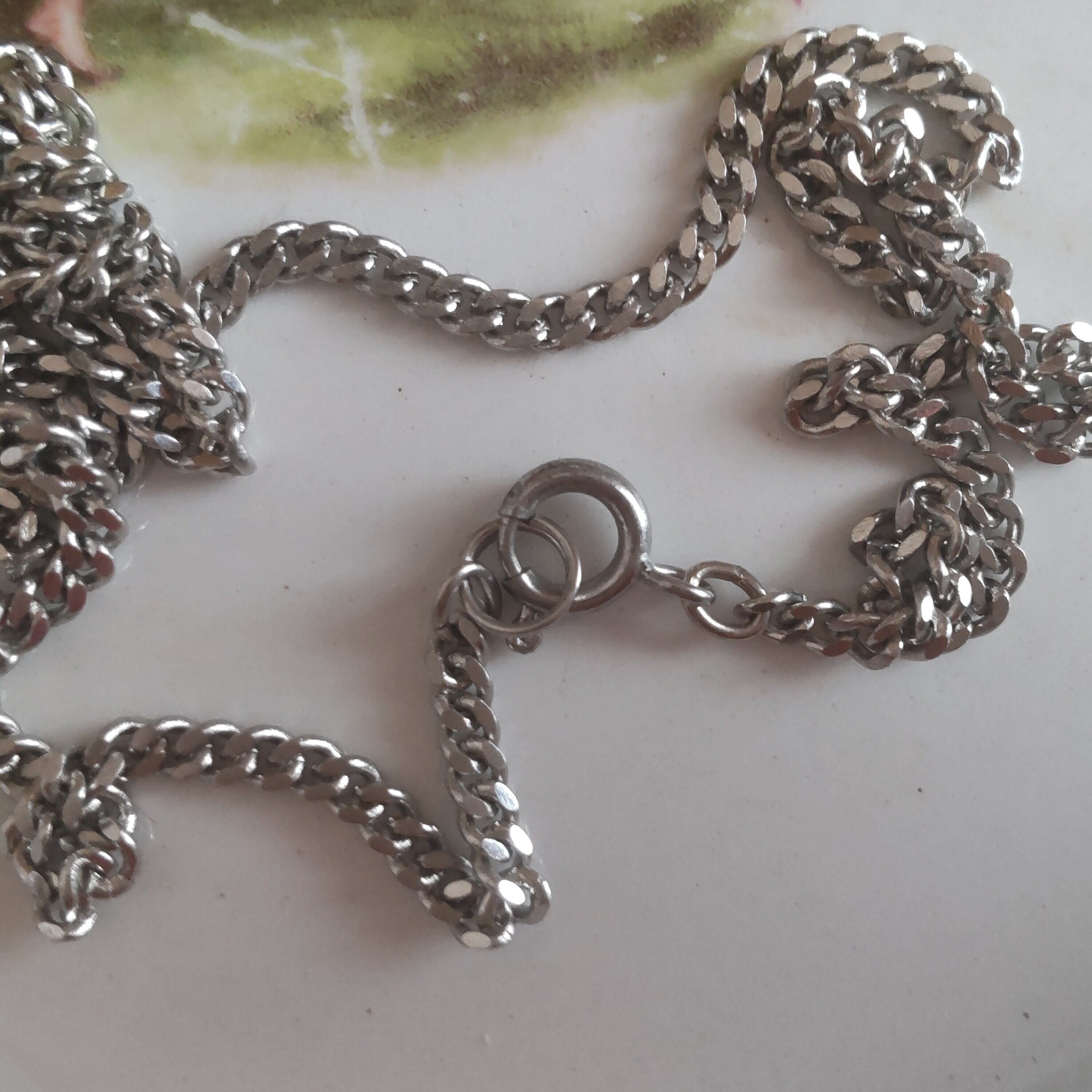 ホルダーつきチェーンネックレスはシルバーカラーの合金属製、太めで安心感があります