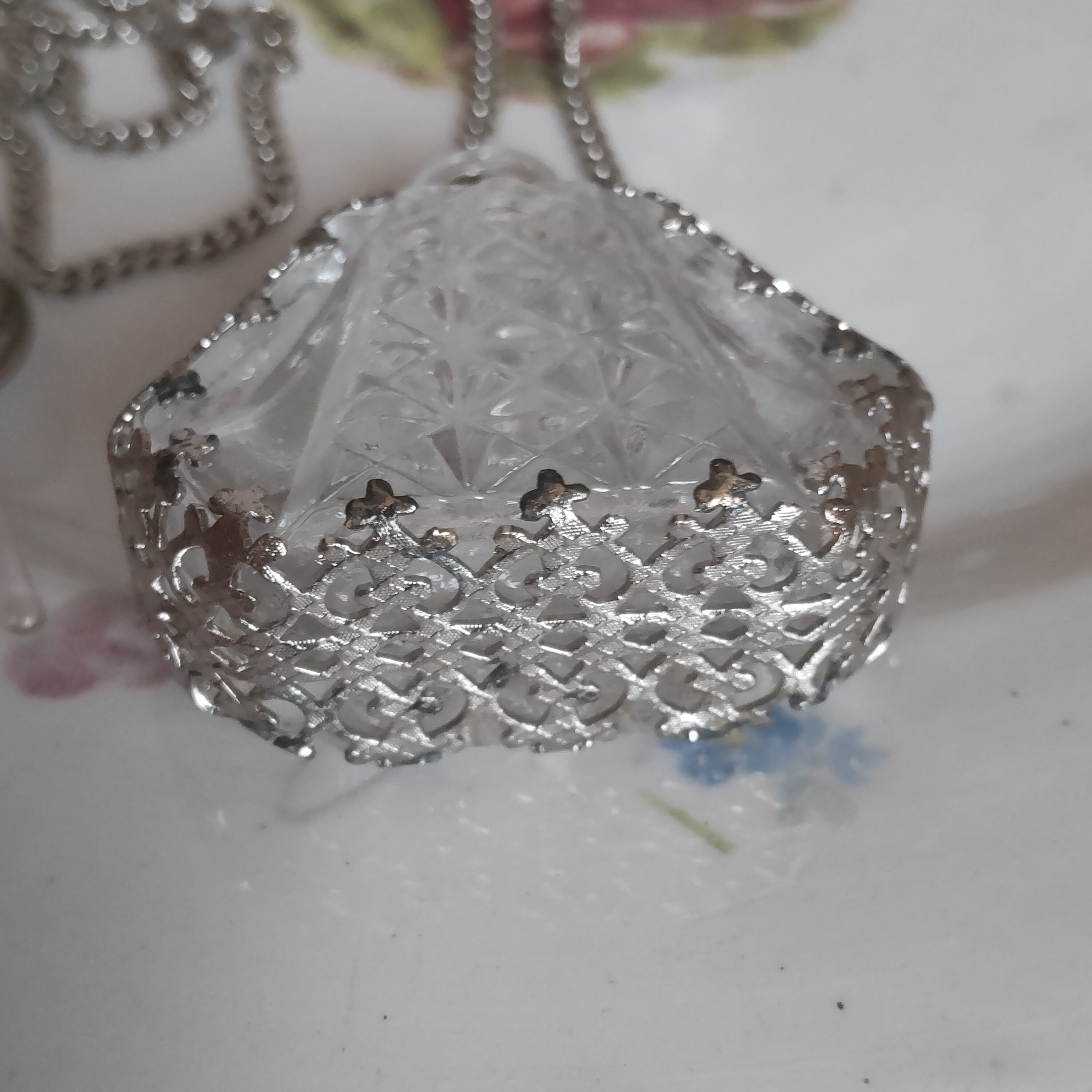 チェコ製の古い香水瓶のおしゃれなペンダントネックレスです