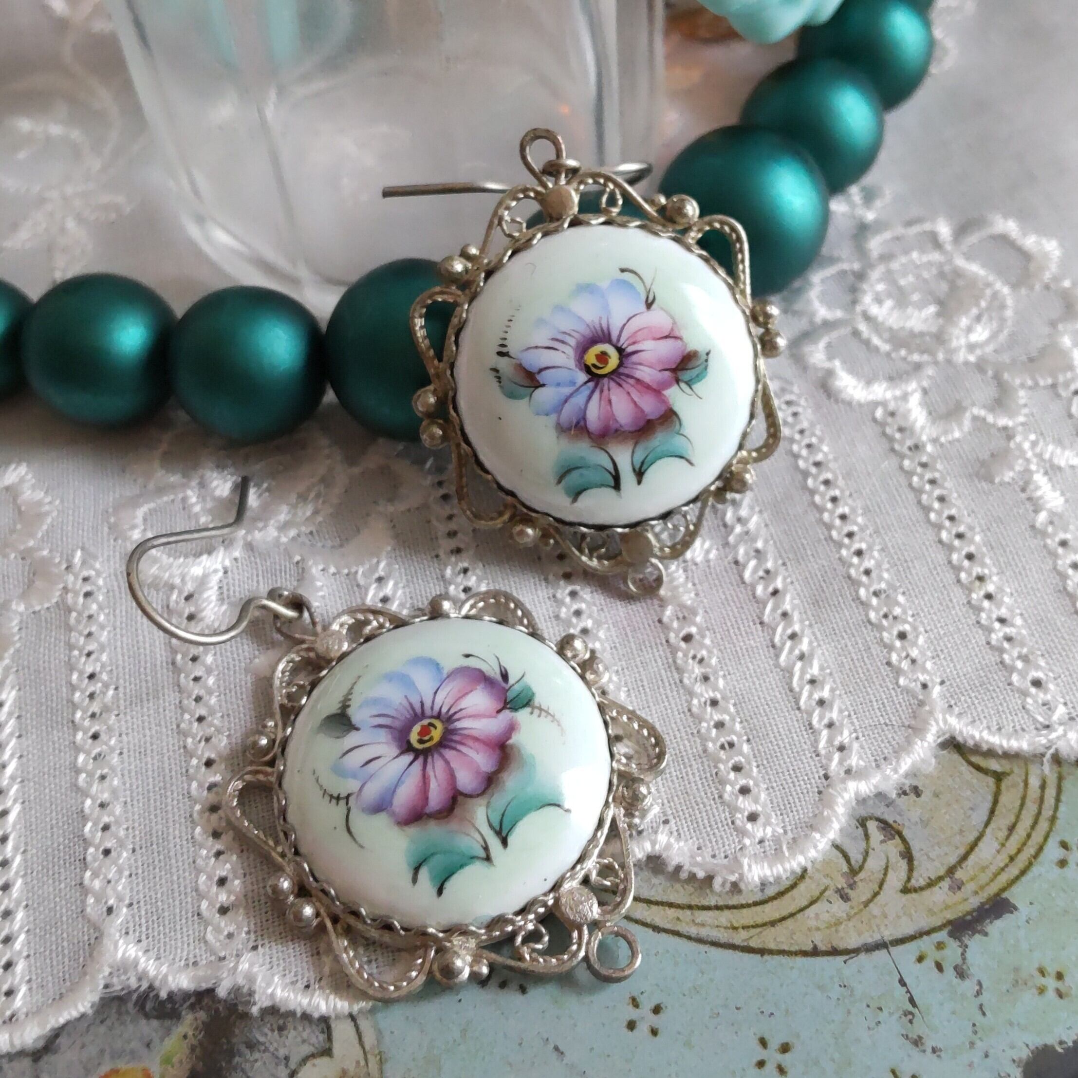手描きのお花にフィリグリーの台座がとても繊細で可愛らしいです