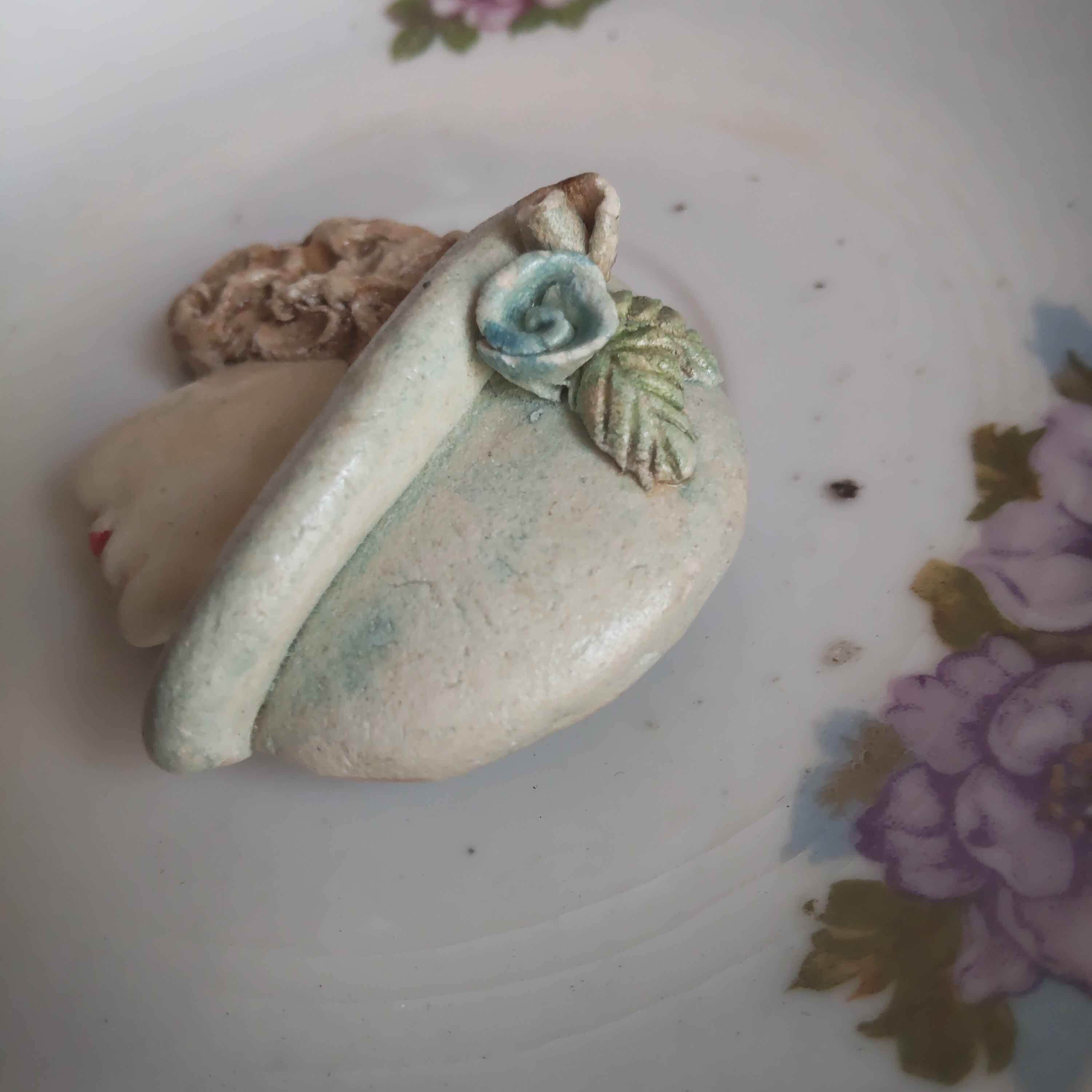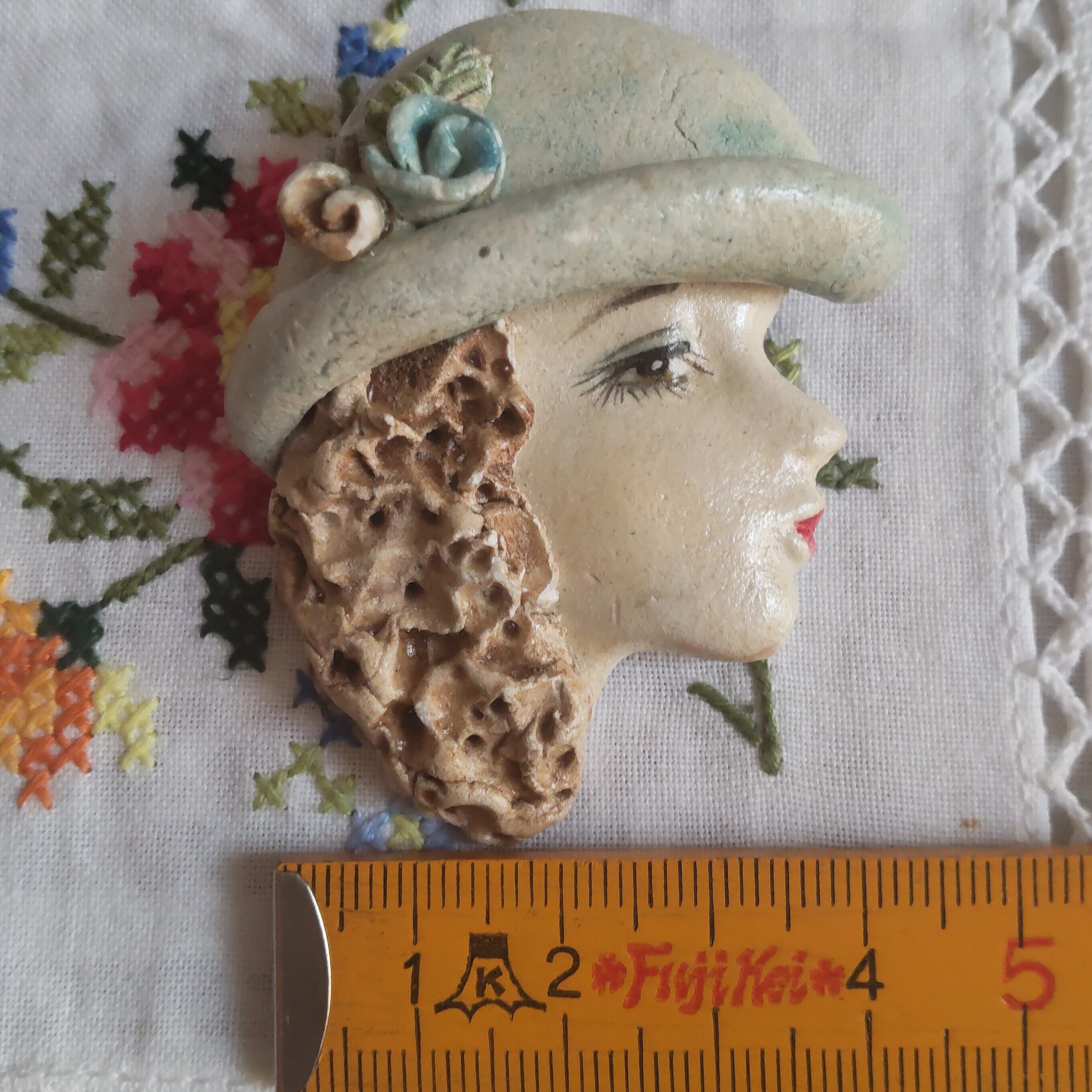紙粘土でできたハンドメイドの古いブローチです(作者不明)