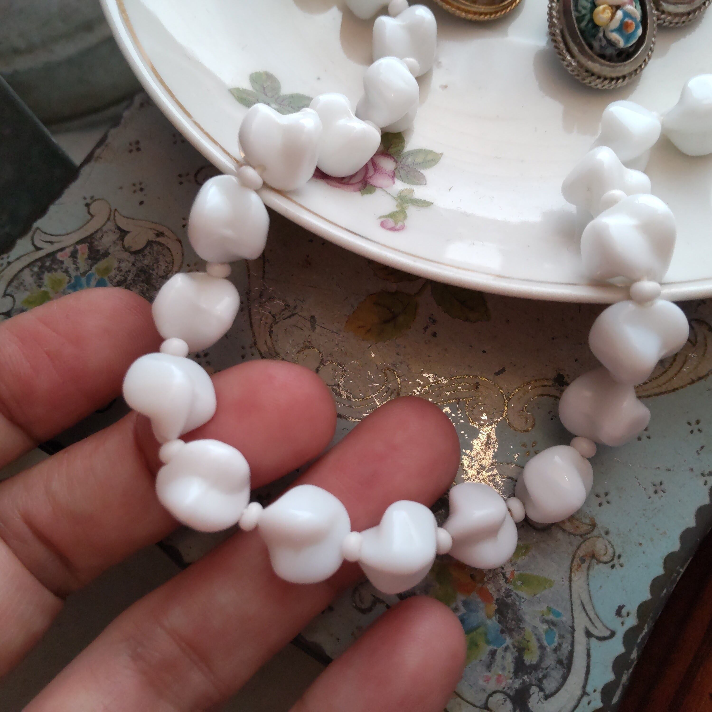 全体的に小ぶりで、ミルクのようなホワイトカラーの硝子ビーズがとても可愛らしいです