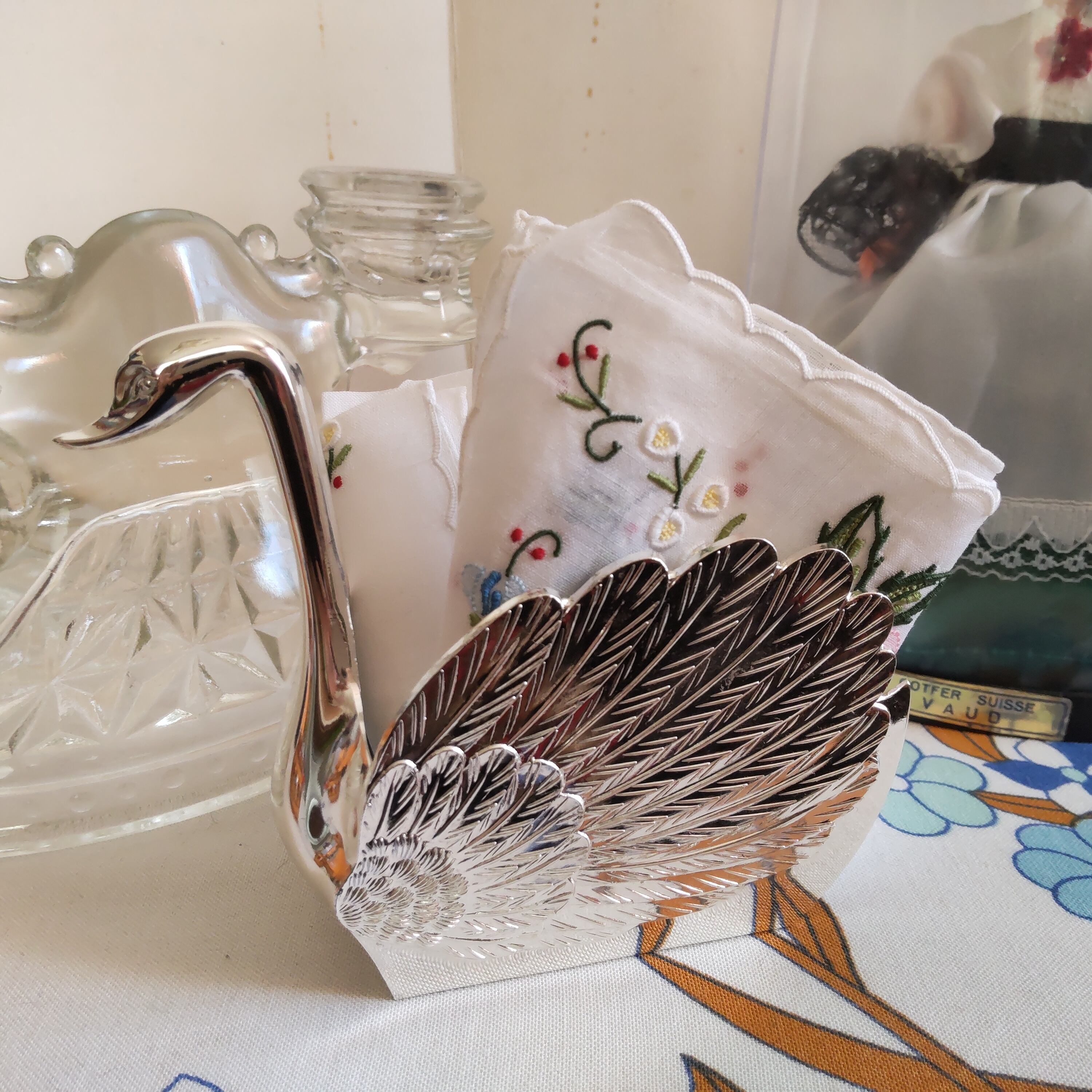 シルバーカラーの金属でできたスワンのヴィンテージ小物入れです