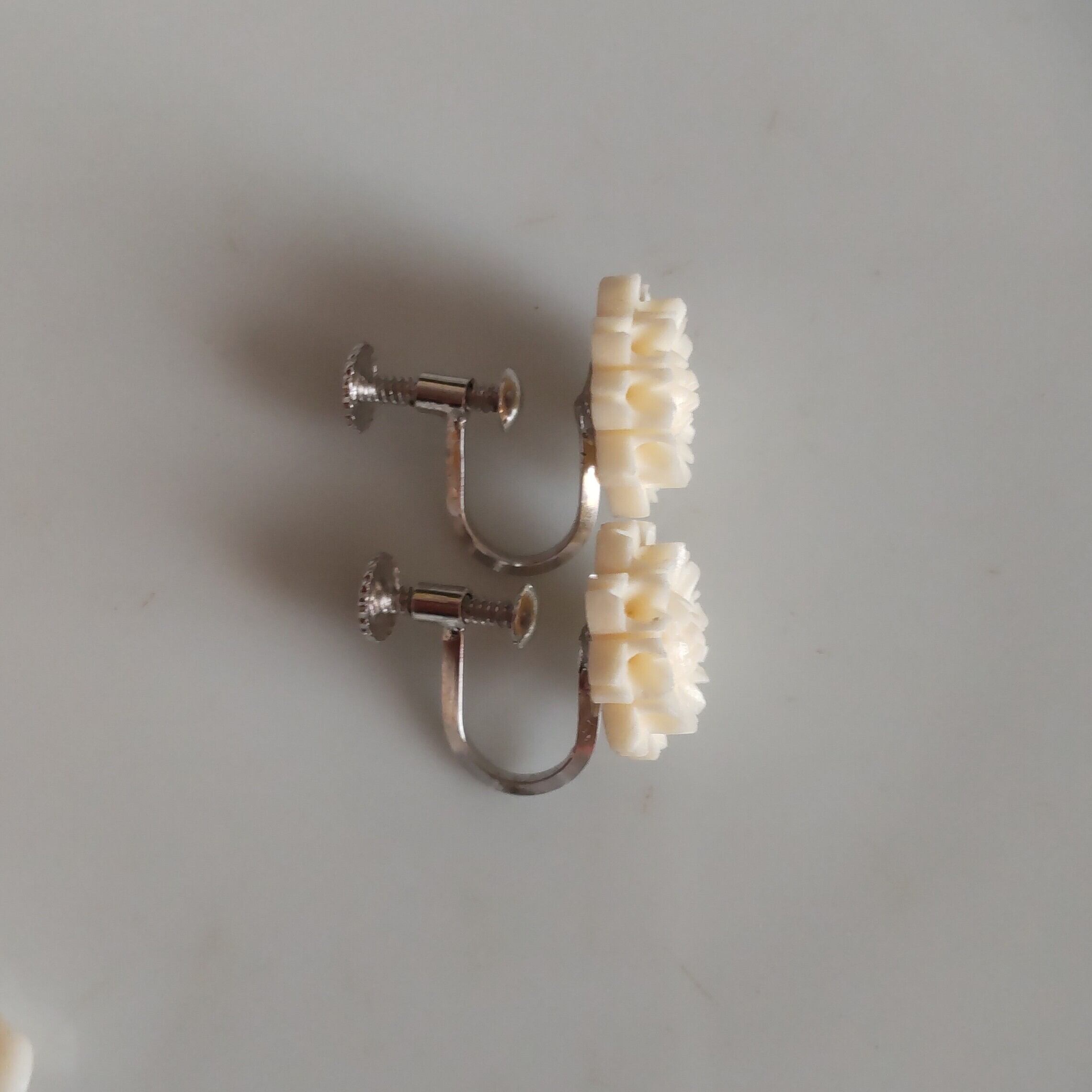 天然素材にお花の彫りが施されていて、色は乳白色で少し黄みを帯びています