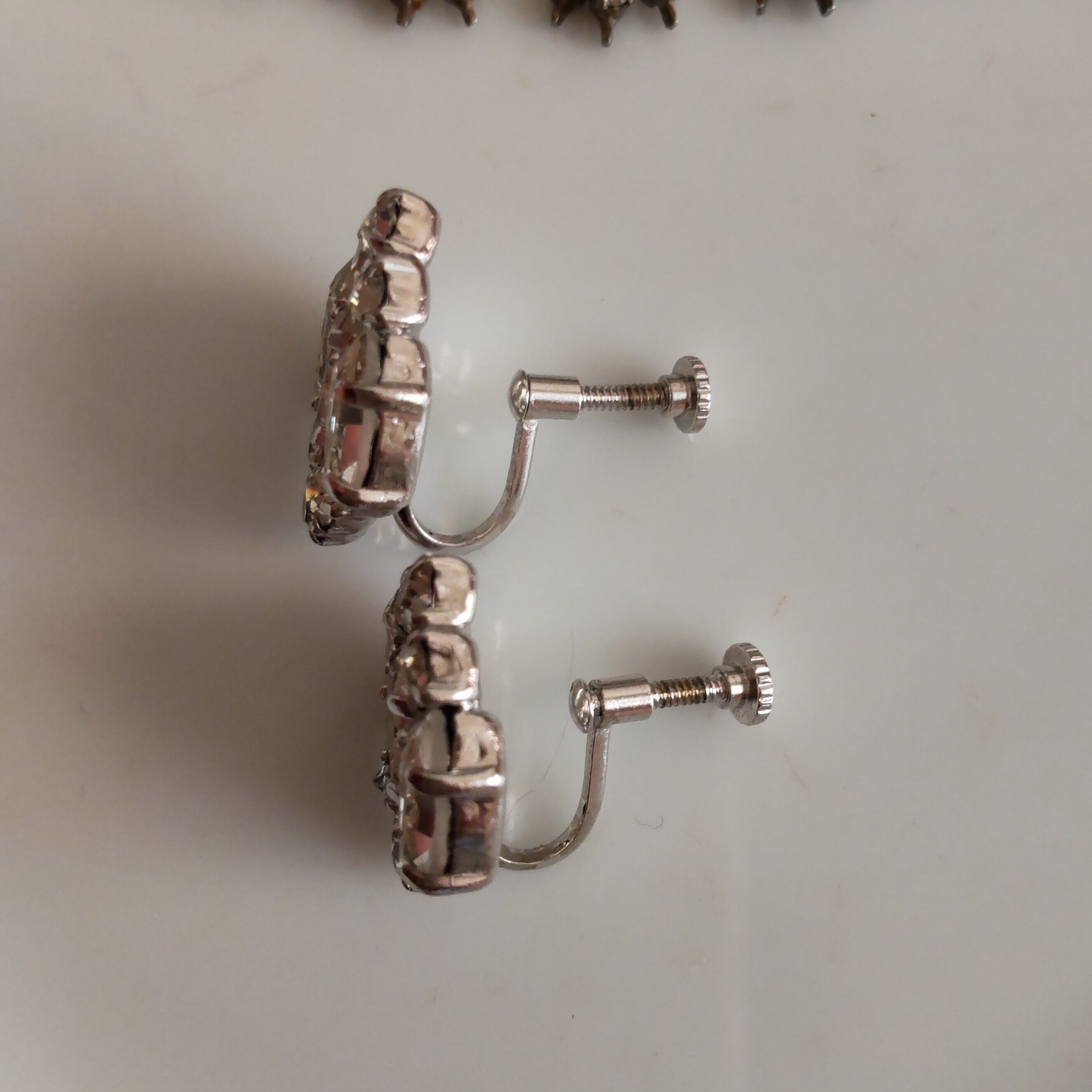 クリアの硝子ストーンがダイヤ型にデザインされたヴィンテージイヤリングです