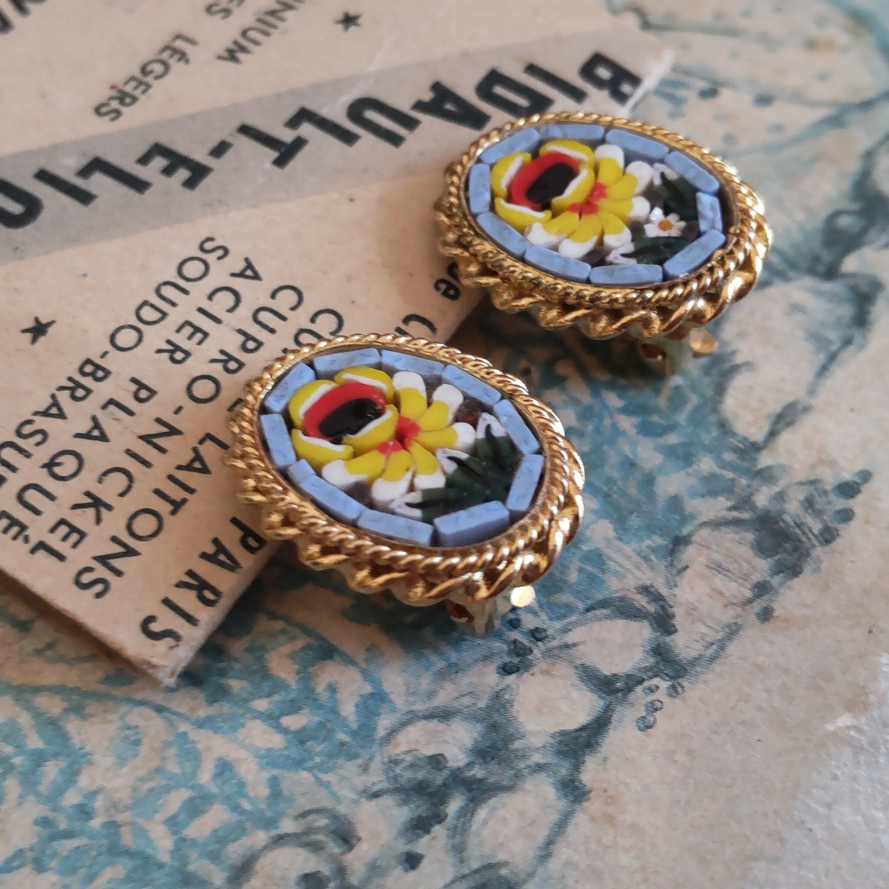 ベネチア 硝子モザイク お花のヴィンテージイヤリング