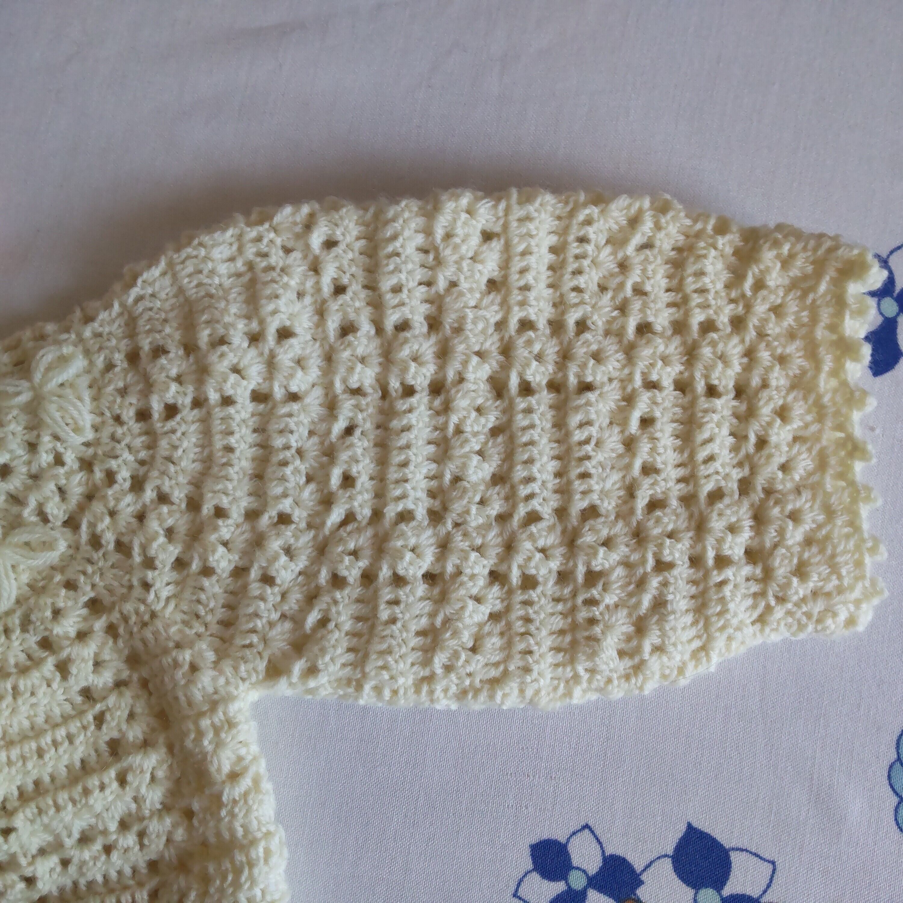 薄い黄色の手編みニットで小さくてとてもかわいいです