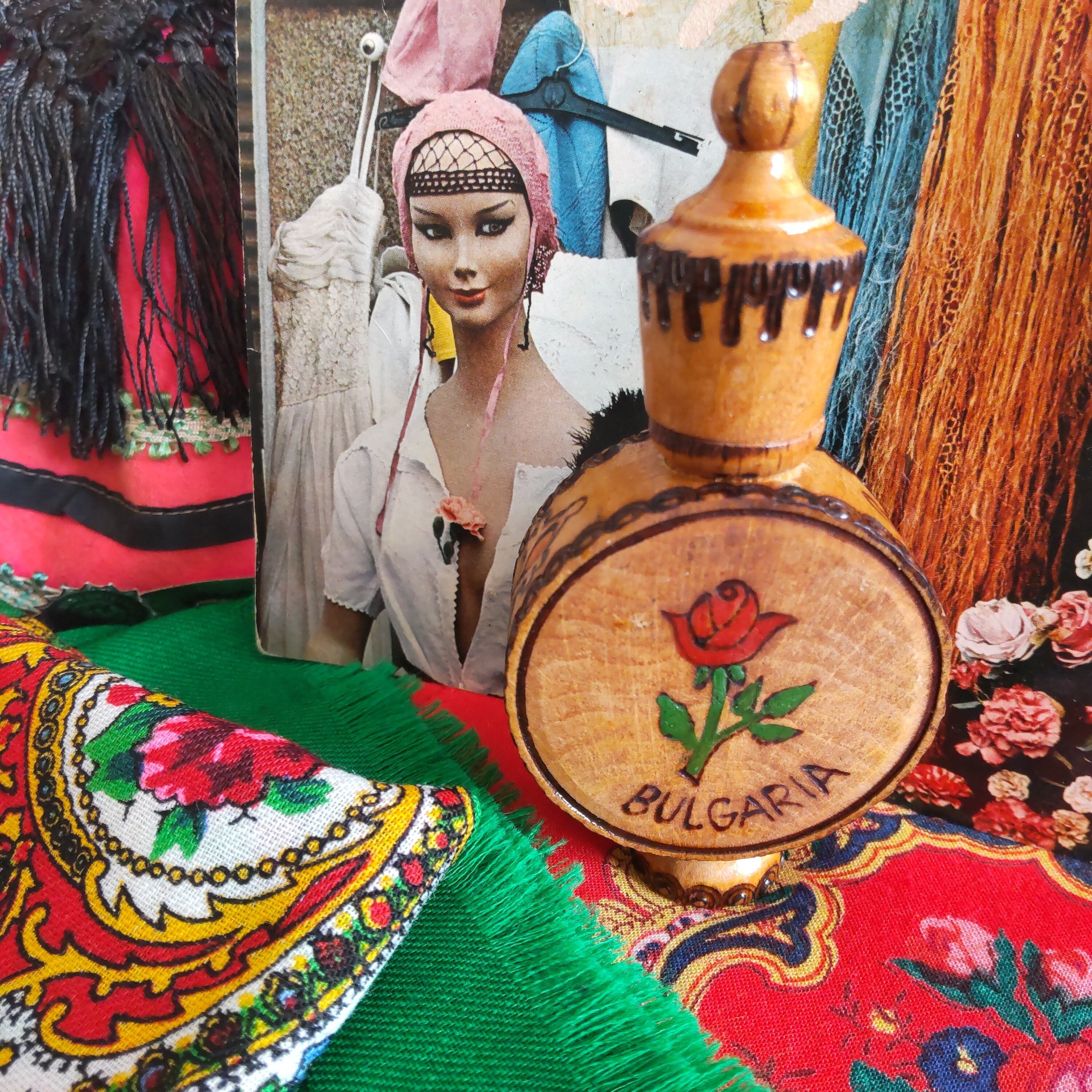 ブルガリアの木製の可愛らしい香水ボトルで、中にローズのピュアオイルが入っています(ローズ100%の素敵な香りです)