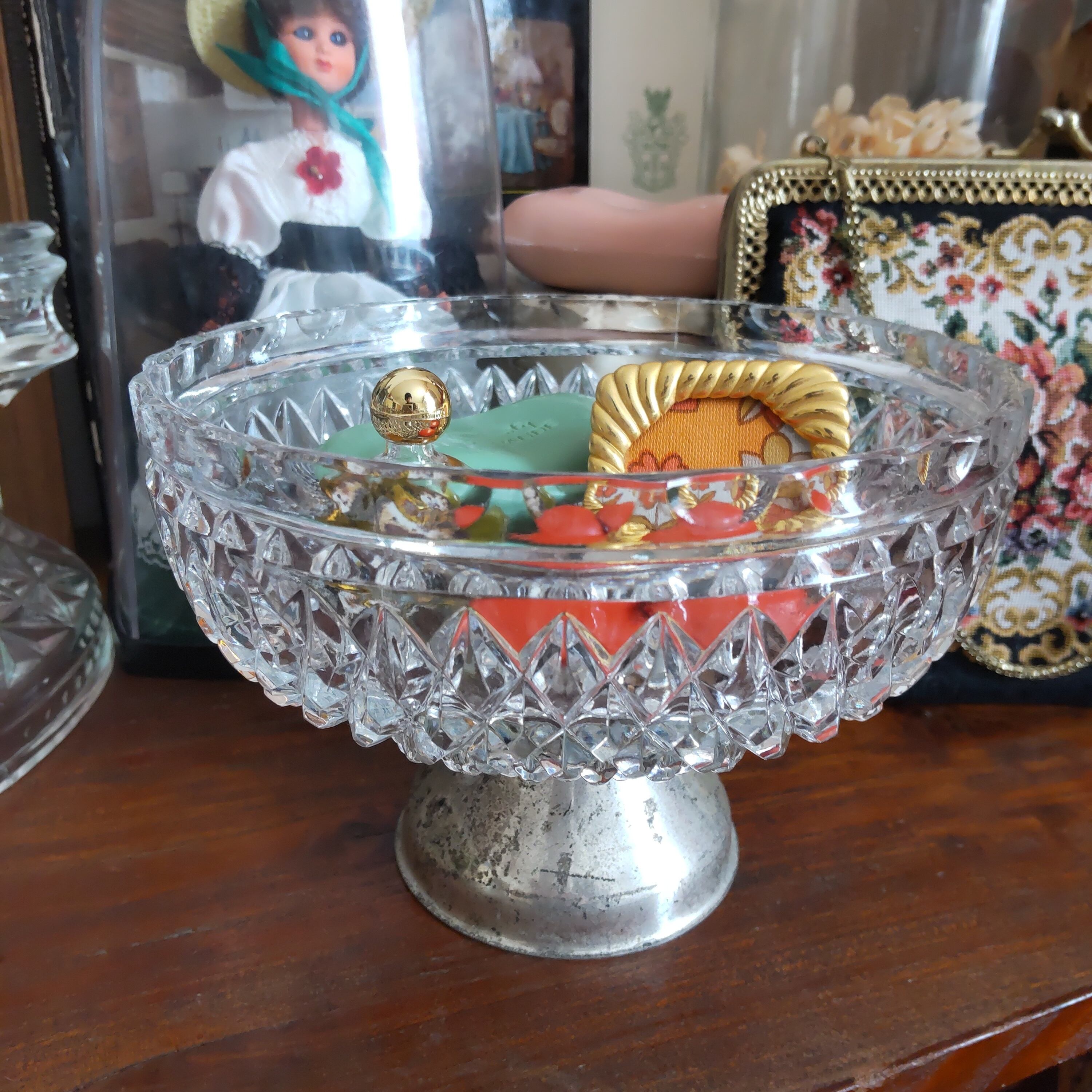 昭和レトロの硝子製脚付き容器になります