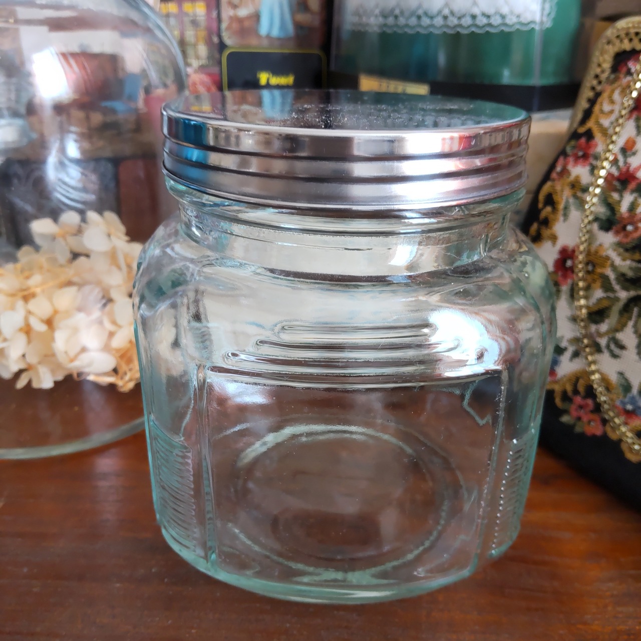 ヴィンテージグラスジャー①(蓋に変色箇所あり)