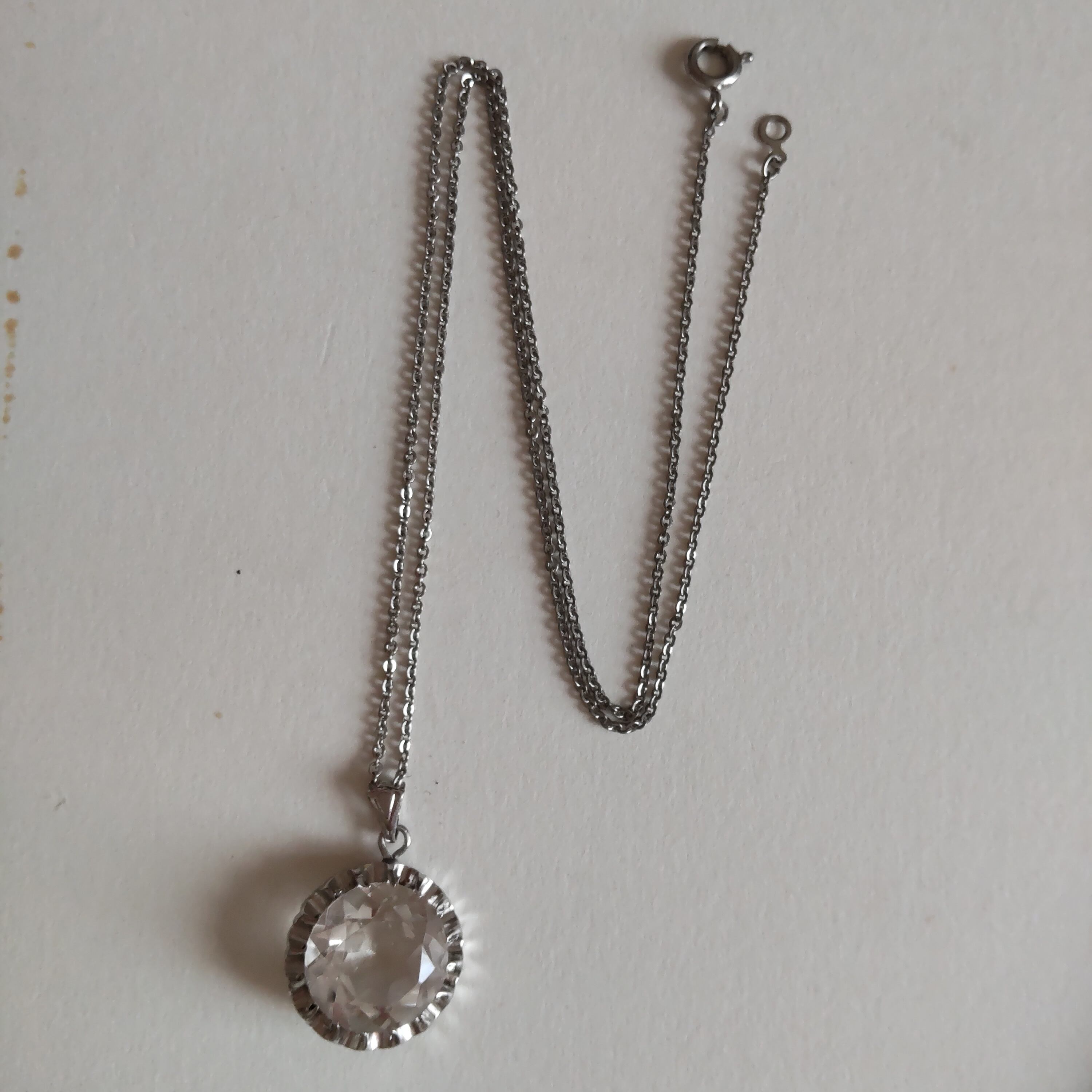 日本の古いネックレスで、菊の花のような爪の台座が水晶をより美しく引き立てています