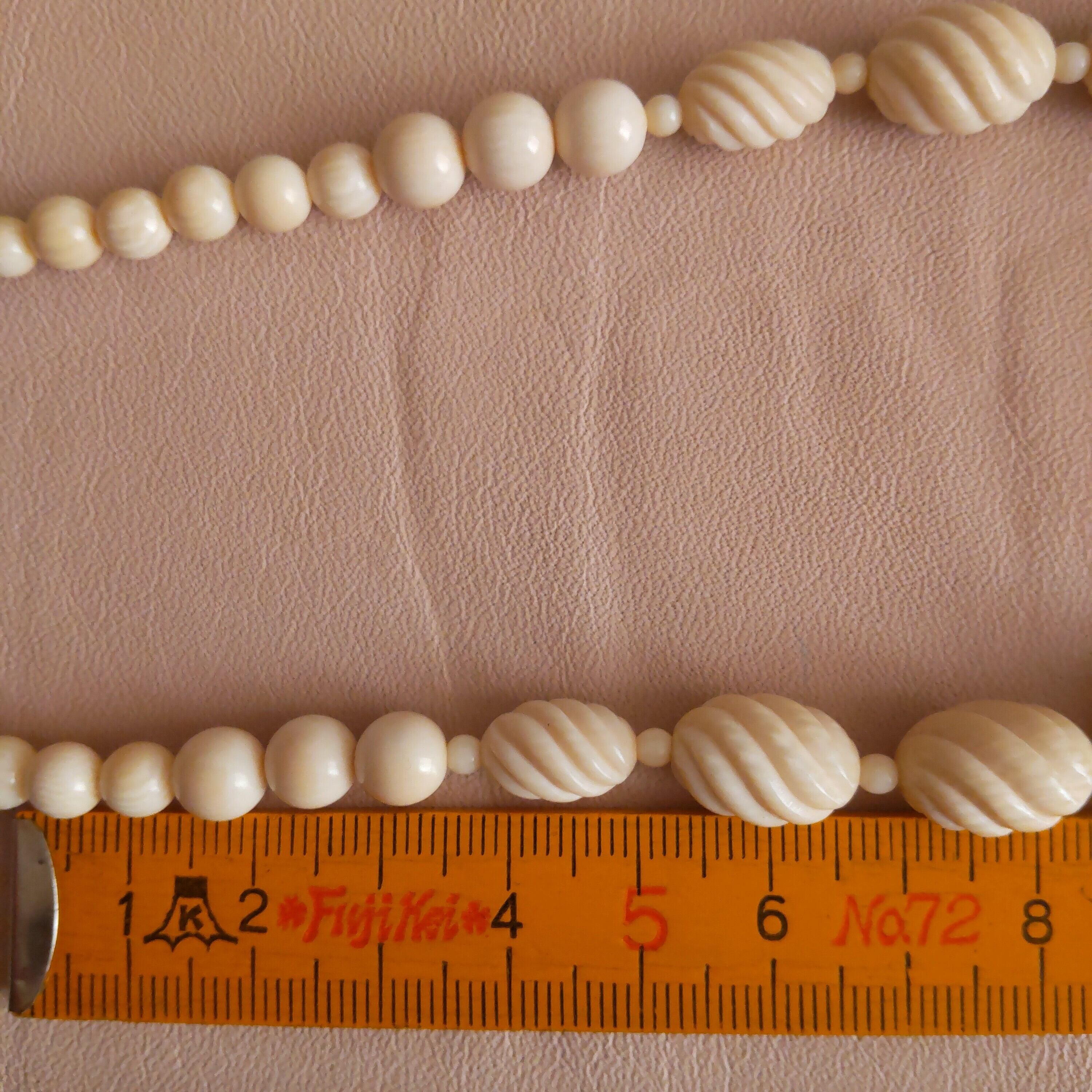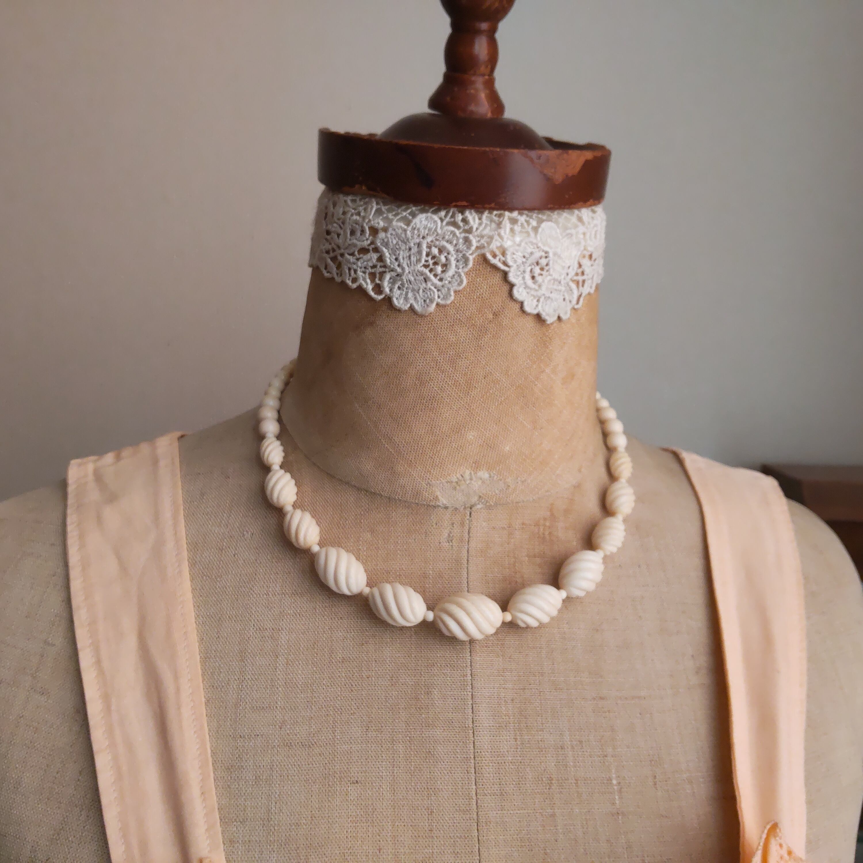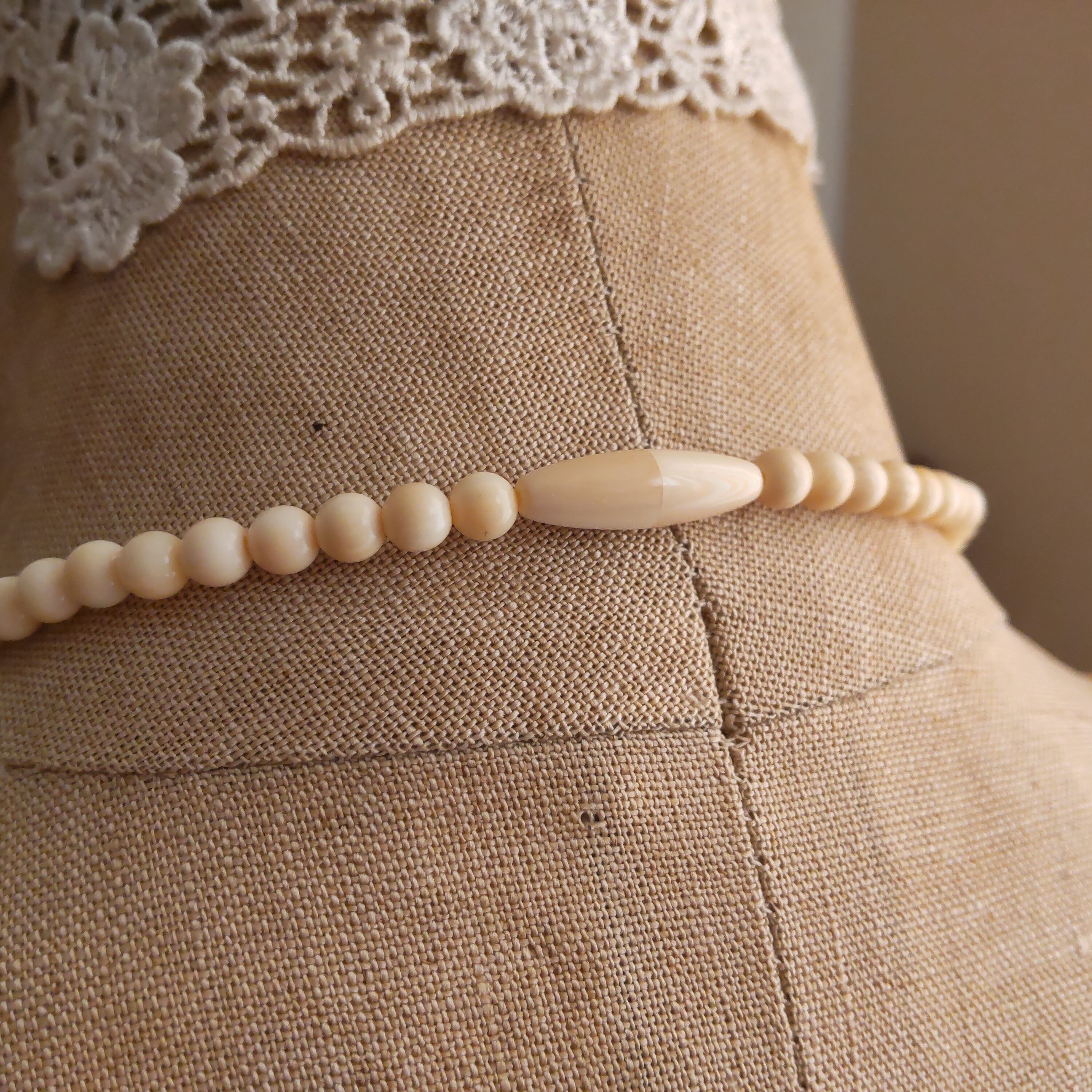 アイボリーカラーの美しいネックレスで、上品で繊細、ノスタルジックな印象のアンティークネックレスです