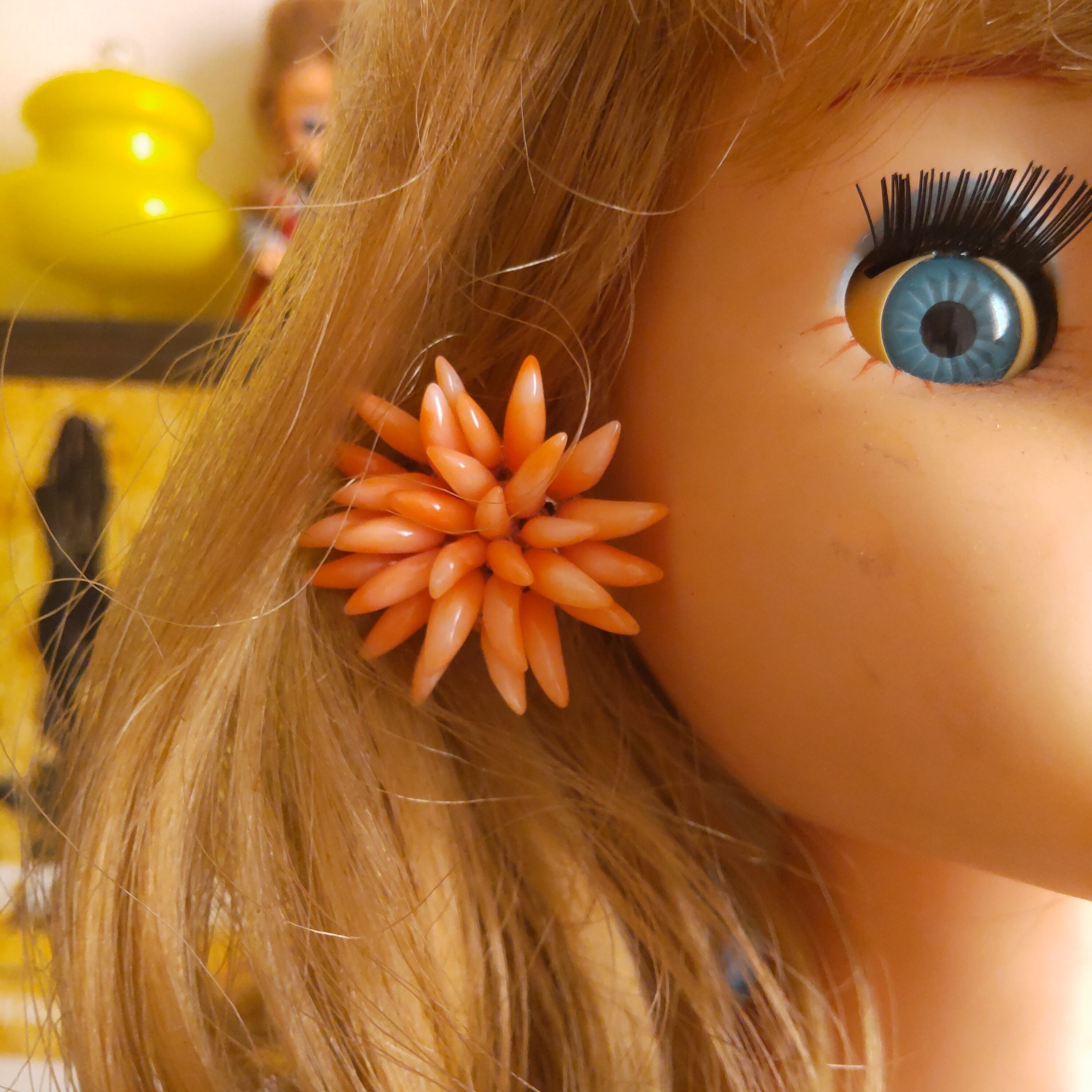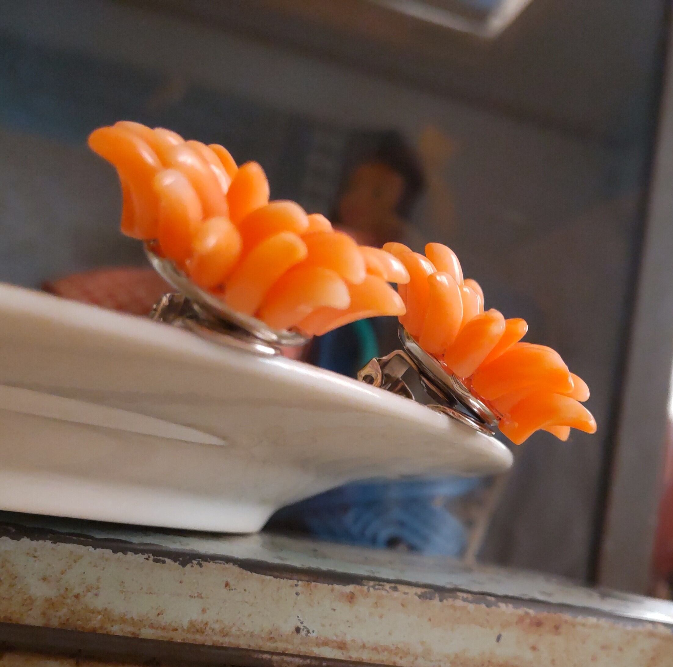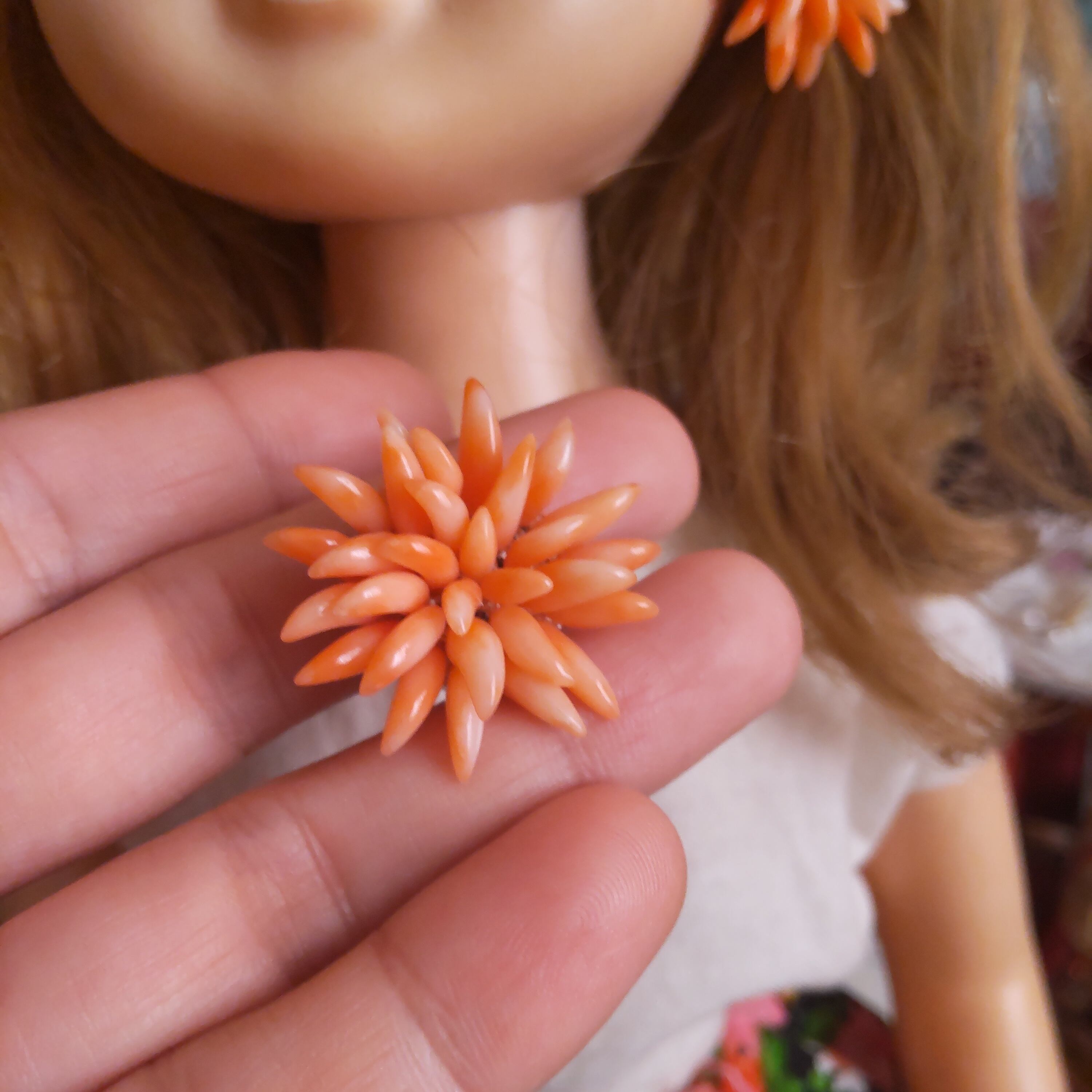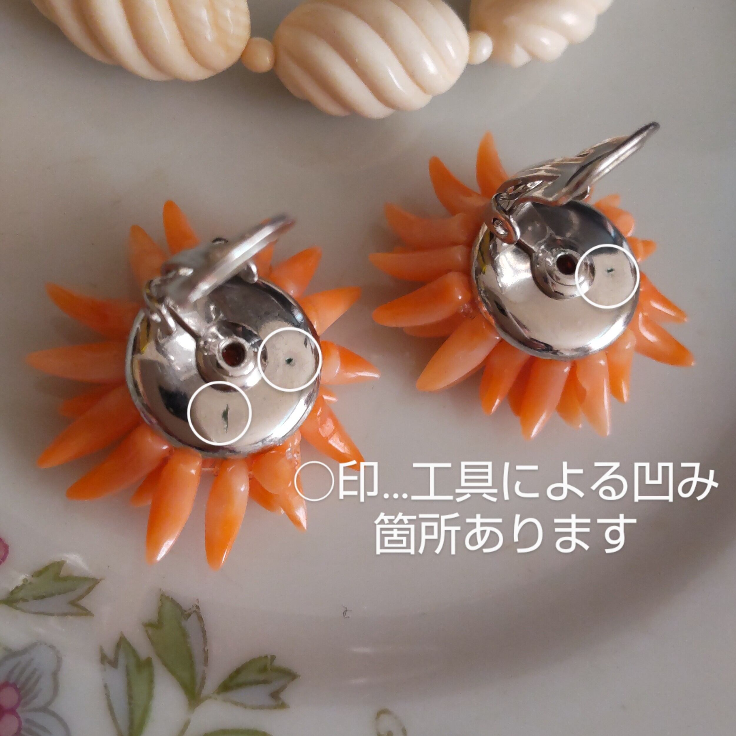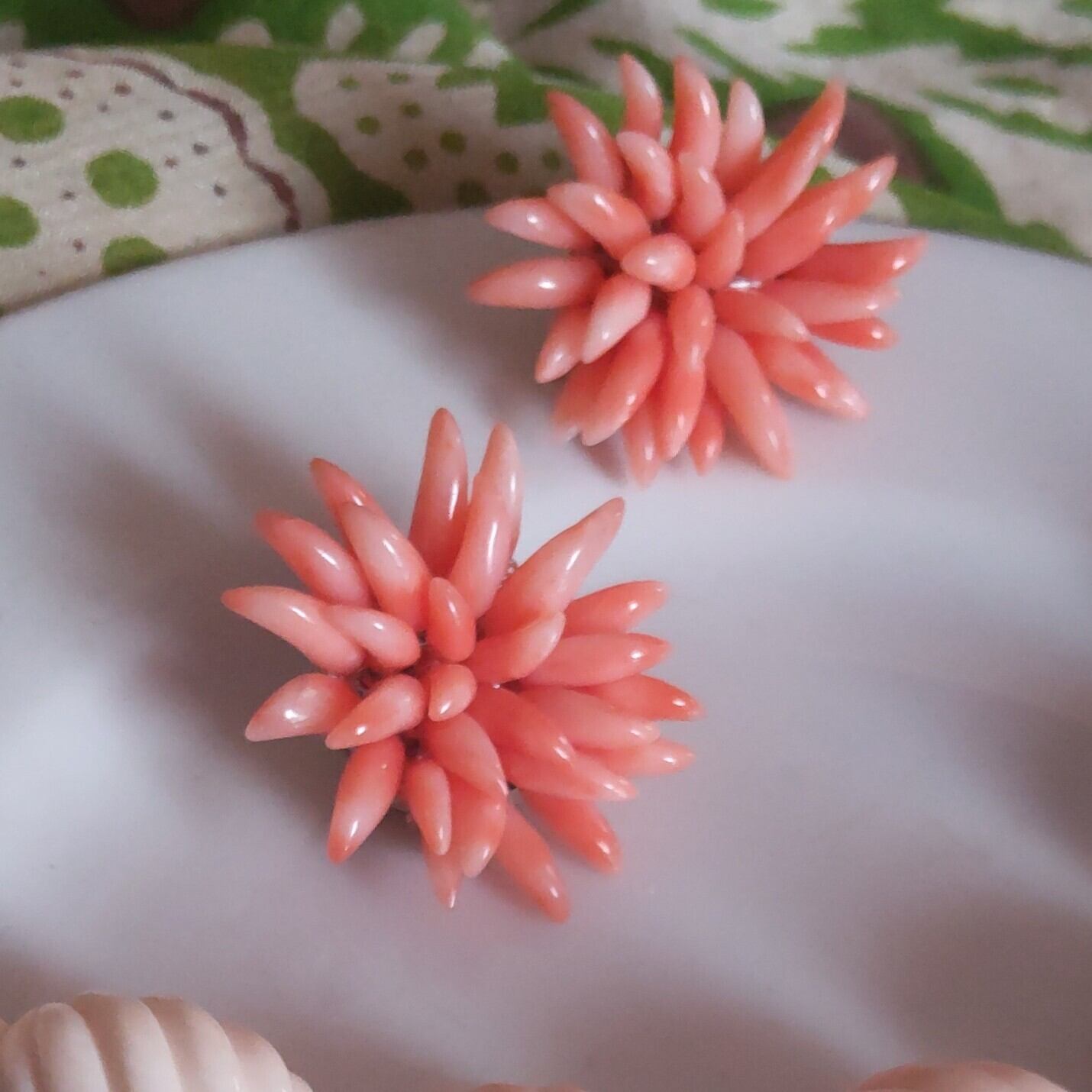 桃色珊瑚のビーズを細工した、華やかで可愛らしいイヤリングです