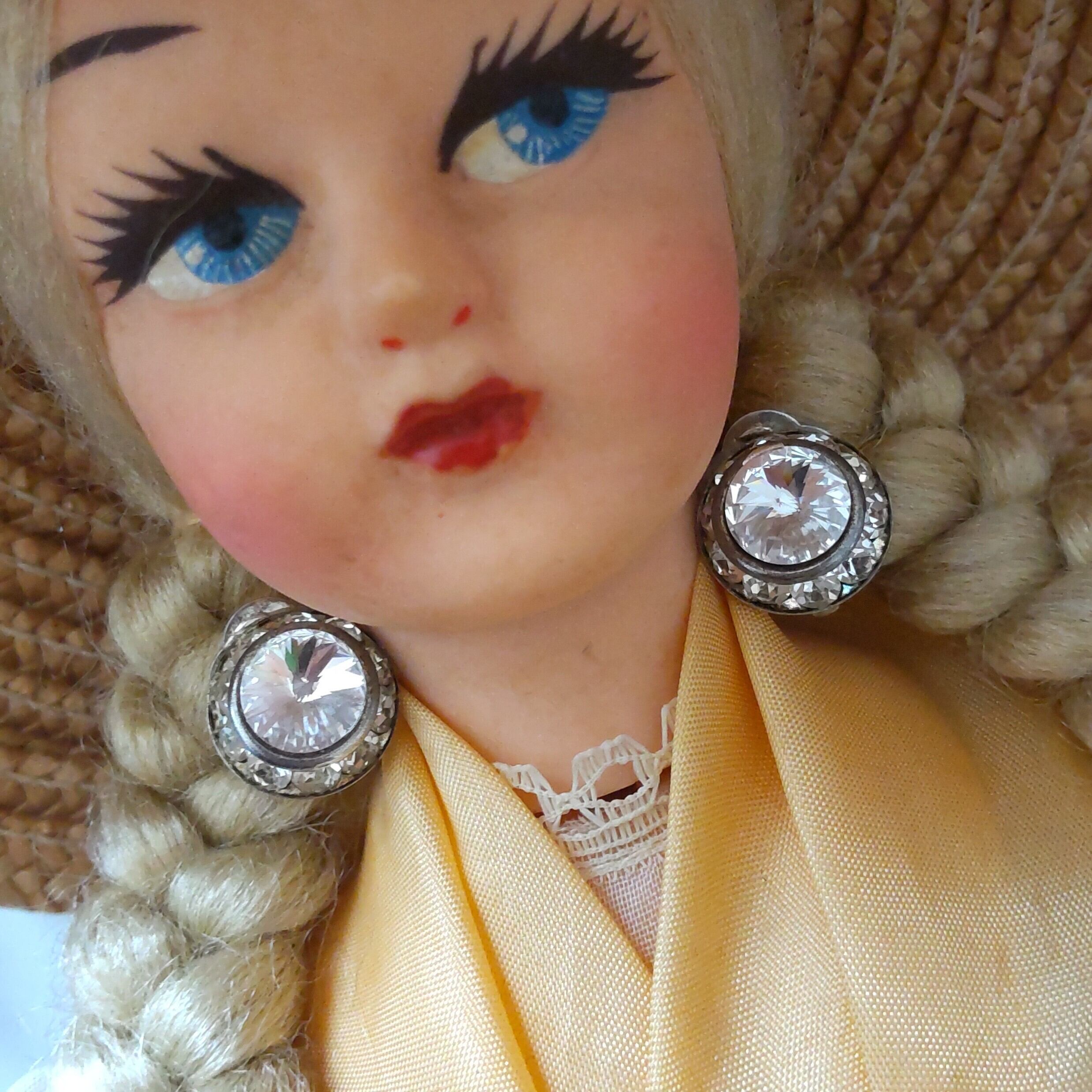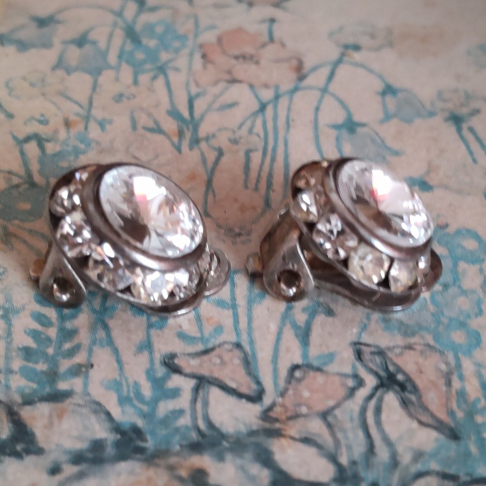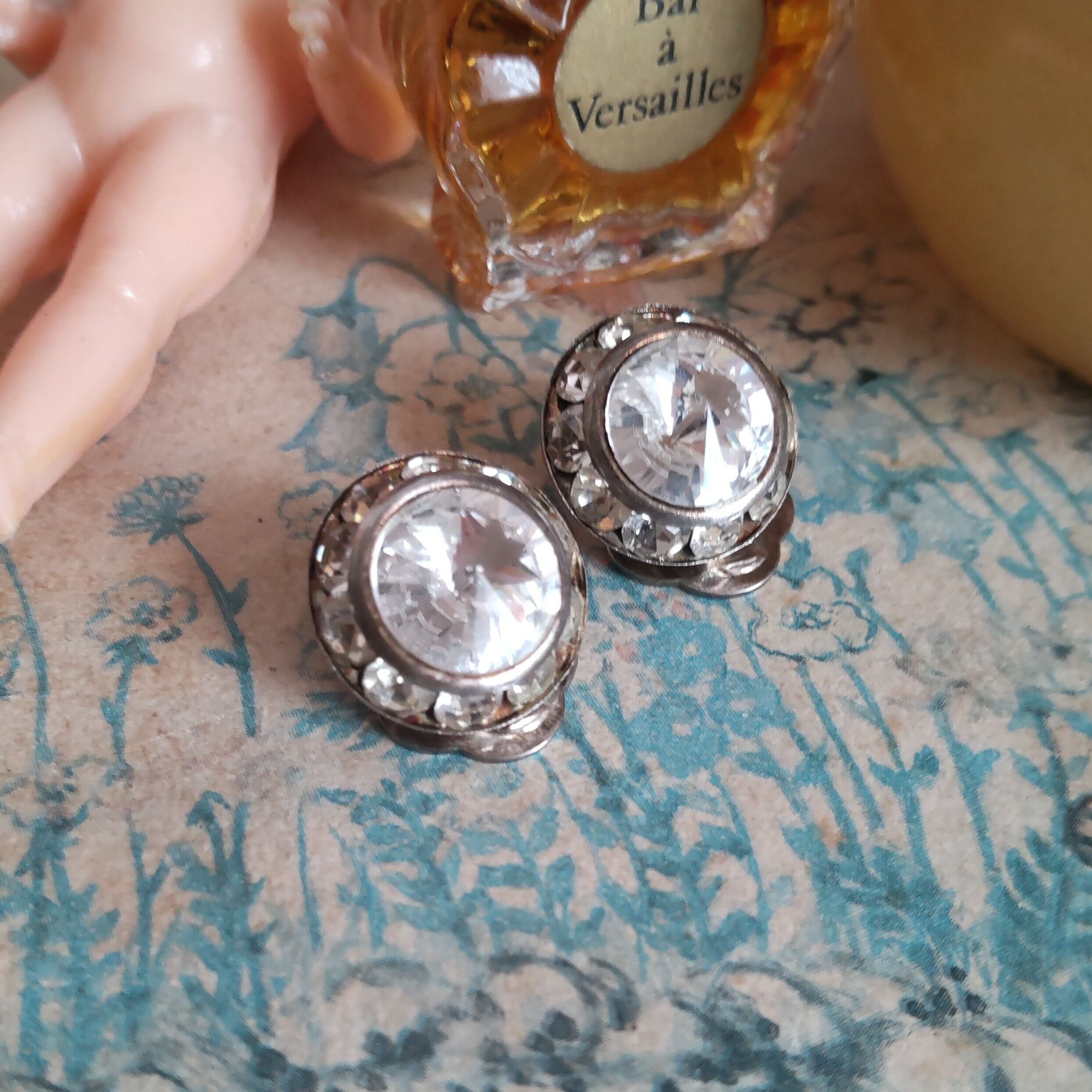 クリアの硝子ストーンがラウンド型にデザインされたヴィンテージイヤリングです