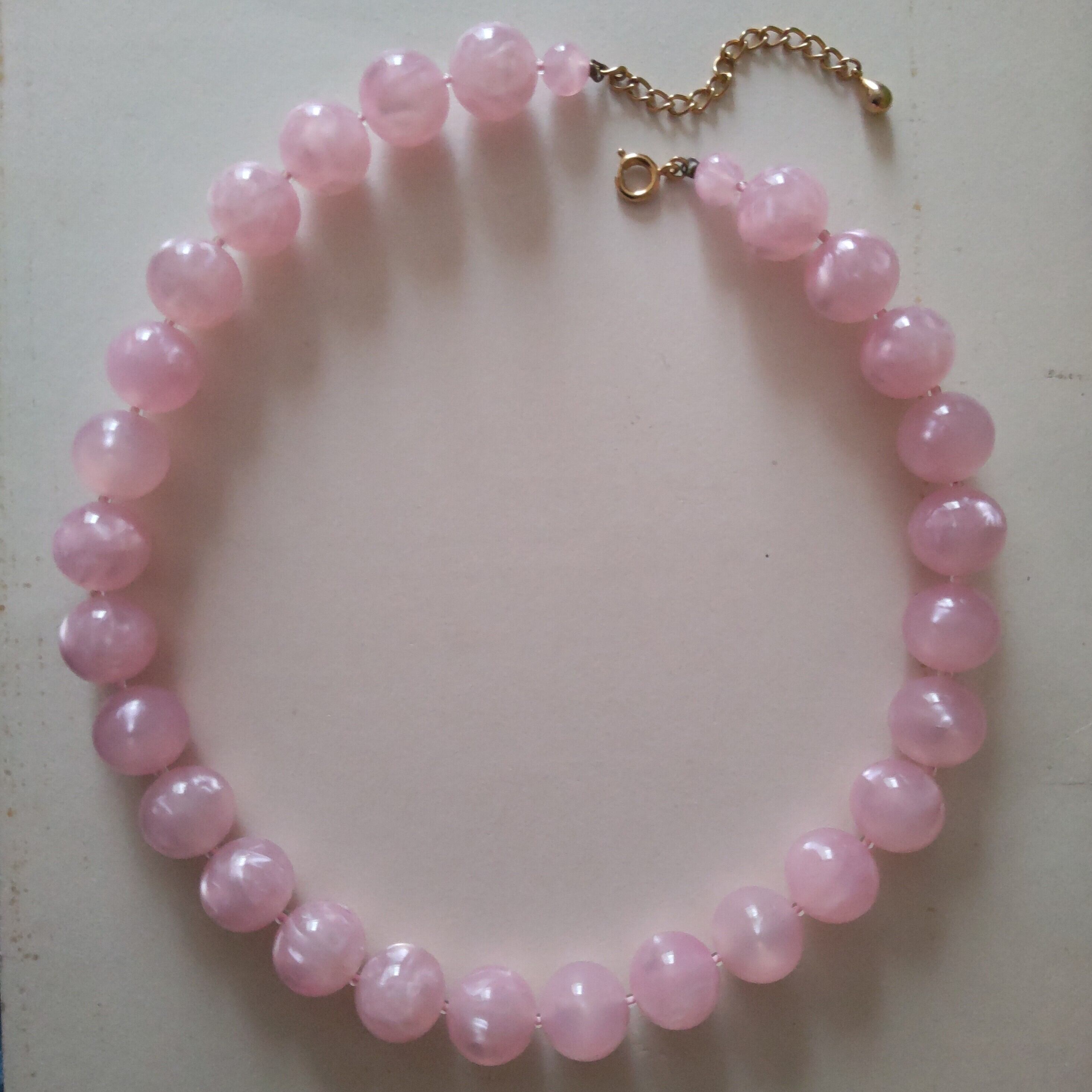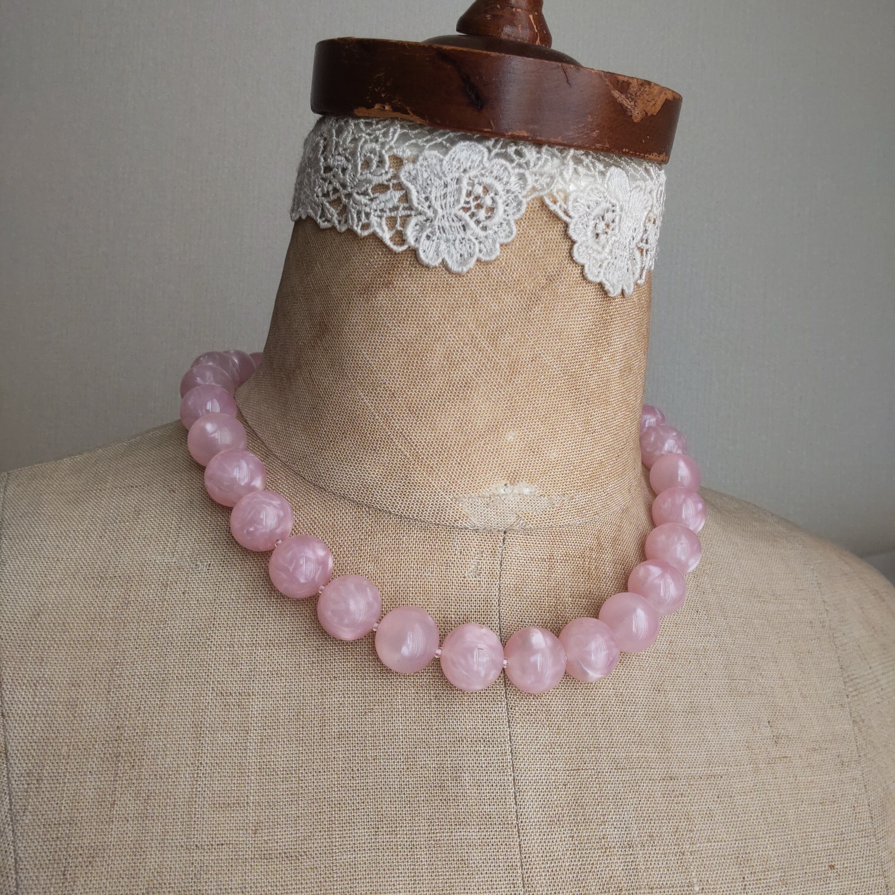 淡いピンクにパール調マーブルビーズのヴィンテージネックレスです