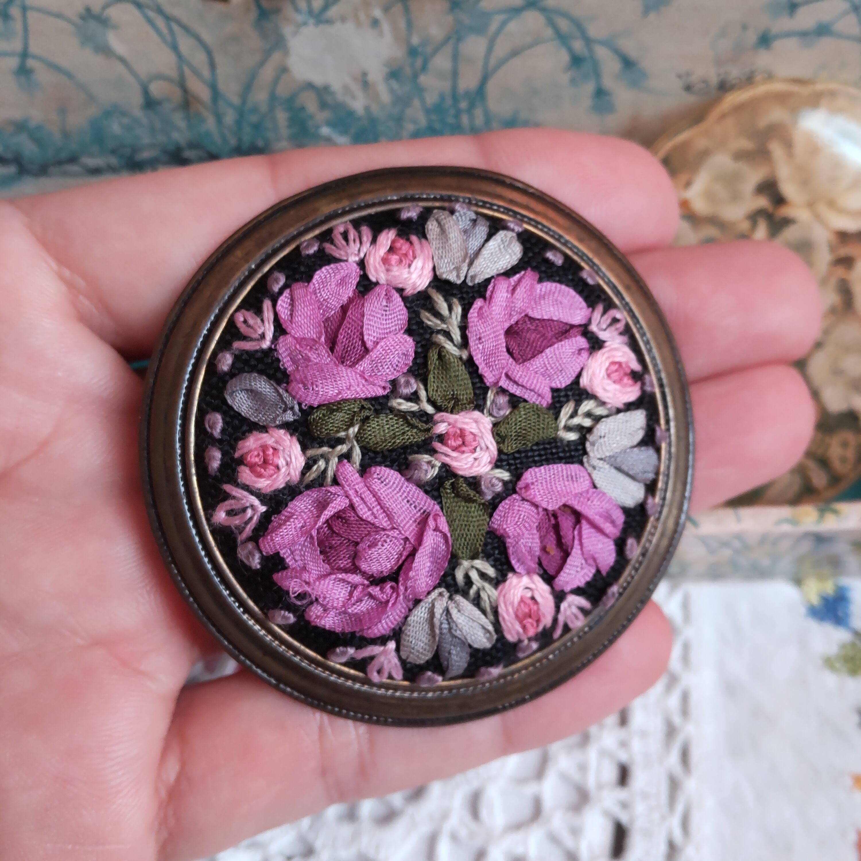 お花の刺繍がとても可愛らしいヴィンテージブローチです