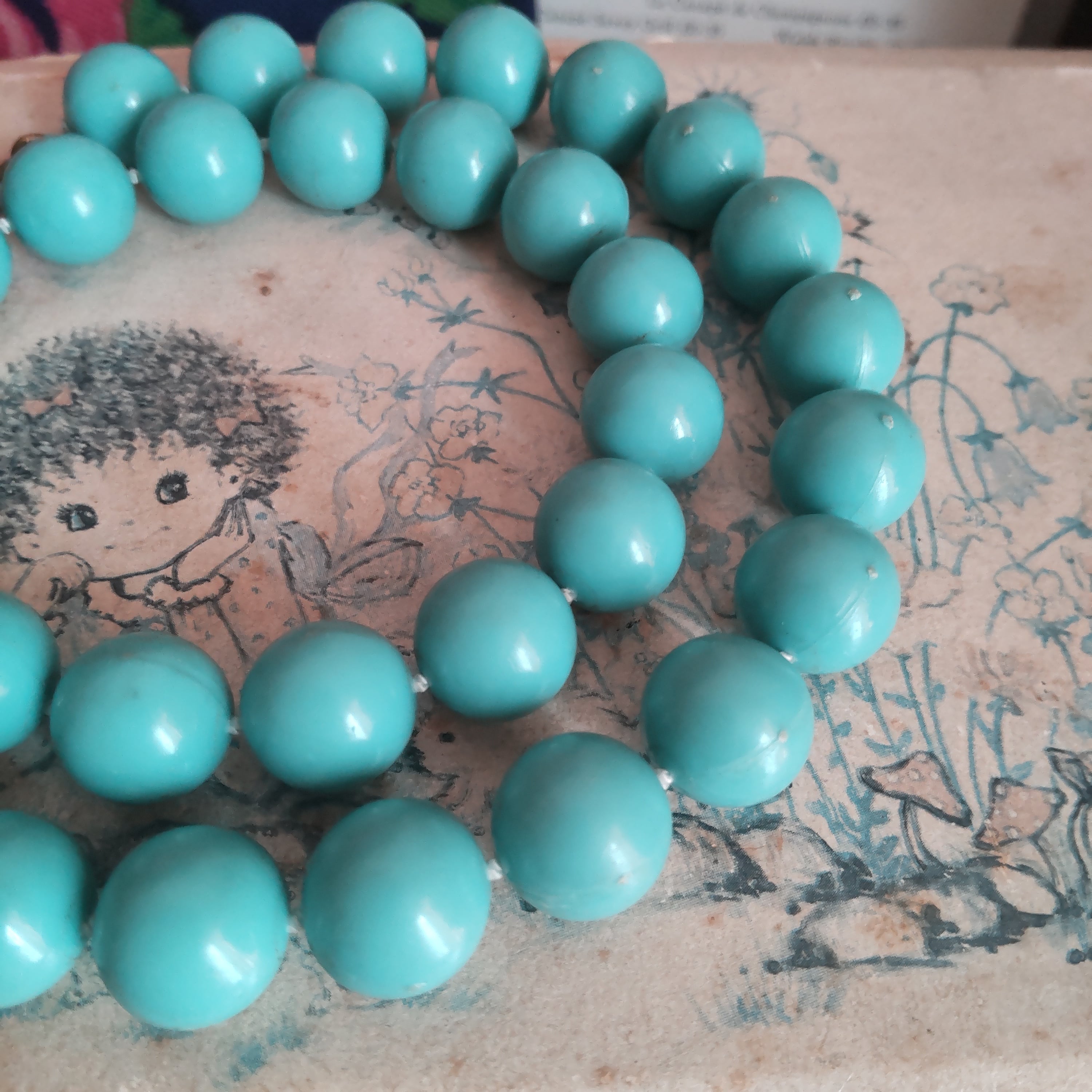 ミントブルーのマットなカラーがとてもかわいいヴィンテージネックレスです