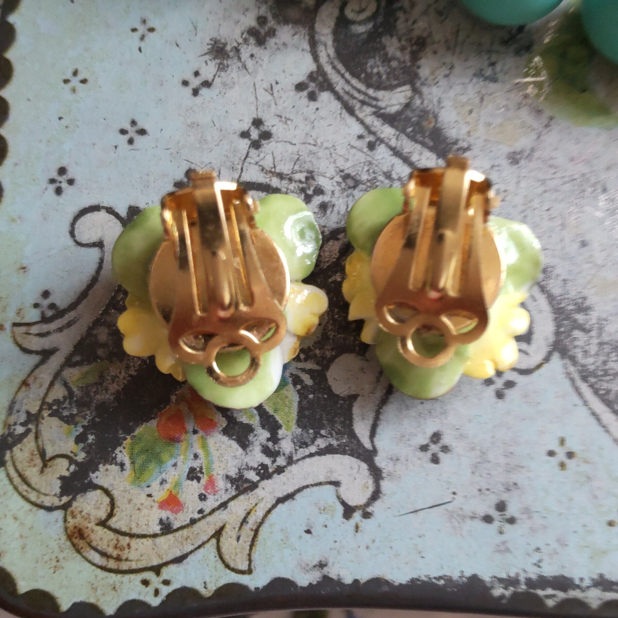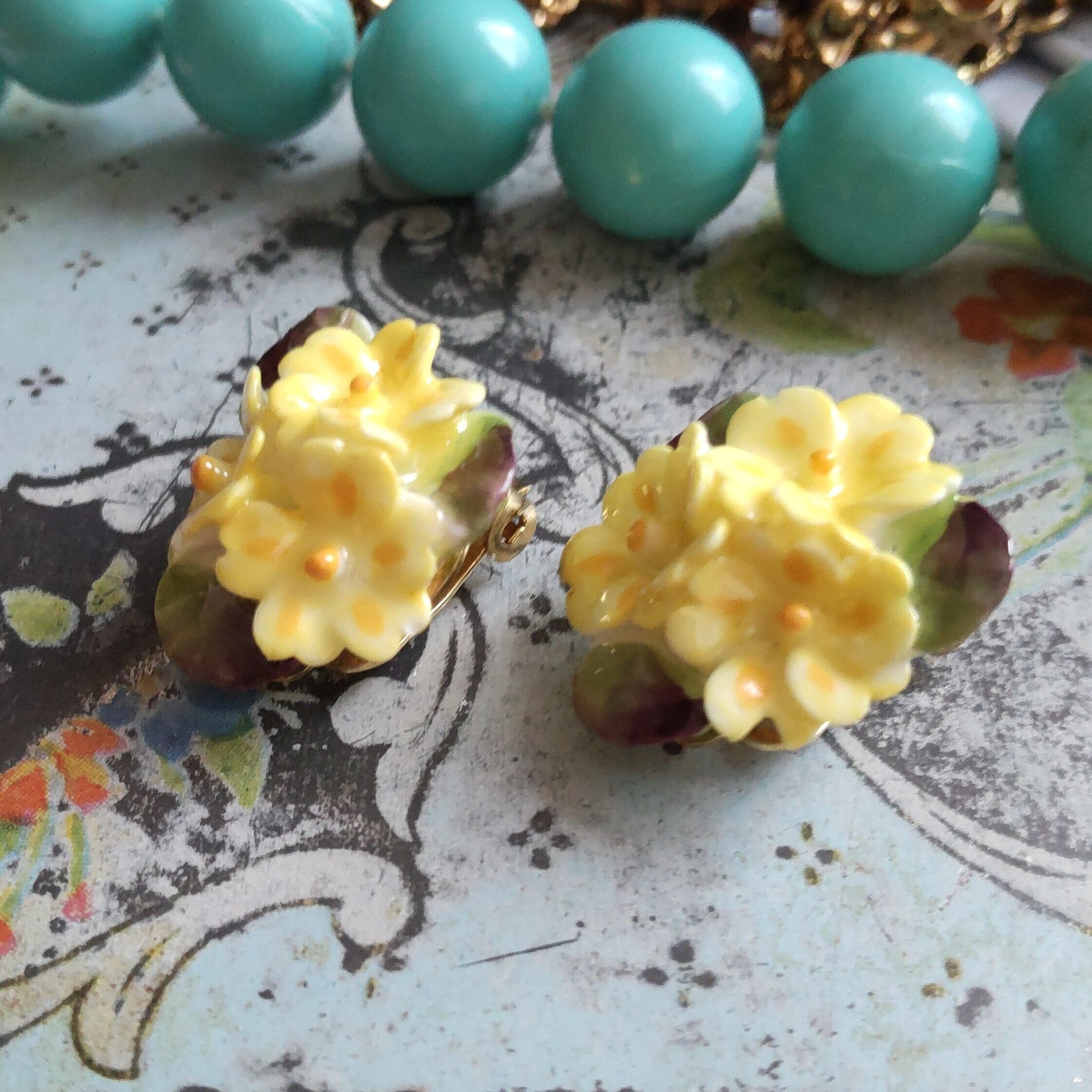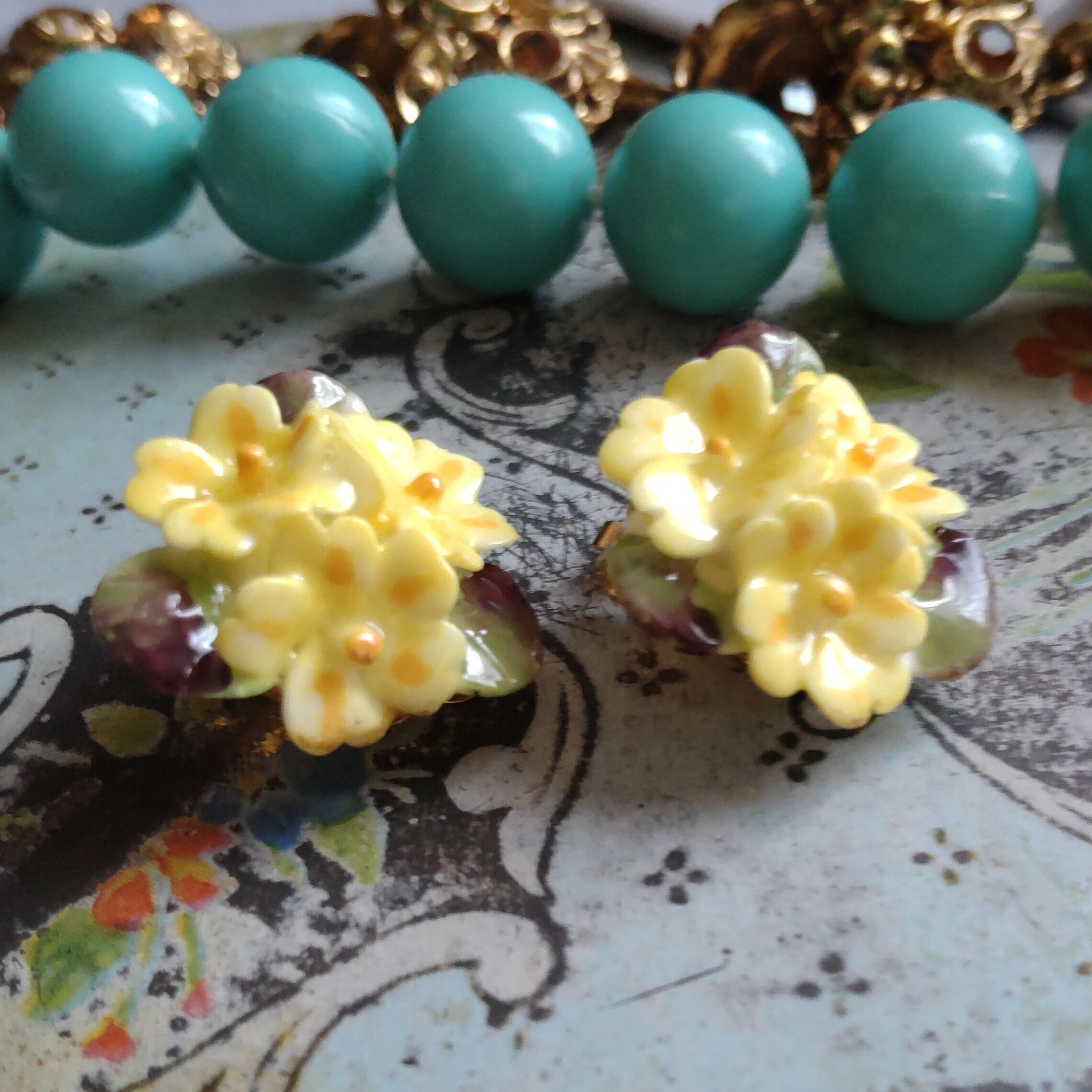 ハンドメイドのかわいらしいお花のヴィンテージイヤリングです