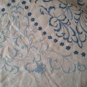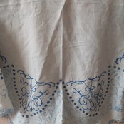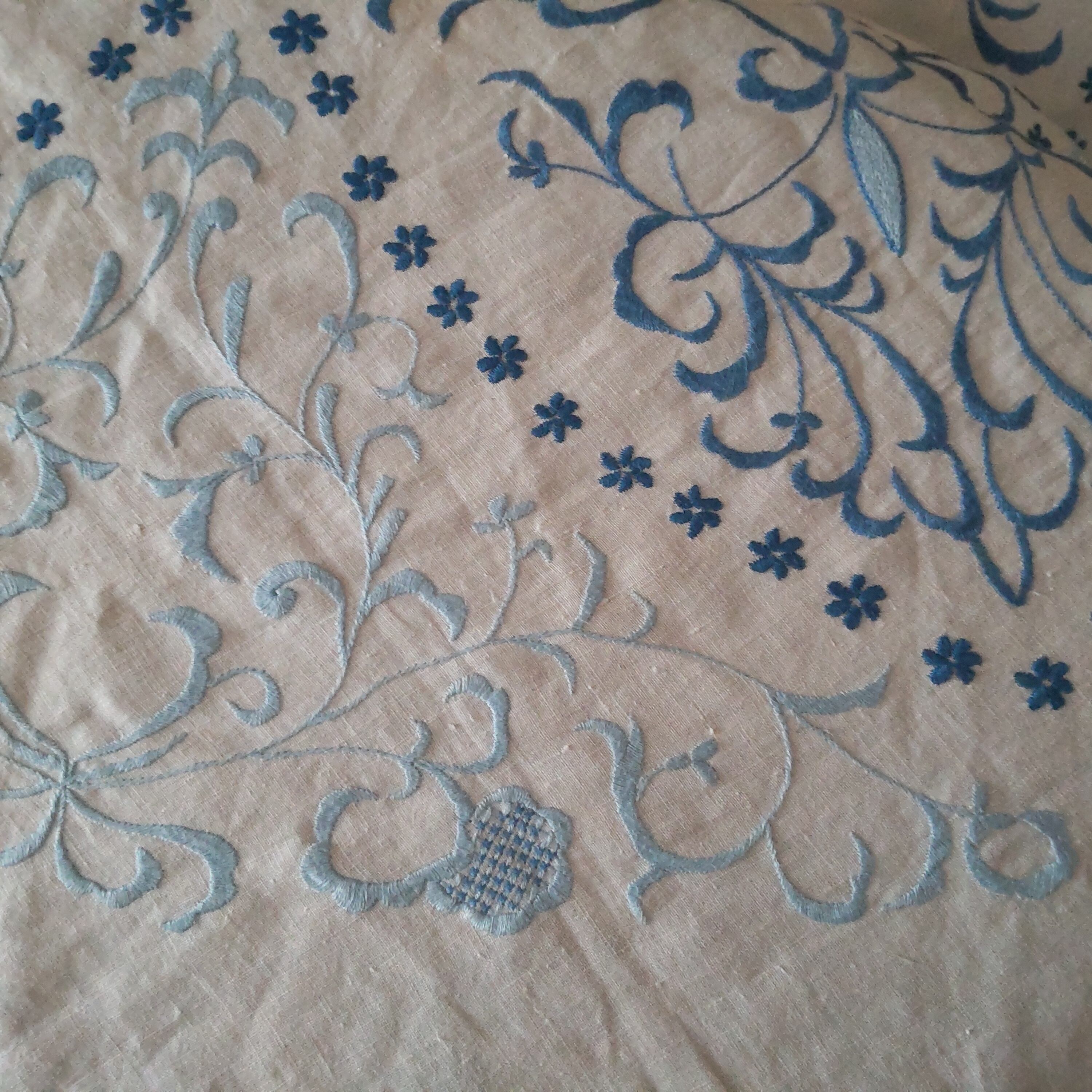 ハンガリー製の青と水色のステッチがデザインされたかわいらしい円形テーブルクロスです