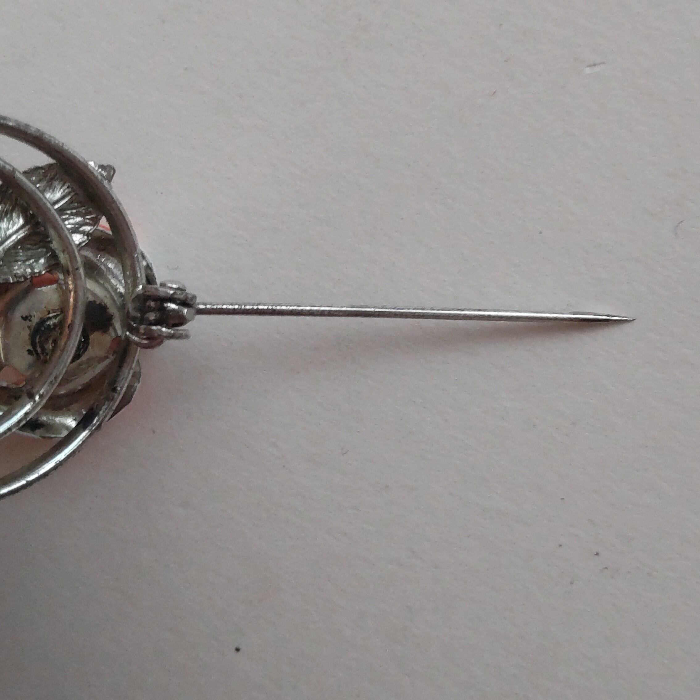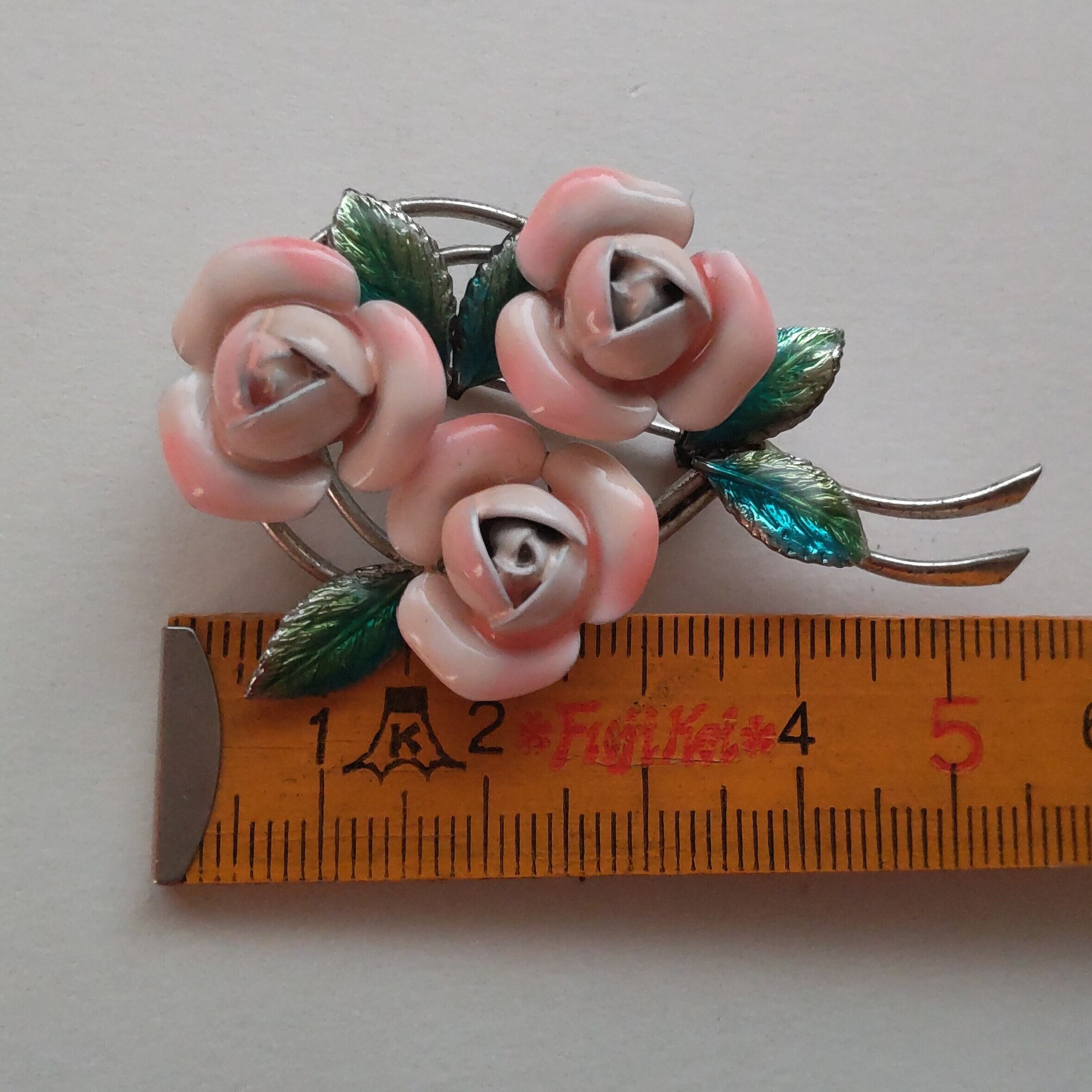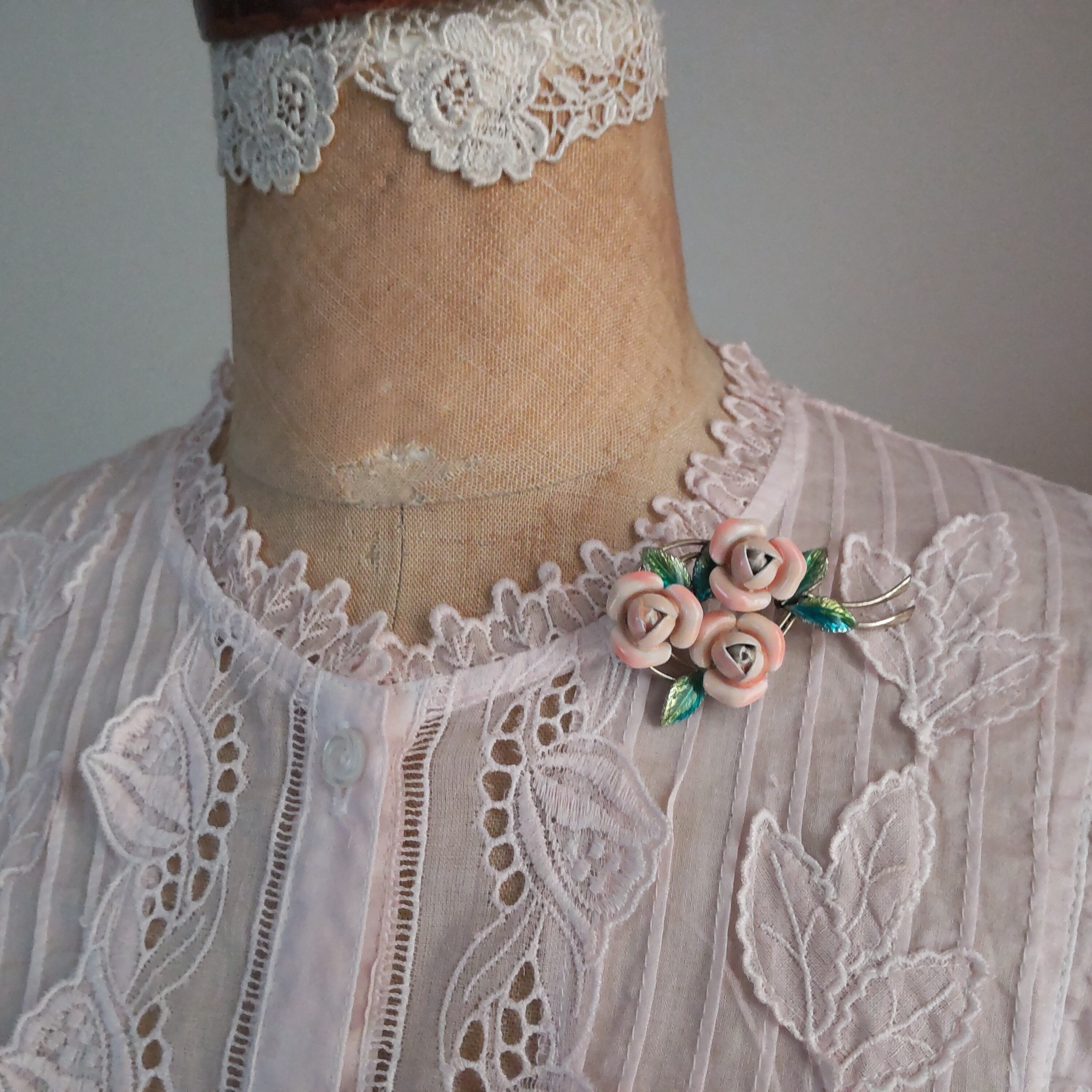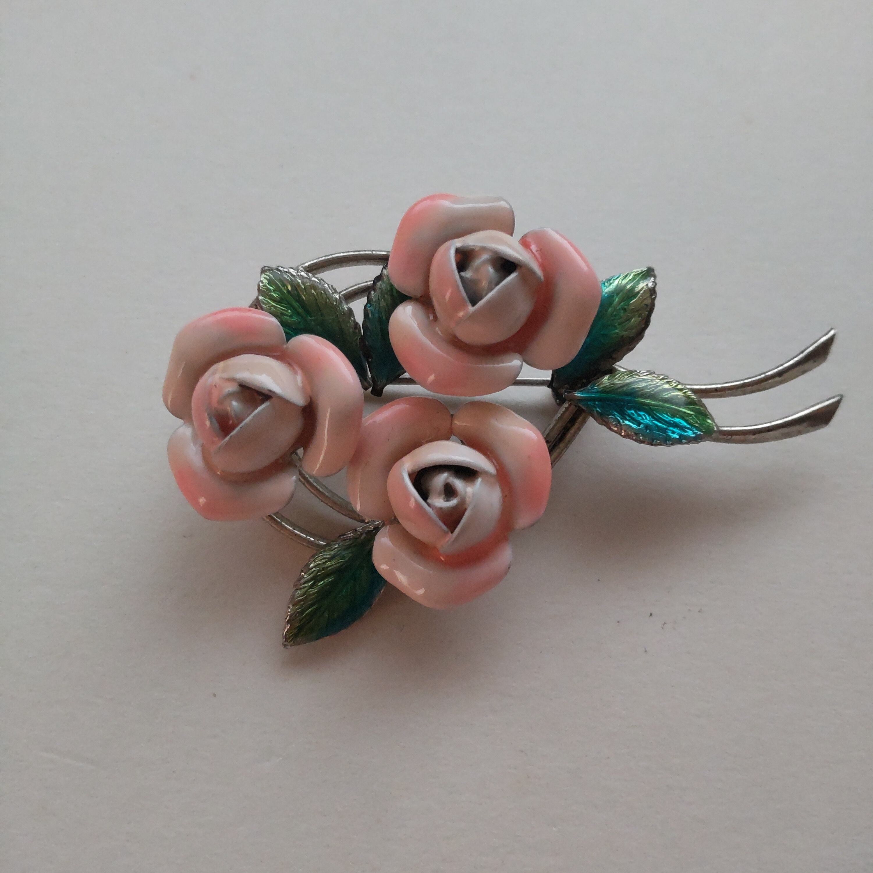 淡いピンク色のエナメルの加工がデザインされたとても可愛らしいヴィンテージブローチです