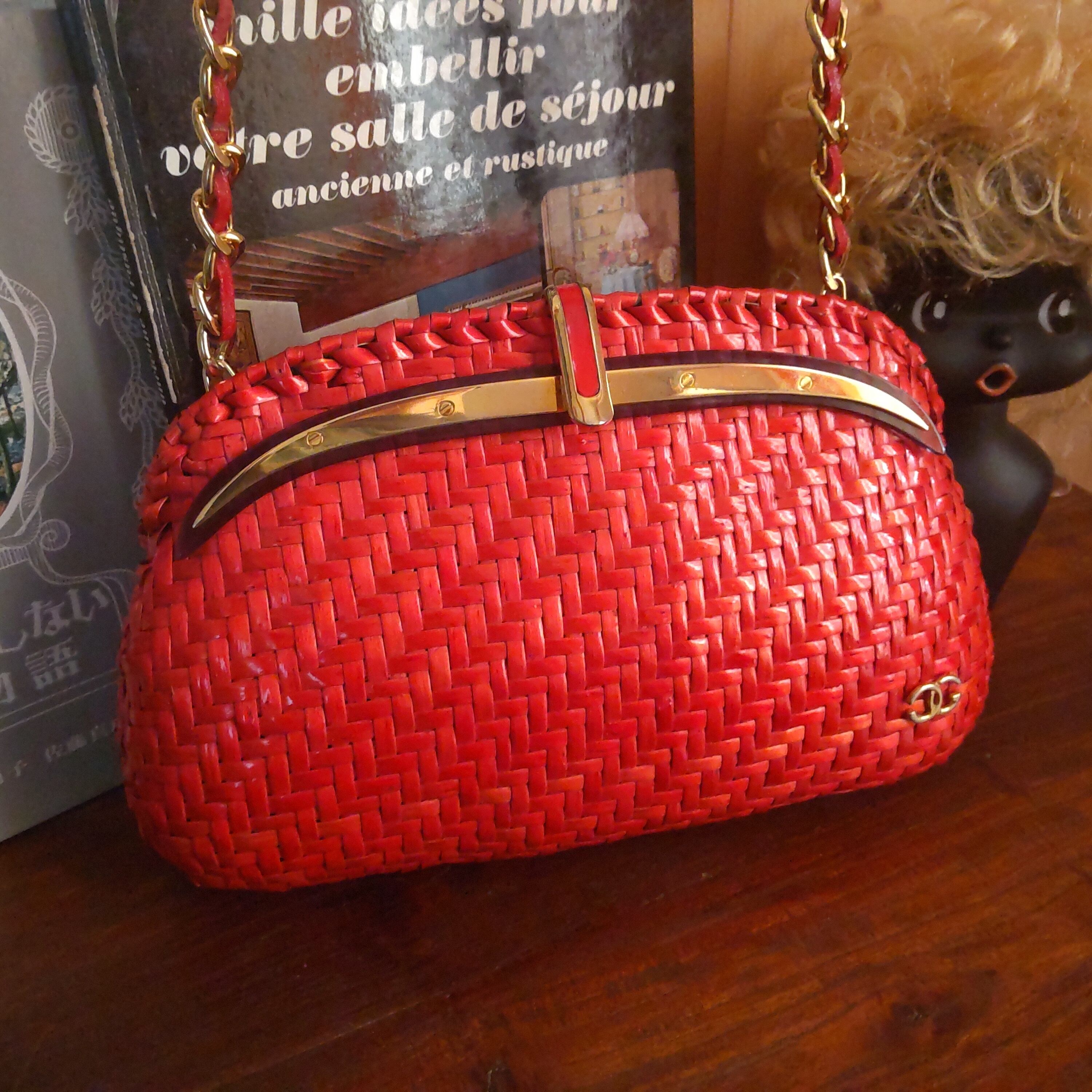 イタリアのブランドGretaの美しいビビッドなレッドラタン