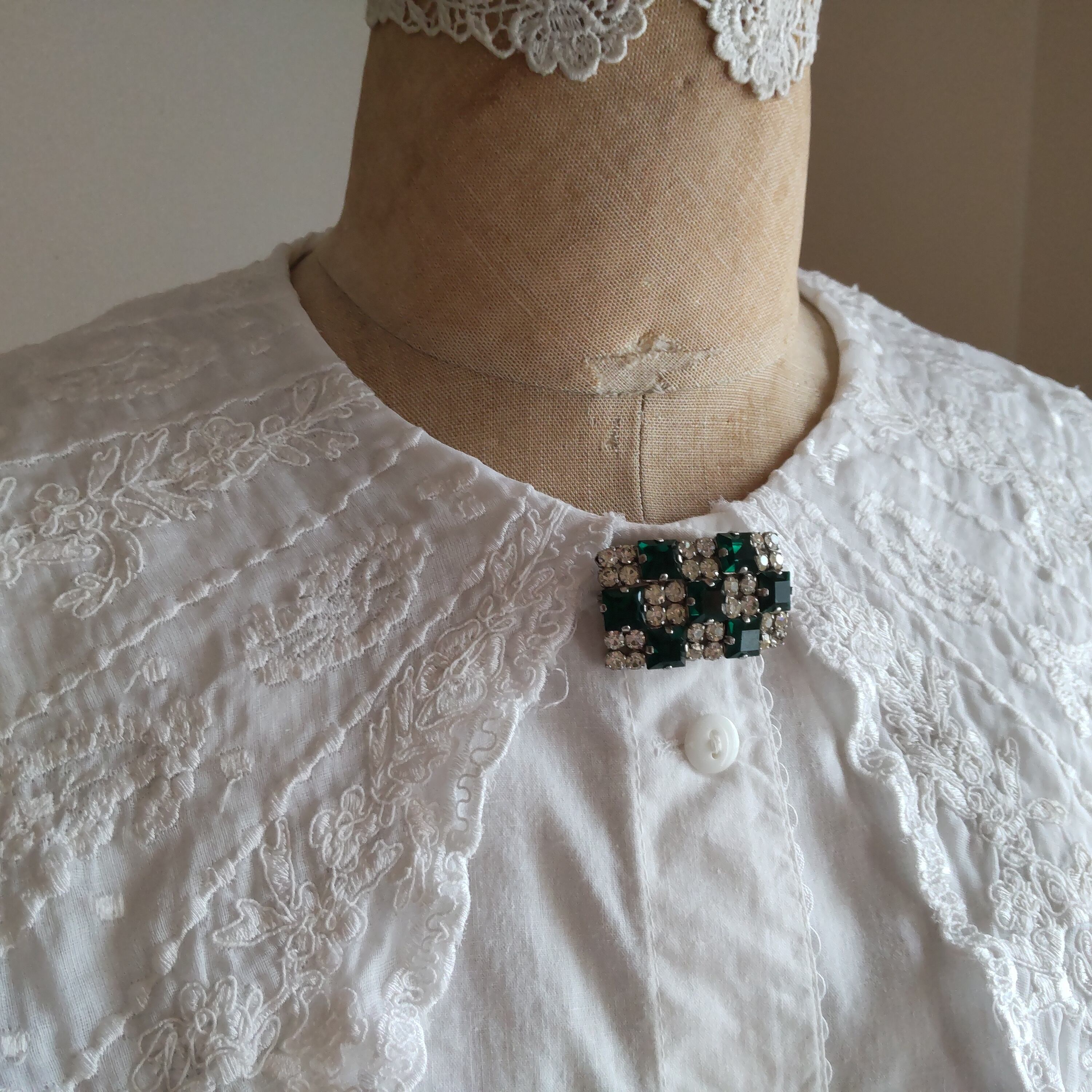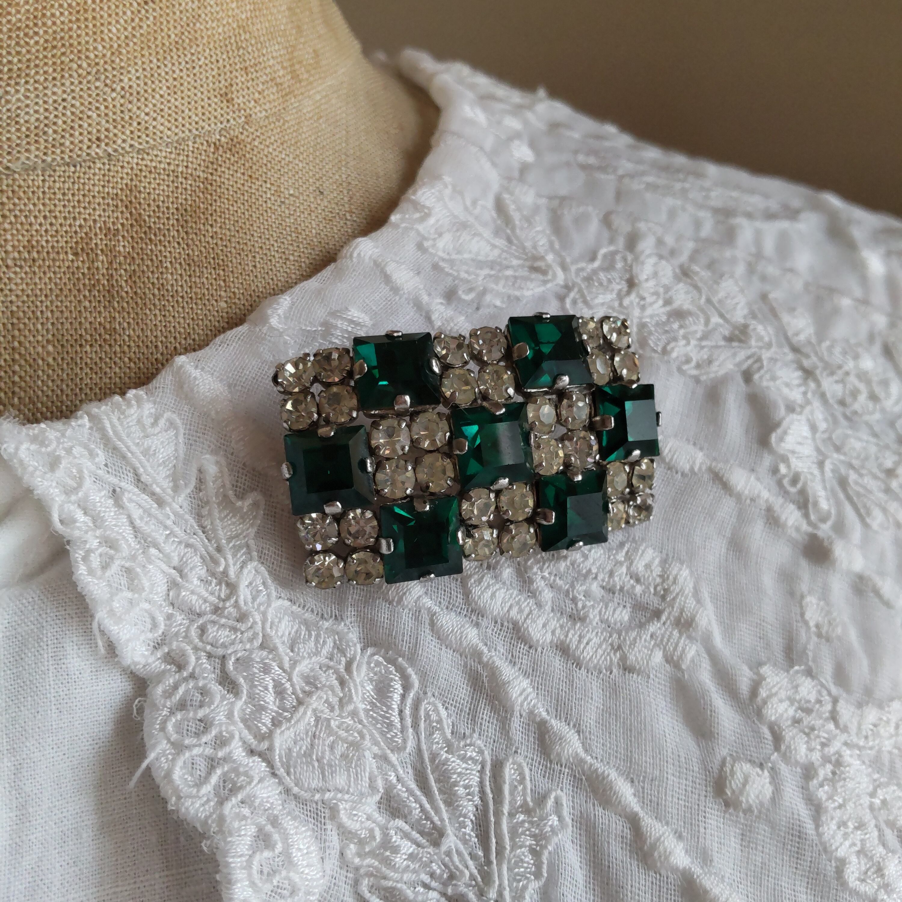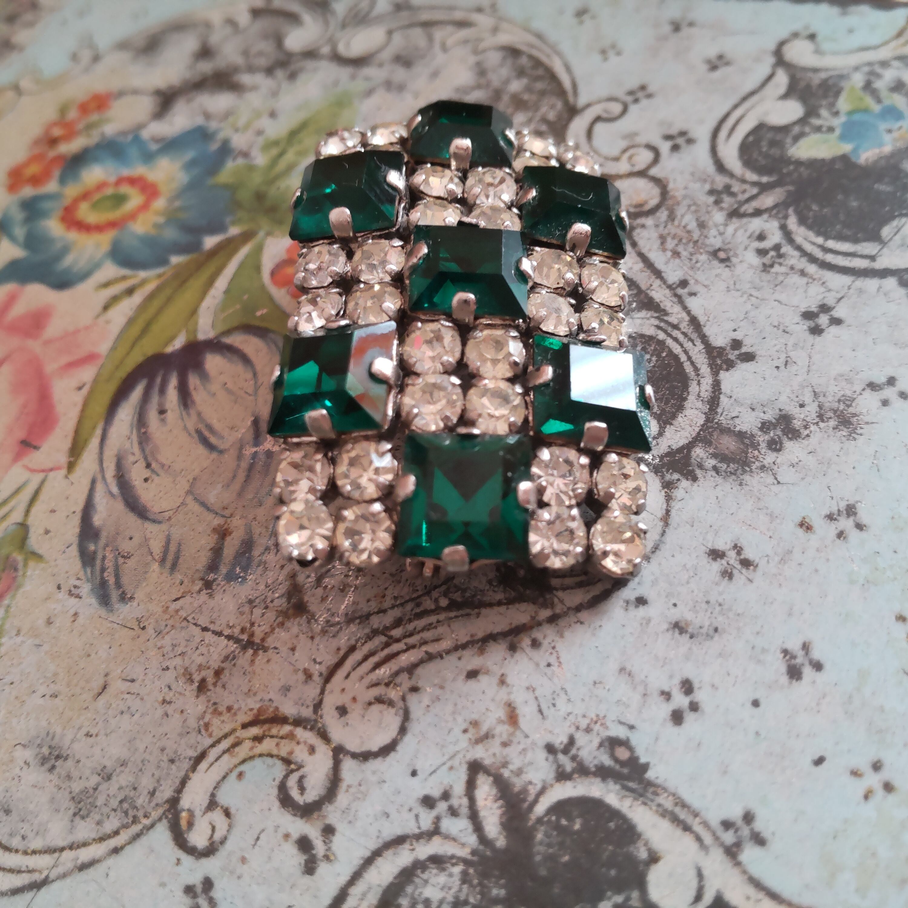 深いグリーンと透明の硝子ストーンのヴィンテージブローチです