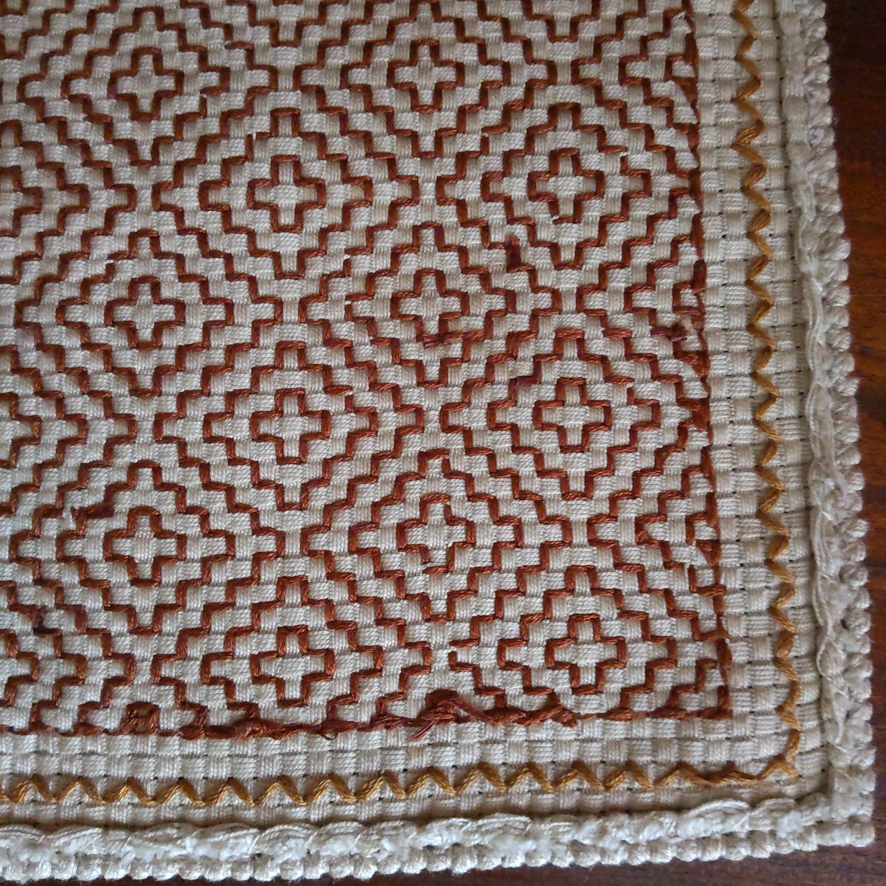 ハンドメイドの小さな刺繍マットです