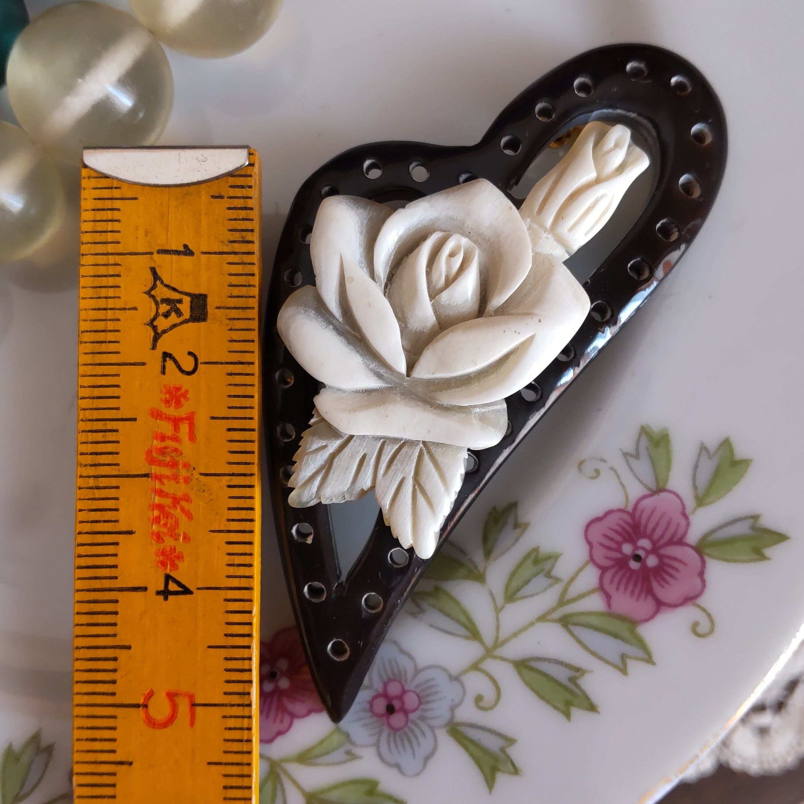 水牛の角でできたハートの薔薇モチーフのヴィンテージブローチです