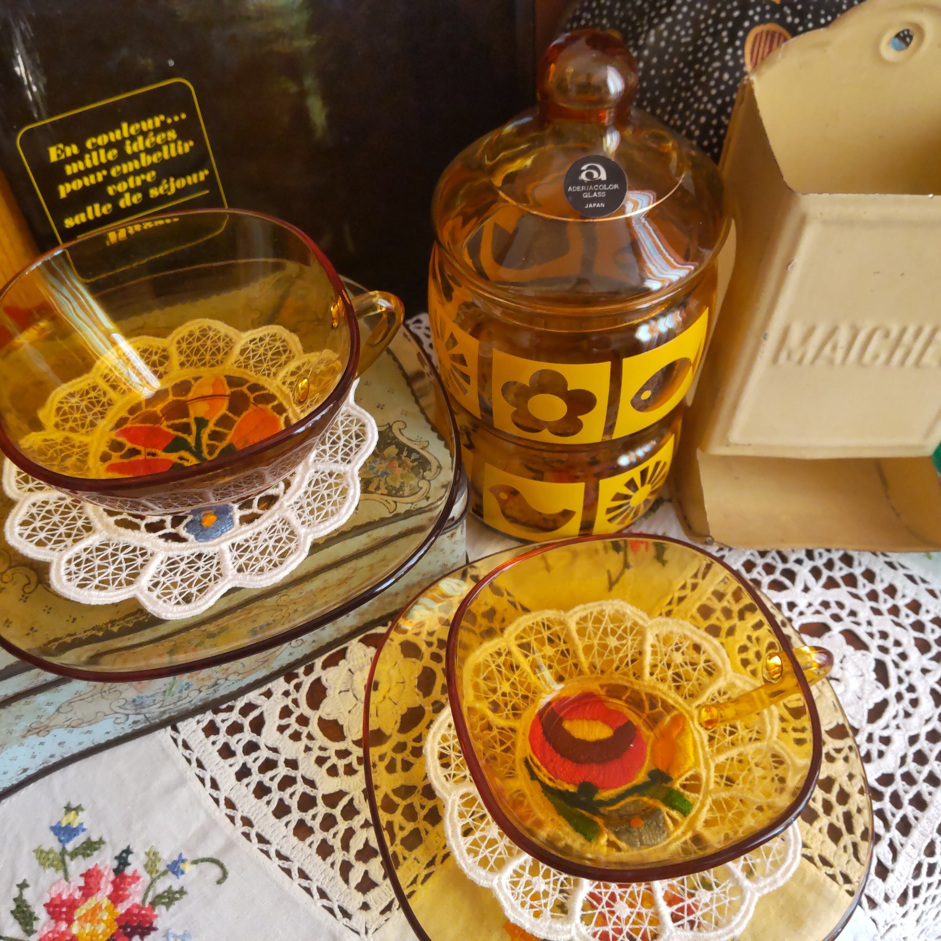 1970年頃に製造されたフランス製のアンバー硝子で、スタイリッシュなデザインのヴィンテージカップ&ソーサーです