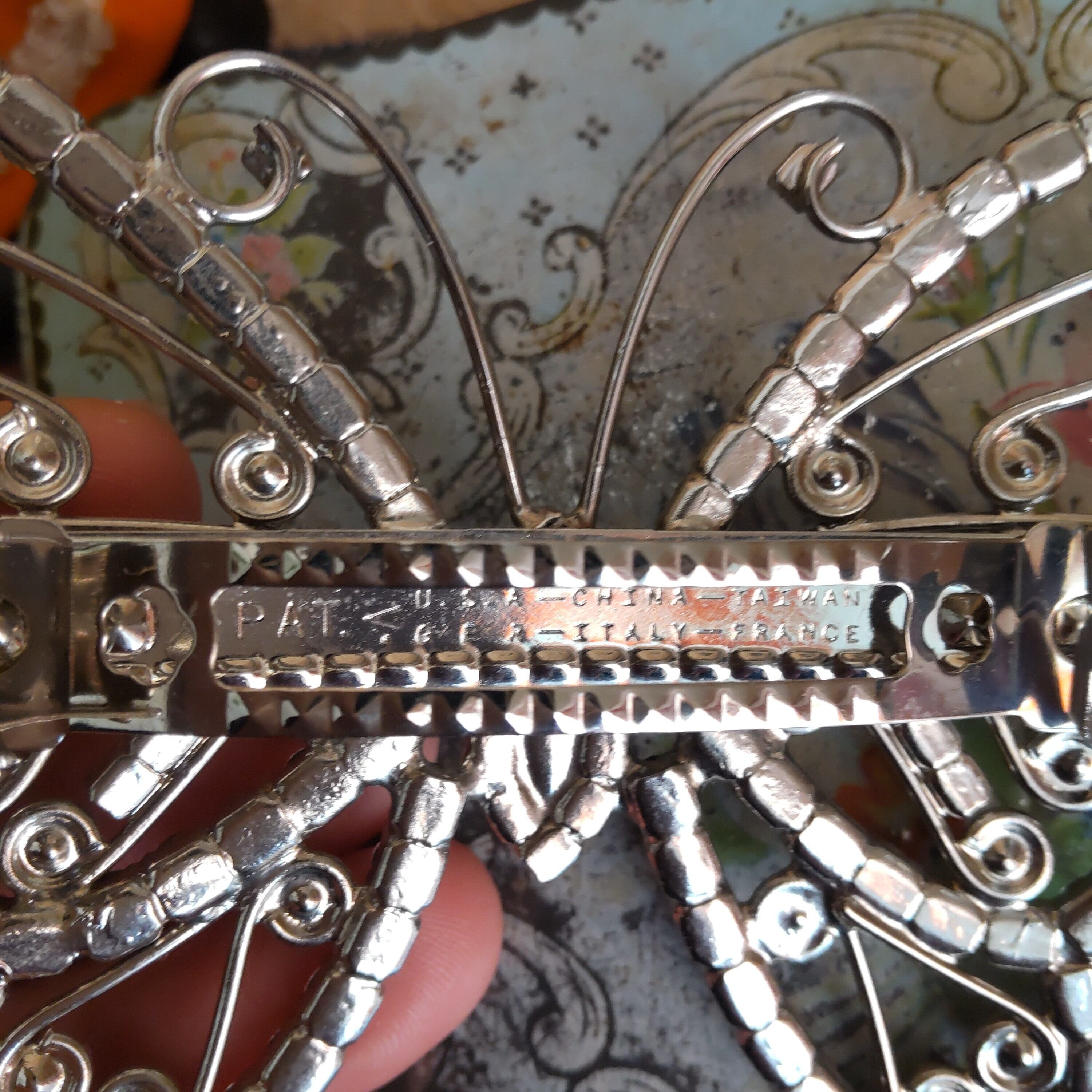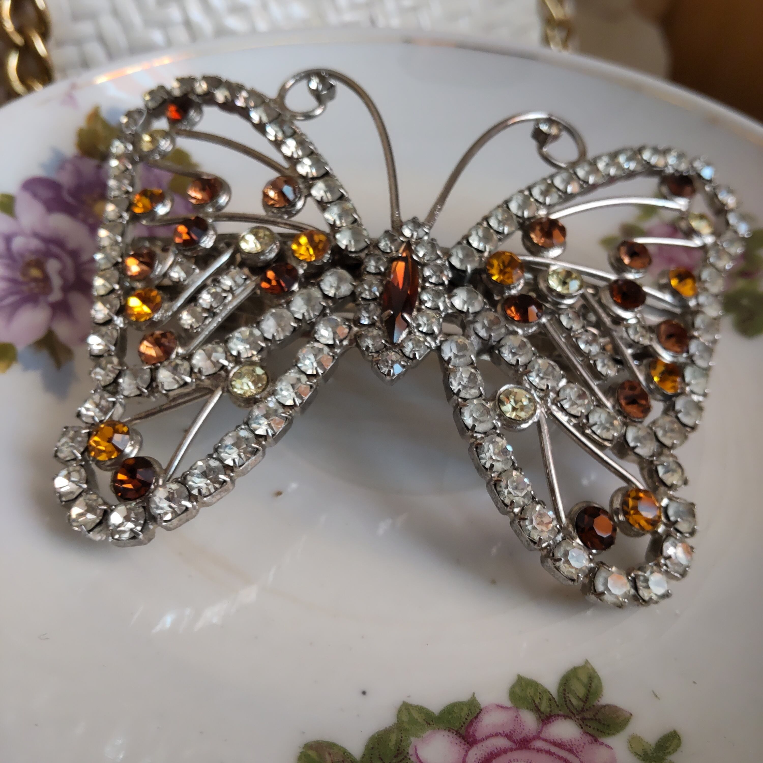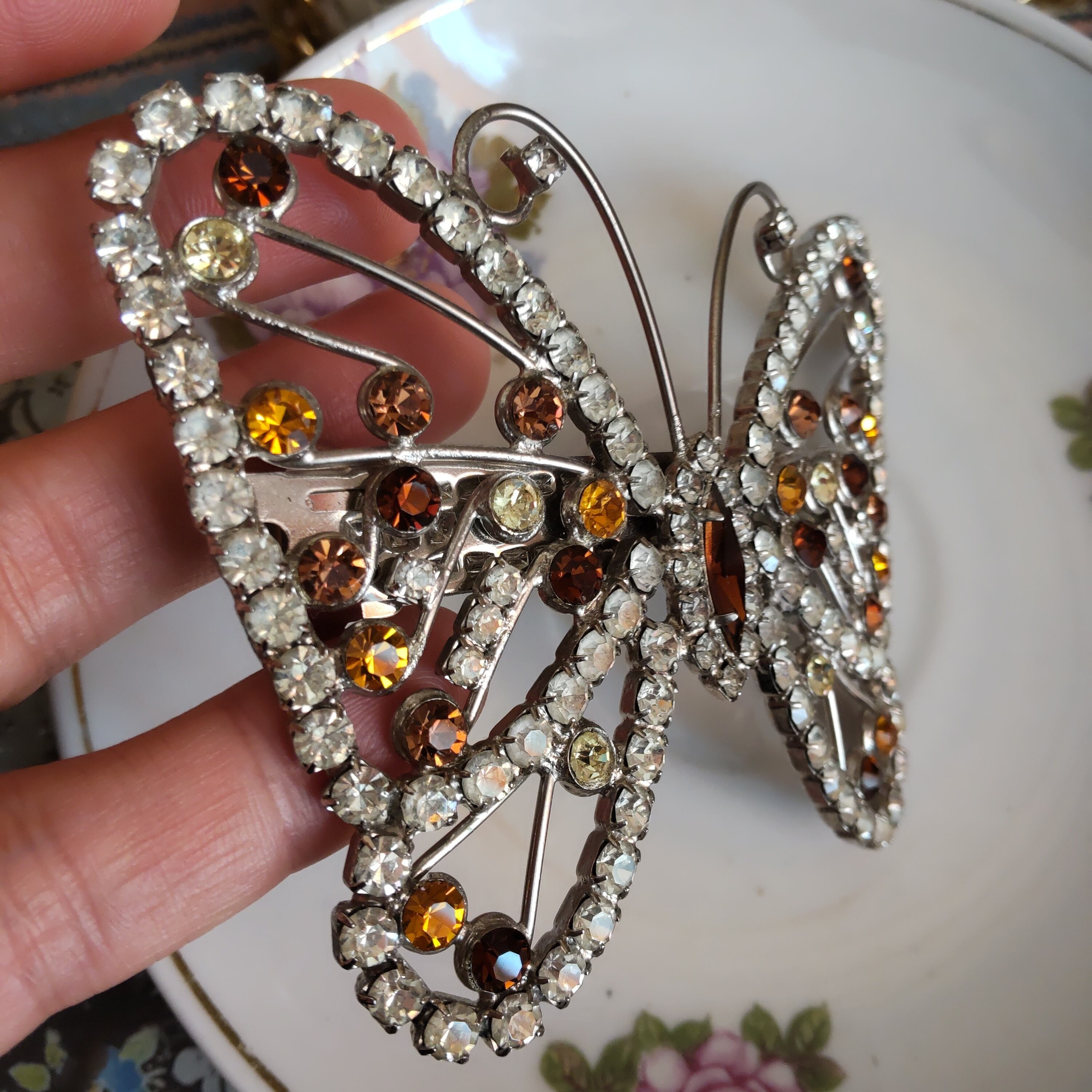 ガラスストーンがデザインされたとても大きな蝶のヴィンテージバレッタです